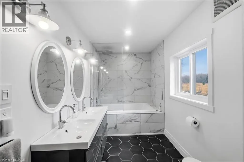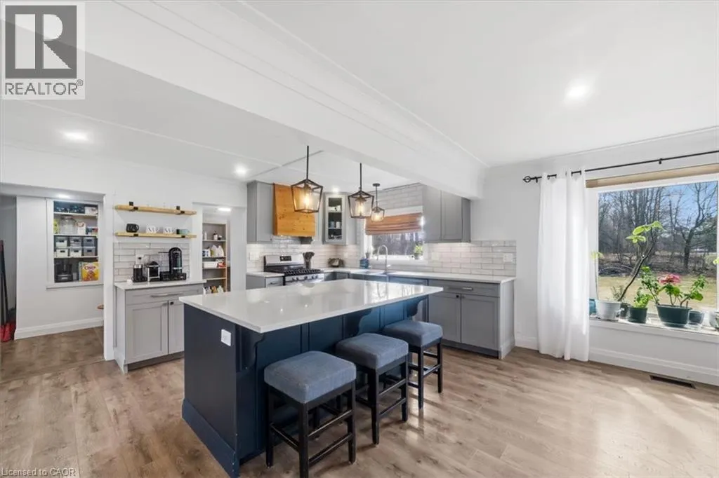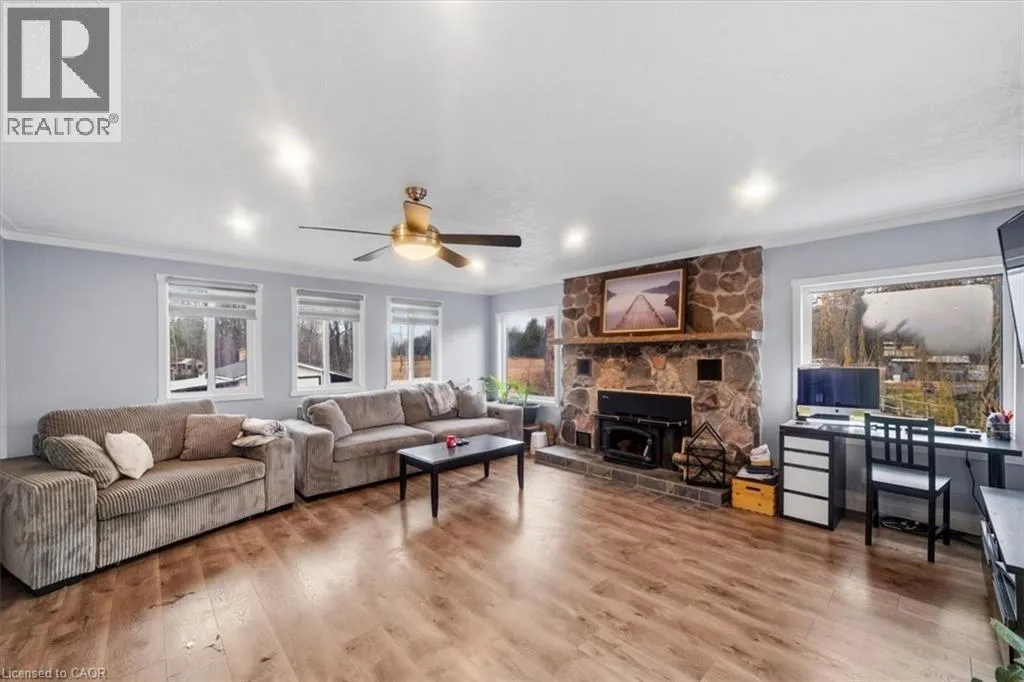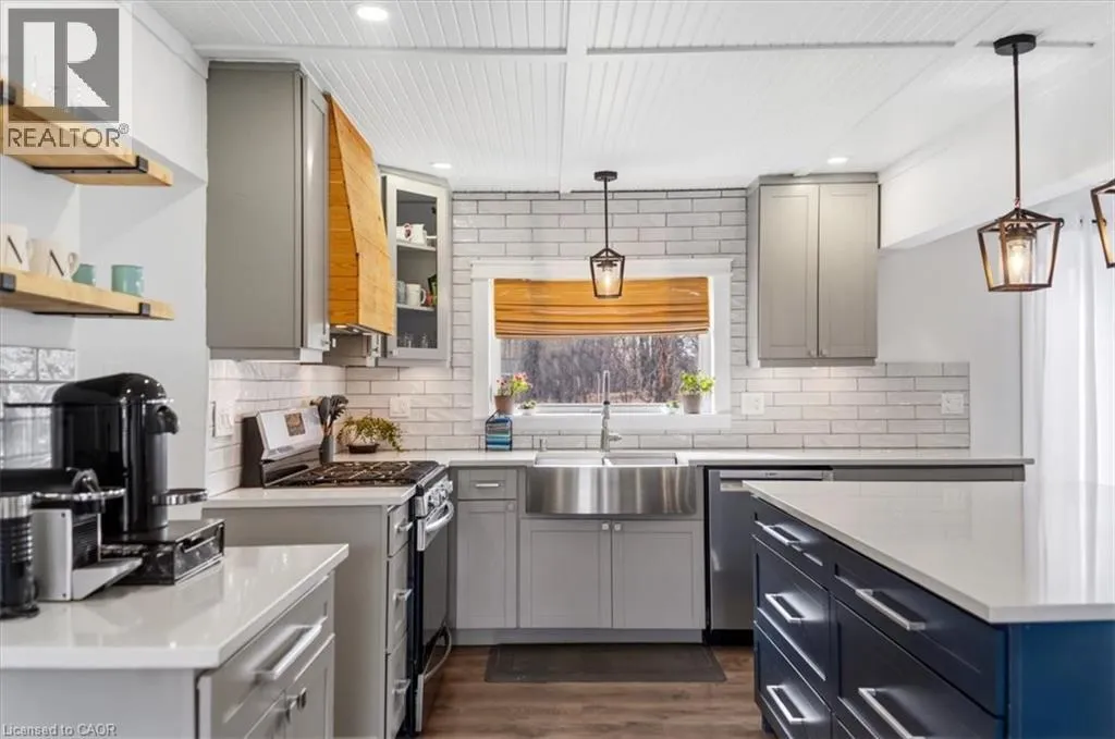 Escape to your own private slice of paradise at 303 Bruce Road 9! This beautifully renovated two-storey home sits on 9 acres of peaceful countryside just STEPS to Colpoys Bay. With over $100K in recent upgrades, it blends modern style with cozy charm throughout. The stunning two-tone kitchen features a large island, stainless steel appliances, and warm wood floors, perfect for hosting. Relax in the bright sunroom or unwind by the striking stone fireplace in the living room. The spa-like bathroom with double vanity and marble-finish shower adds a touch of luxury to everyday living. With 3 bedrooms, 4 bathrooms, and flexible spaces for a home office or reading nook, thereâs room for everyone. Property also has a barn, sugar shack, cottage, and the trail through the woods. Enjoy privacy, nature, and nearby beaches, trails, and parks right at your doorstep. Country living has never looked this good! (id:27476)