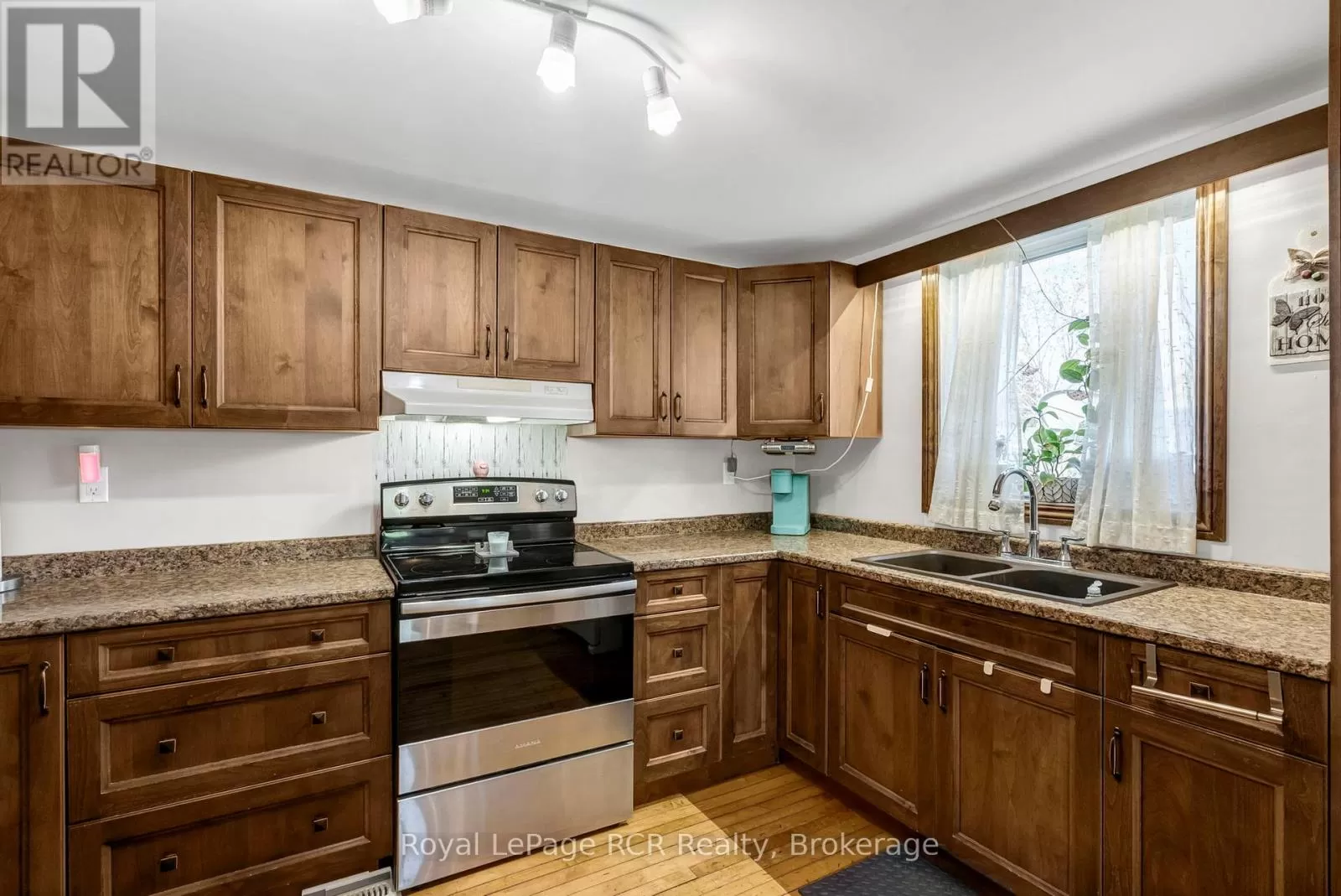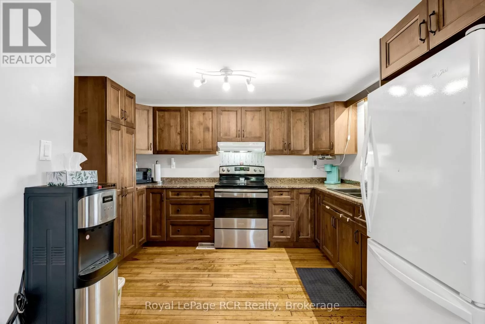 Cross Streets: Council Rd. & Maple St. ** Directions: From Bruce Rd. 12 in Formosa, turn east onto Council Rd. to property on right side. Endless Possibilities on 0.7 Acres! Nestled in the charming town of Formosa, just steps from the main street, this expansive 181.5' x 165' property offers a unique opportunity. The land itself is great, but the multiple outbuildings truly set it apart. Imagine the possibilities with a fully equipped front garage (25'2 x 21'4) with concrete floors, insulated, gas f/a heat, a hoist, and 60 amp service ideal for mechanics or hobbyists. Go down the separate lane to a newer shop (22'11 x 28'11) with concrete floors and ample power awaits your projects, while a back shed (15'4x19'3) plus a lean-to provides additional storage.The comfortable home features two upper level bedrooms and a 4pc. bath. The main floor offers flexibility with a potential area at the back for a third bedroom near the convenient mudroom entrance. Enjoy an updated eat-in kitchen with hardwood floors, a spacious living room, and a bright sunporch with a walk-in storage closet. The main floor laundry room even holds the potential for a future 2pc. bath. Benefit from modern comforts including a f/a gas furnace 2012, 90' drilled well 2013 a metal roof 2017, vinyl siding 2024, central A/C, updated vinyl windows, a hard-wired security system, and a practical walk-up basement. Negotiable: fridge, stove, washer, dryer. This property is a rare find! (id:27476)