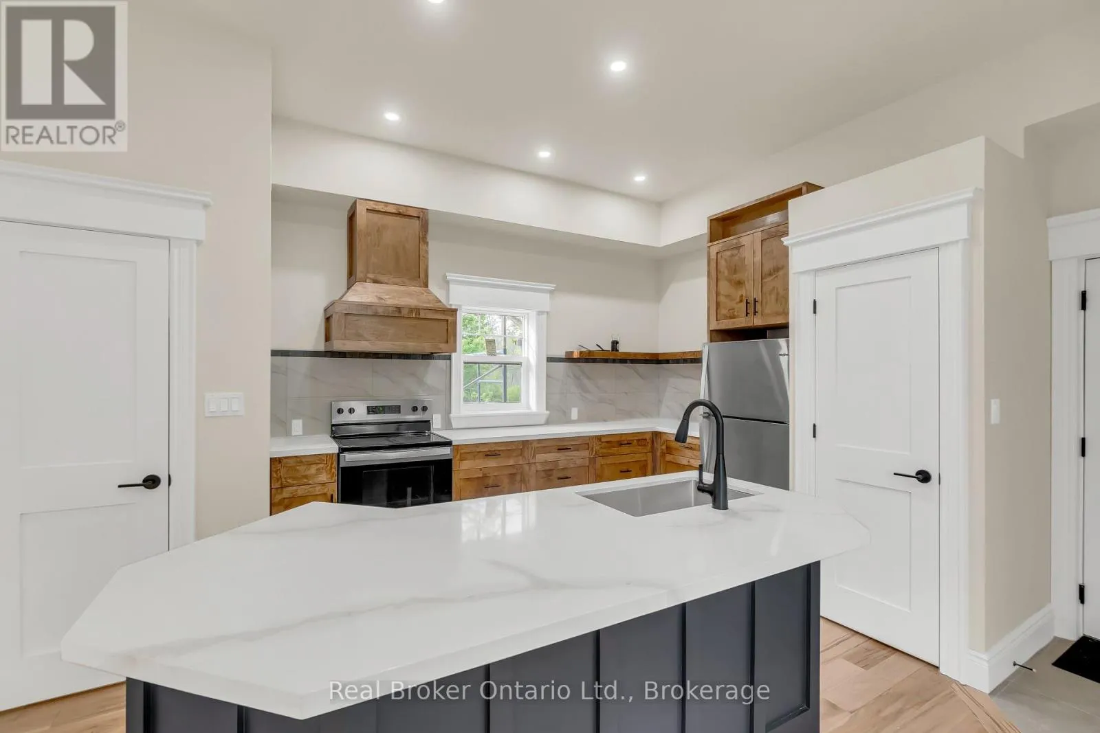 Hillcrest St W & Clinton St S Welcome to 16 Hillcrest St W in Teeswater - a beautifully updated 2-bedroom, 2-bathroom home where small-town charm meets modern comfort. Nestled on a quiet street, this home features a timeless yellow brick exterior, new limestone-silled windows, and a welcoming wrap-around concrete porch. Inside, natural light pours through brand-new windows, highlighting the open-concept living and dining areas with maple hardwood floors and crisp white trim. The custom kitchen is a showstopper, complete with quartz countertops, new appliances, ample cabinetry, and workspace designed to inspire any home chef. Upstairs, the serene primary suite includes a walk-in closet and a private laundry closet, while the second bedroom offers flexible use as a guest room, office, or den. The 3-piece bath showcases a quartz vanity and spa-like finishes, complemented by a convenient main-floor powder room. The lower-level workroom - with garage door access - is ideal for hobbies or storage. Step outside to a spacious wrap-around deck overlooking a lush yard that extends to the picturesque Teeswater River. Additional features include a 2-car attached garage, updated exterior and garage doors, soffit, fascia, eaves, solid wood interior doors with Weiser hardware, and modernized electrical and plumbing systems. This move-in-ready gem blends peace, style, and practicality - your perfect escape awaits. (id:27476)