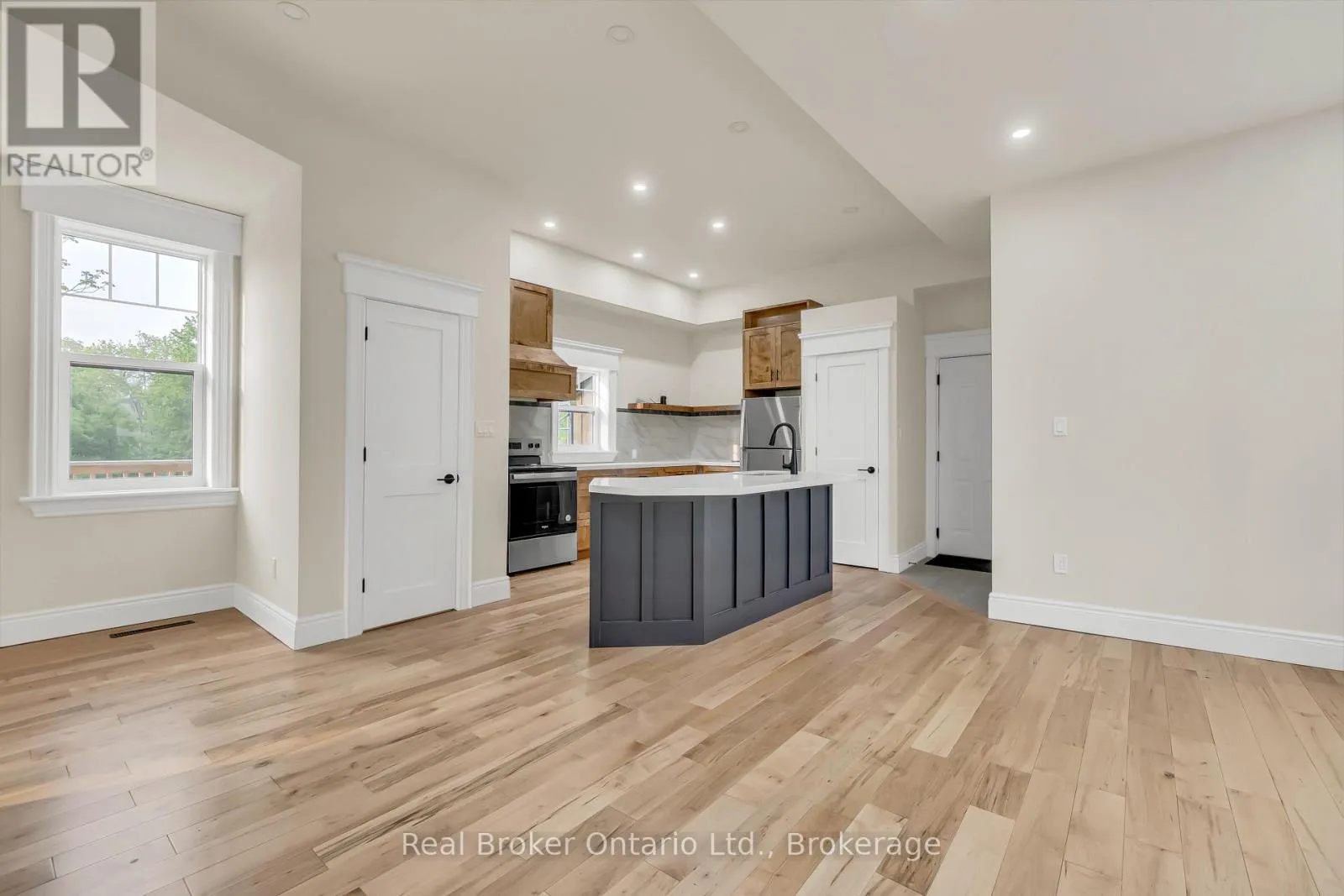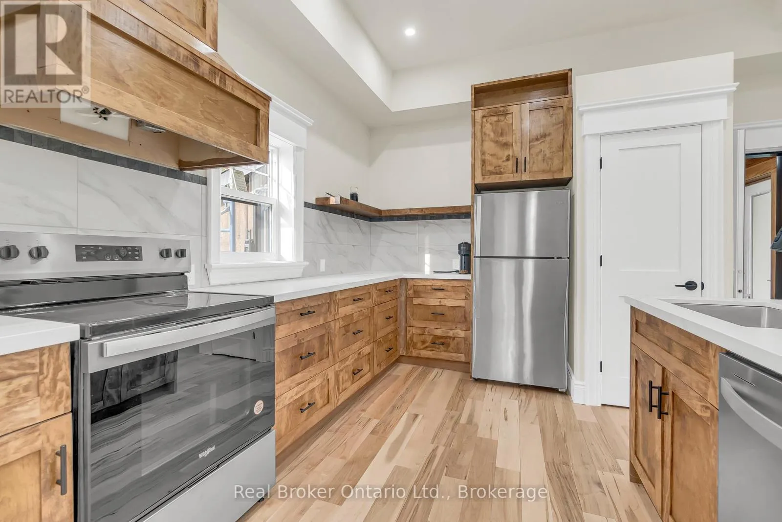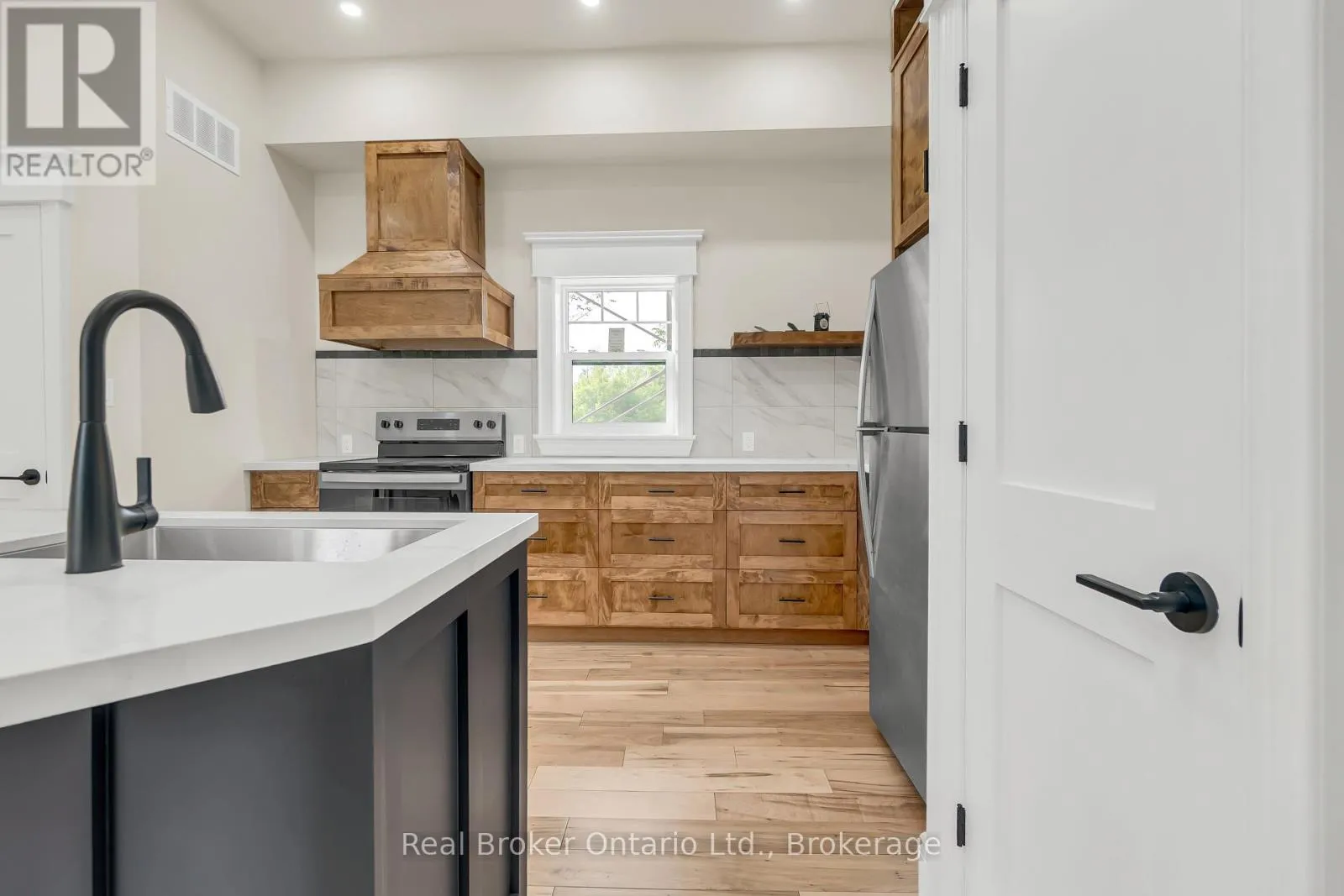 Hillcrest St W & Clinton St S Welcome to 16 Hillcrest St W in Teeswater - a beautifully updated 2-bedroom, 2-bathroom home where small-town charm meets modern comfort. Nestled on a quiet street, this home features a timeless yellow brick exterior, new limestone-silled windows, and a welcoming wrap-around concrete porch. Inside, natural light pours through brand-new windows, highlighting the open-concept living and dining areas with maple hardwood floors and crisp white trim. The custom kitchen is a showstopper, complete with quartz countertops, new appliances, ample cabinetry, and workspace designed to inspire any home chef. Upstairs, the serene primary suite includes a walk-in closet and a private laundry closet, while the second bedroom offers flexible use as a guest room, office, or den. The 3-piece bath showcases a quartz vanity and spa-like finishes, complemented by a convenient main-floor powder room. The lower-level workroom - with garage door access - is ideal for hobbies or storage. Step outside to a spacious wrap-around deck overlooking a lush yard that extends to the picturesque Teeswater River. Additional features include a 2-car attached garage, updated exterior and garage doors, soffit, fascia, eaves, solid wood interior doors with Weiser hardware, and modernized electrical and plumbing systems. This move-in-ready gem blends peace, style, and practicality - your perfect escape awaits. (id:27476)