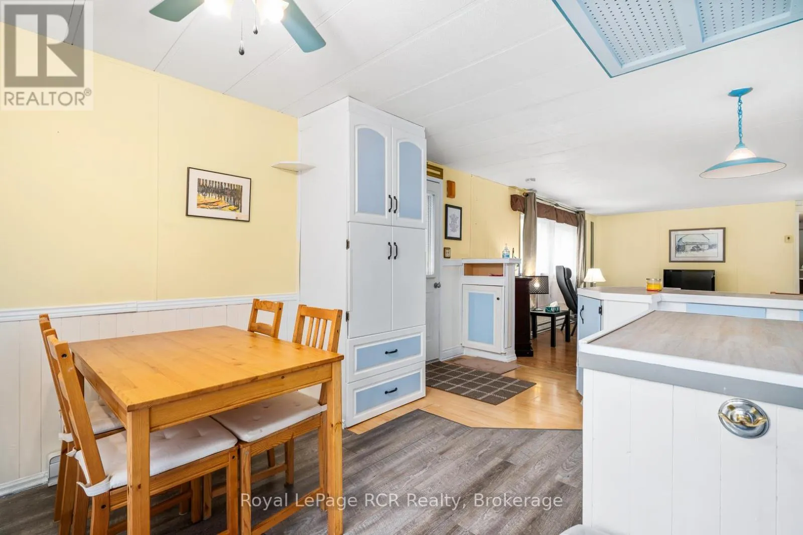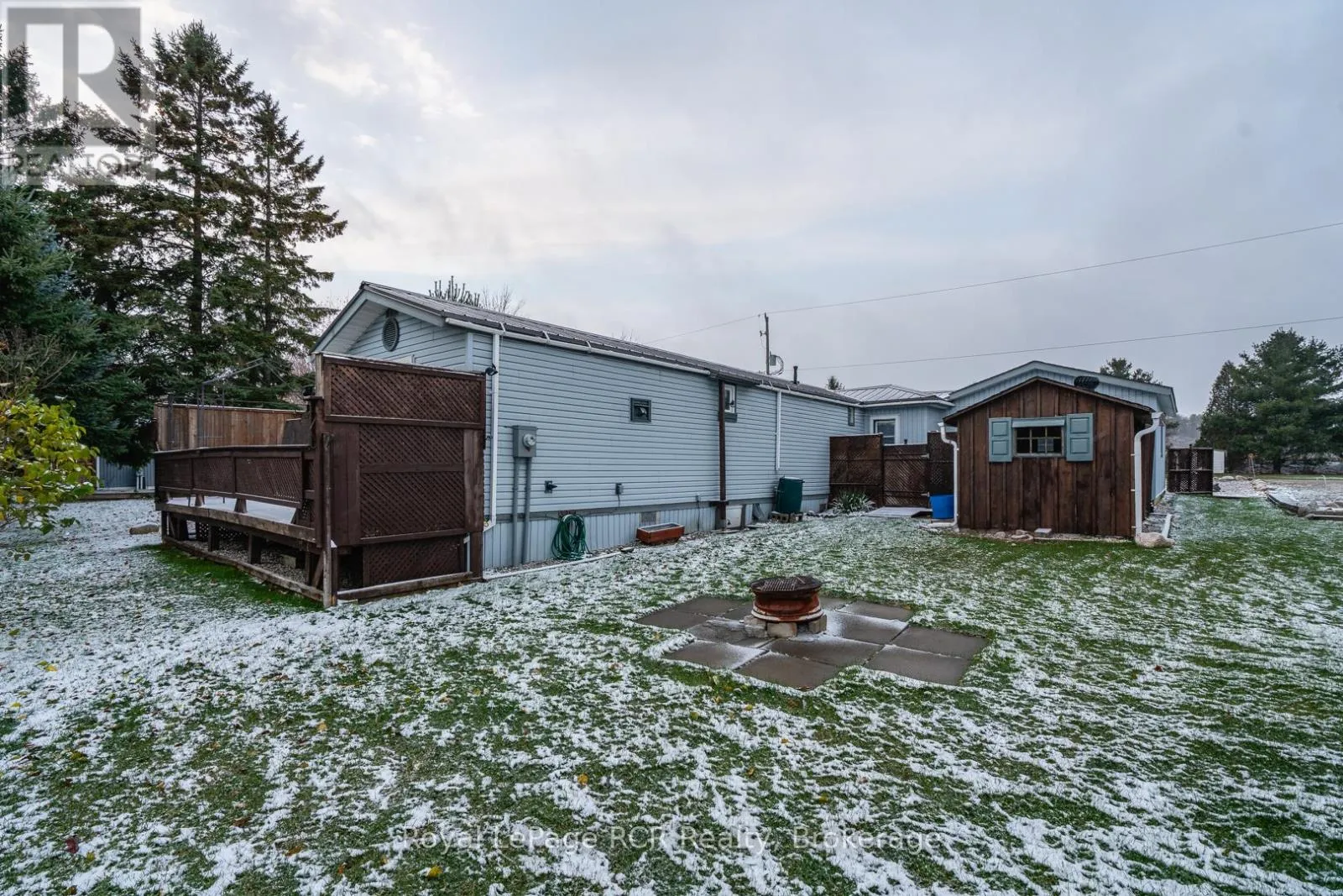 Cross Streets: Concession 4. ** Directions: From lights in Mildmay, head west on Absalom Street. At T, turn left (south) on Bismarck and proceed to concession 4. Turn left (east) and proceed to 230. Go up laneway to unit 3. Affordable two-bedroom mobile home with attached garage, set on a peaceful lot overlooking a pond, forest and open fields. Features include a peaked steel roof, a bright and open-concept kitchen/living area with a new sliding door (2024) leading to the back deck where you can relax and enjoy the view, 200 amp service, full appliance package, two garden sheds, several outdoor sitting areas, lots of storage, generator plus hook up, plus immediate possession available. Furniture negotiable. Located on a quiet road, just minutes from the charming community of Mildmay. Must have park approval for leased land, mostly seniors in the community. Very reasonable rate of $150 monthly for snow removal on road, water (community well) and lease. Steel roof approx 2023 and shingled roof on garage within 5 years approx. (id:27476)