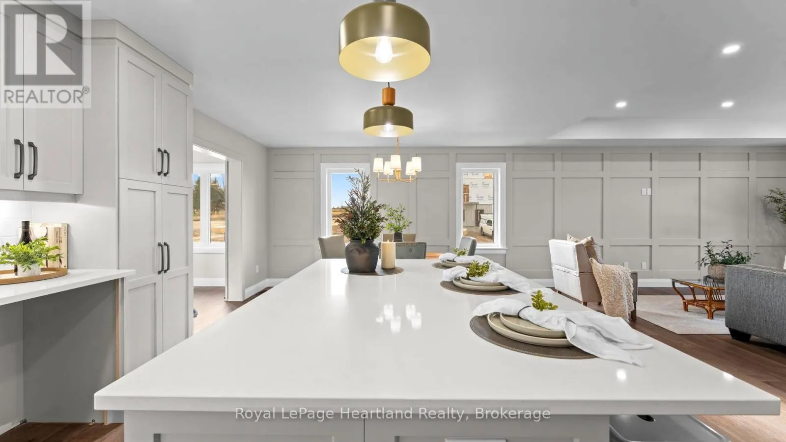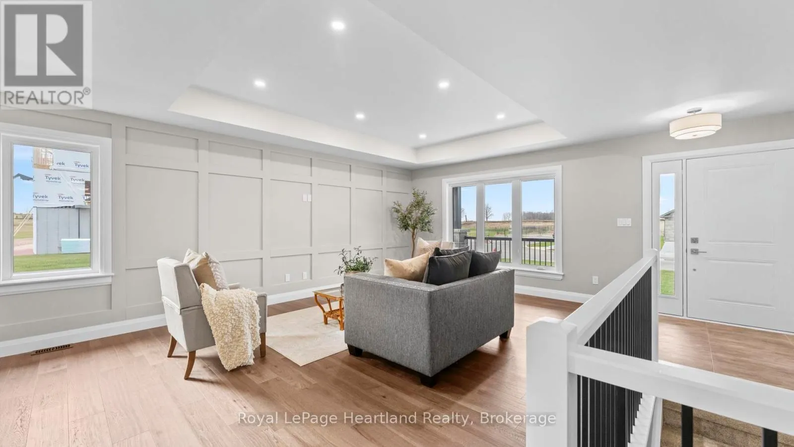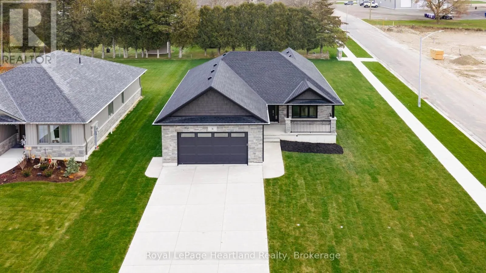 Cross Streets: Cassidy St. and Galen St. ** Directions: From Wingham, take Highway 4 towards Teeswater- Left Cassidy St. -Right Galen St. Property on Corner #31. Road is not on Google Maps yet. Brand-new 3-bedroom bungalow on a large corner lot in a quiet small town. This stunning home features an open-concept living/dining/kitchen area with quartz counters, main-floor laundry, and a spacious primary bedroom with ensuite. An enclosed sunroom extends the living area and opens directly onto the back deck, perfect for relaxing or entertaining. The partially finished basement offers incredible flexibility. Designed with garage access, it includes a large rec area, a bonus room, generous storage, and a 4-piece bath. The thoughtfully designed layout has a kitchen area roughed in for future opportunities. Come check out this fresh, functional layout with quality finishes. Perfect for anyone seeking comfortable main-floor living in a peaceful community. (id:27476)