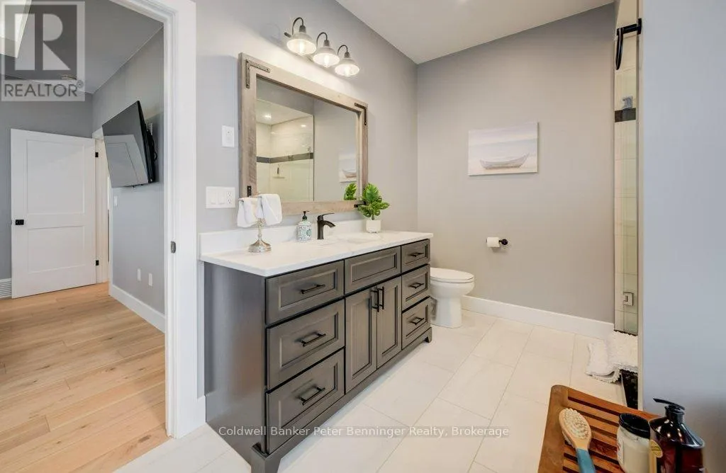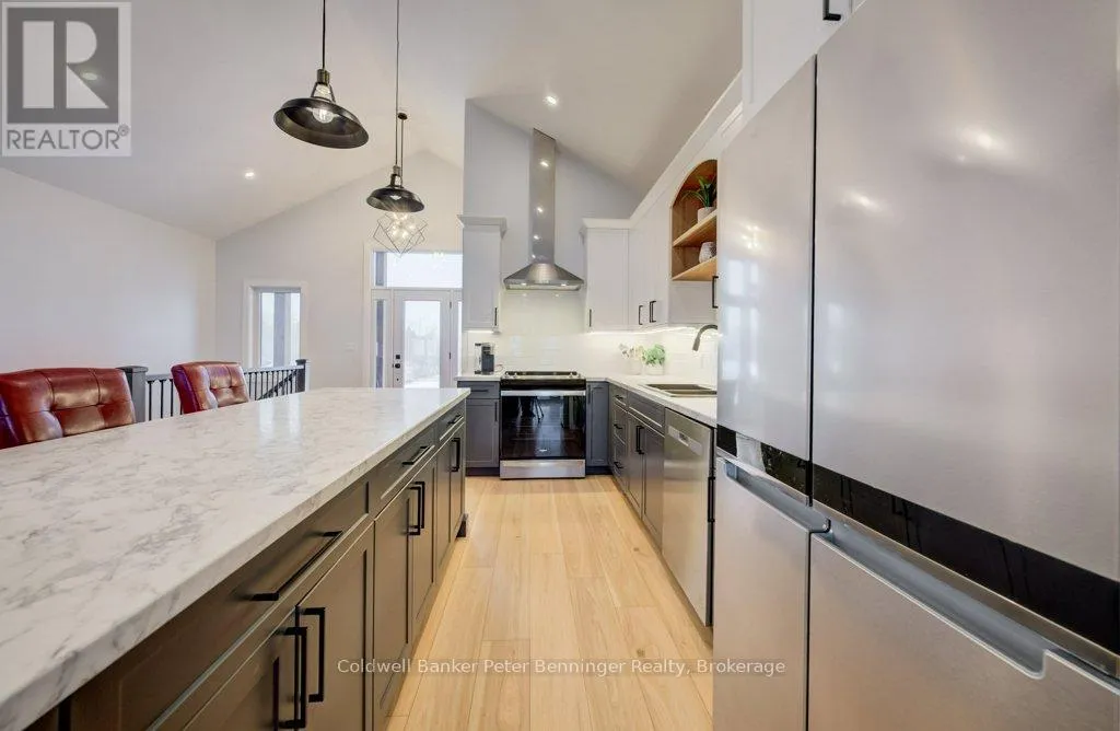 Cross Streets: Mel St/Fred St. ** Directions: from Absalom St W turn south on Mel St to property on West side of street. This is a stunning home that was built in 2022 and offers over 3000 sq. ft. of finished living space the open concept design has been constructed and finished with high end quality. Your firstly greeted with a beautiful timber frame front porch, that's complimented by beautiful stone work. As you enter the home, the open concept is very inviting, along with the vaulted ceilings, luxury flooring , 2 massive sliding doors that lead to the timber frame covered rear deck are on each side of the fireplace in the living room. Sit and enjoy the fireplace on those stormy winter days and also enjoy all the natural light that floods in. Main level has primary bedroom with a beautiful en suite bath and large walk in closet. Two additional bedroom and 4pc bath are situated on the opposite of the home. Lower level has a spacious rec room with roughed in for a wet bar, 2 additional bedrooms, 4 pc bath, exercise room, cold cellar and stellar mechanical room. Appliance package included (3 years old) double concrete drive, custom blinds on all windows. This is a beautiful home that you would be proud to call home! (id:27476)