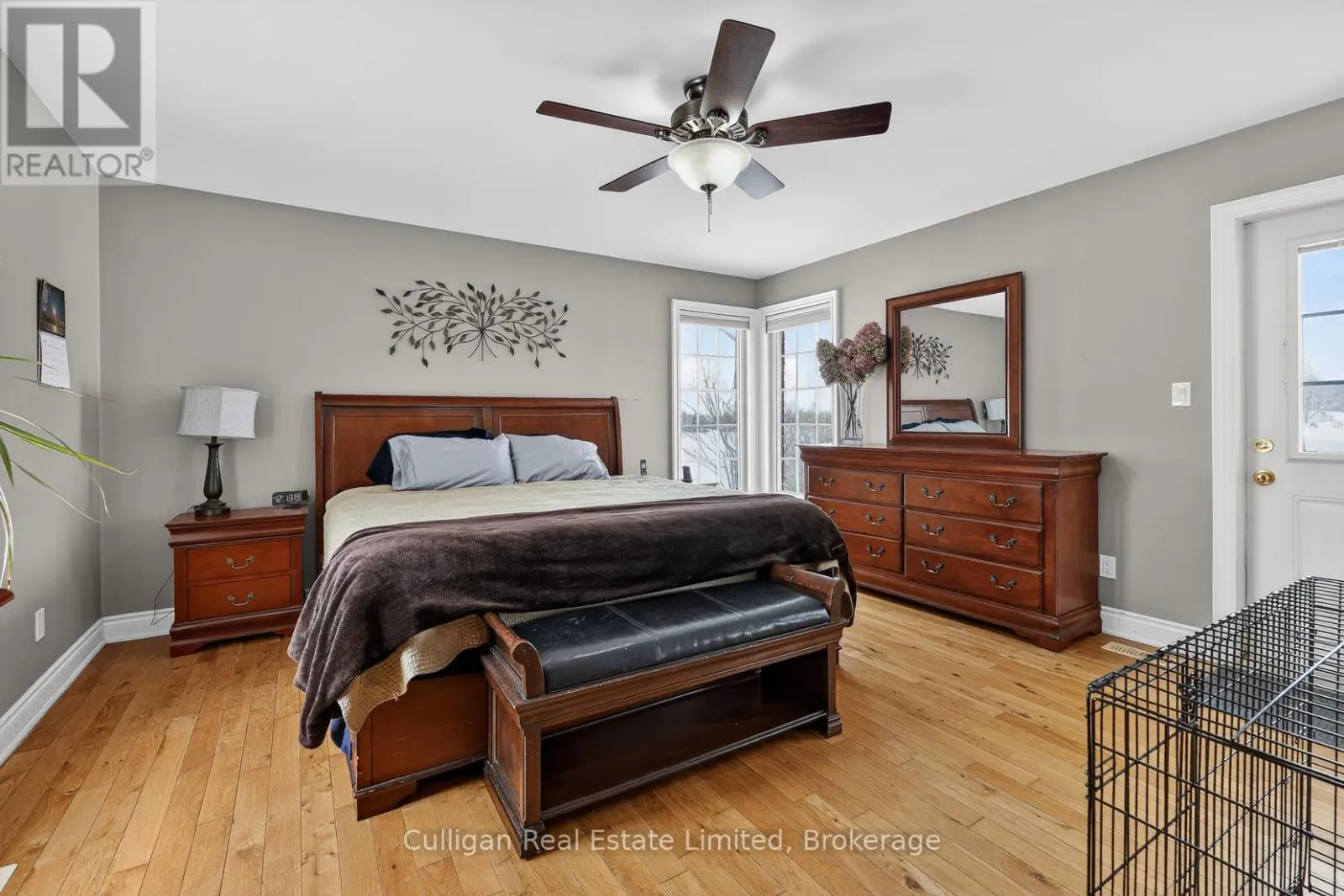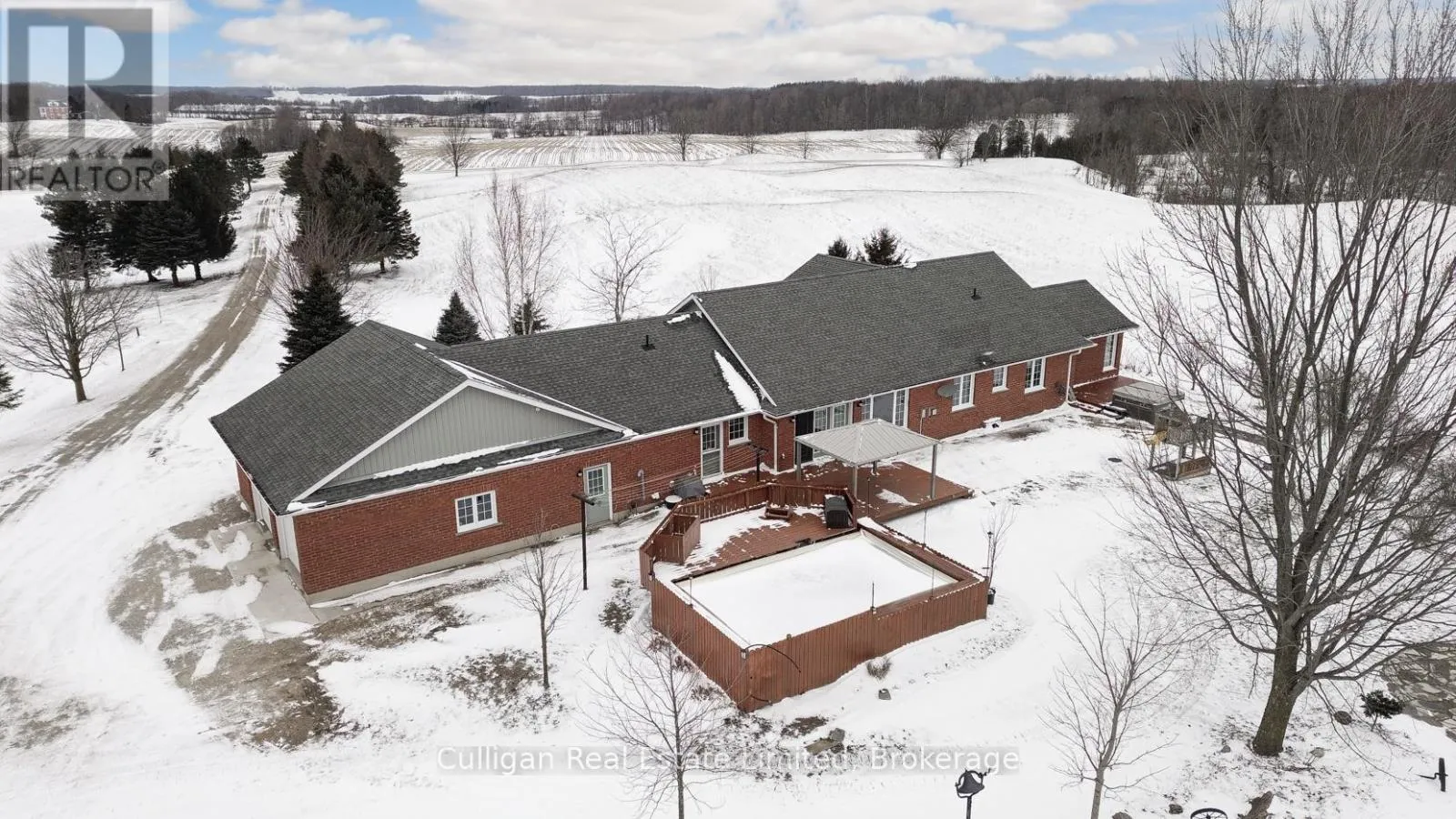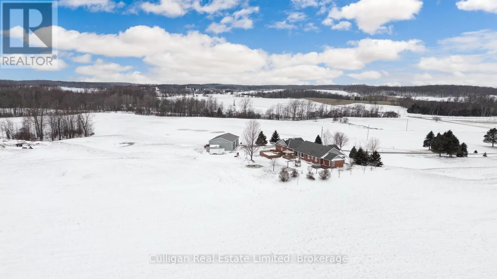Cross Streets: Field Road & Tack Road. ** Directions: From Harriston main intersection, go N on Elora St N/ON-9 out of town & travel 16.3km, straight through Clifford, to Side Rd 45. Go left for 1km to Field Rd/Sideroad 25 S. Turn right. Go approx. 1.6km and around the curve to 321 Field Road on left. Beautiful idyllic retreat in South Bruce. Tree-lined drive leads up to gorgeous brick bungalow set on verdant 102-acre parcel w/65 ac. wrkbl. land for income, currently in hay (tenant likes 1st cut). 25 ac. of bush w/maple & cherry trees. Amazing home offers plenty of space inside & out. Paved parking area leads past quaint porch to main front door. Foyer opens to open-concept living rm/dining rm/kitchen, w/hardwood floors & cathedral ceiling. Casement windows thru-out main level. Hallway off foyer leads to 3 generous bedrms, family bath w/sep. sink area, & bright primary bedrm w/walk-in closet, ensuite w/clawfoot soaker tub & sep. glass shower, beautiful views of surrounding land & deck walk-out. Lg Lvg rm w/focal point corner propane fireplace w/custom surround. Dining area w/French door opening to back deck w/above ground pool&BBQ area. Beautiful oak kitchen w/center island & built-in appliances & sep. appliance closet. Walk-in pantry just off kitchen in mudrm. Mudrm has tiled floor, dbl closets, & access to porch, attached extra-deep 2.5 car garage, plus main floor laundry w/dbl closets & built-in cabinetry, 2pc.bath & rear door to back deck, pool, BBQ area, clothes line & concrete patio. Oak staircase off living rm leads to lower level w/heated, engineered hardwood floors. There is large rec-rm, office/bonus rm, bedrm, summer kitchen, 3 pc bath, storage areas, ample closets & walk-up access to garage. Mature landscaping frames home. Gardens offer fruit trees & berry bushes. Flagstone firepit. Property also offers large, gravelled yard leading to 32'x50' insulated shop w/200 amp service, welder plug, receptacles all around, in-floor heat & propane boiler, O/H poly doors 12'x11.5' &10'x11.5', plus 12'8" ceiling height & water. Ample recreational opportunities abound from beautiful landscaped pond w/floating dock & diving board & 16'x16' pavilion w/ enclosed wall &hiking, cross country skiing or snow shoeing here. Make 321 Field Road your forever home. (id:27476)