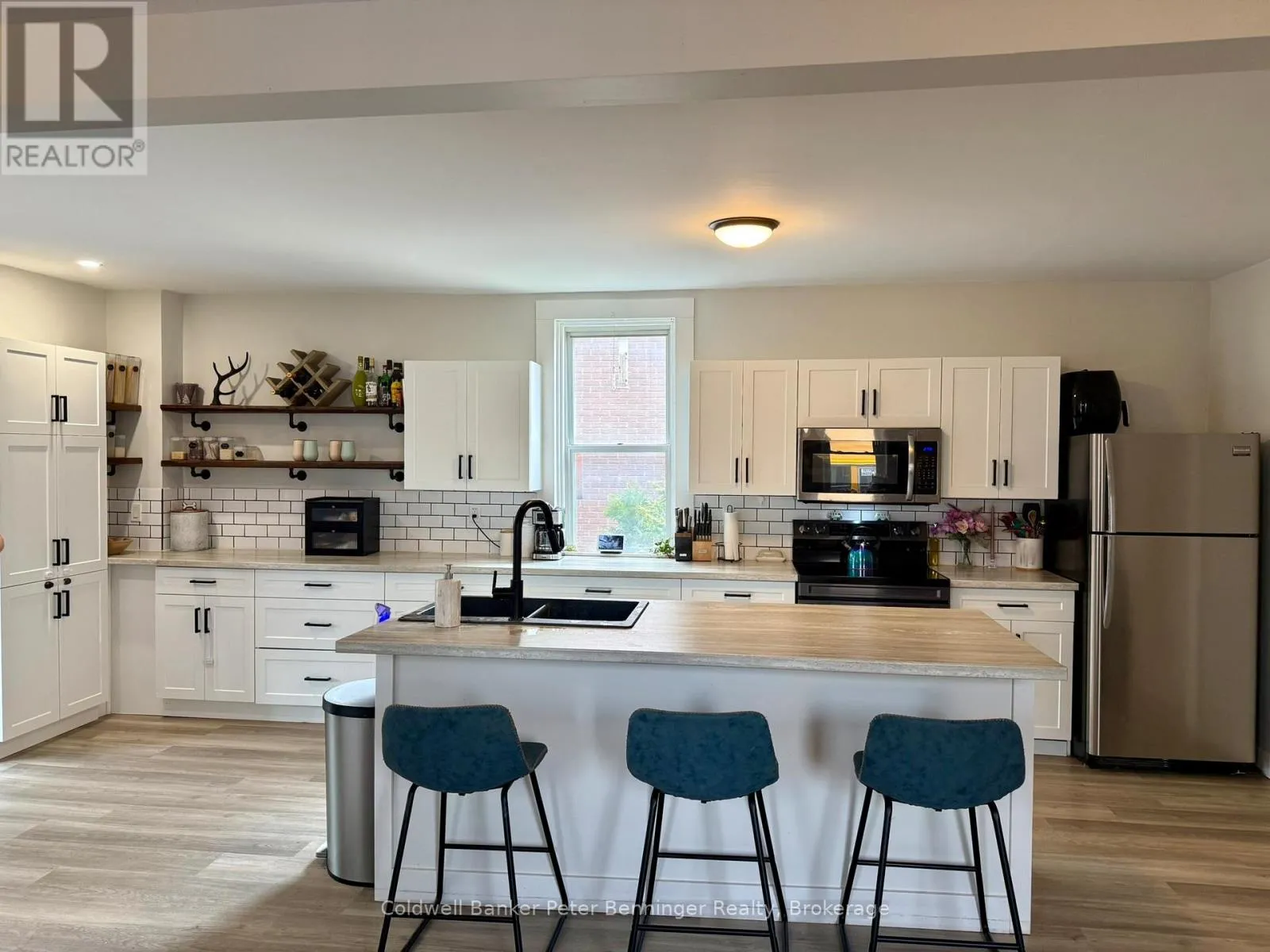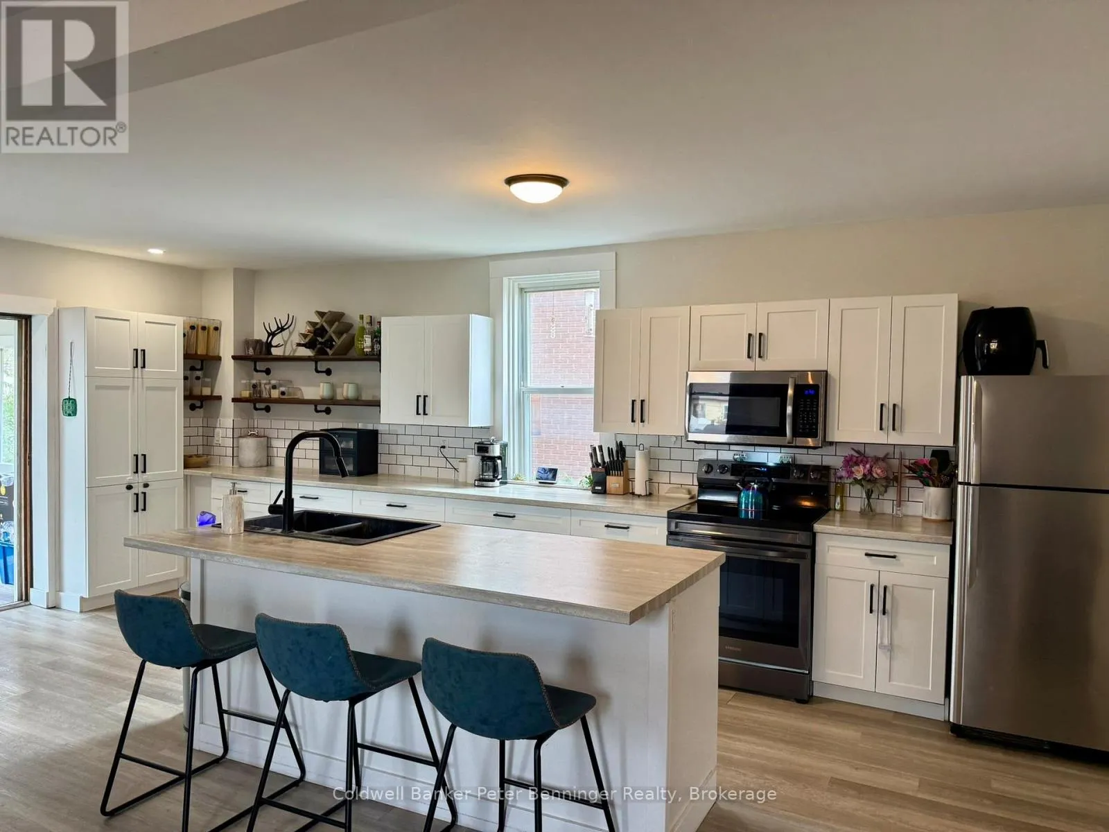 Cross Streets: Brownlee St N/Hillcrest St W. ** Directions: From North end of main street, go west on Union St W, North on Brownlee St N. Home on east side. This beautiful 2 storey home was extensively updated in 2021 offering loads of space for the entire family. It's ideally situated a block from the main street of Teeswater and just around the corner from elementary schools. Vinyl plank flooring runs throughout the entire home. An enclosed front sun porch makes a great mudroom. From there enter the home, a large living room can be found. To the left, offering a clear sight line to the dining area and massive kitchen which has a large island, plenty of storage, soft close drawers, cabinets and lovely open shelves. Laundry is combined with the 5 piece bath, a rear enclosed sun room completes this level. Upstairs you will find an extra wide hallway that leads to 4 bedrooms and another 5 piece bathroom. Bonus is the 2 bay shop/detached garage that measures approximately 20' X 28'. Large rear deck and nice size yard is great for entertaining. This home is ready to simply move in and enjoy. Call for you personal viewing! (id:27476)