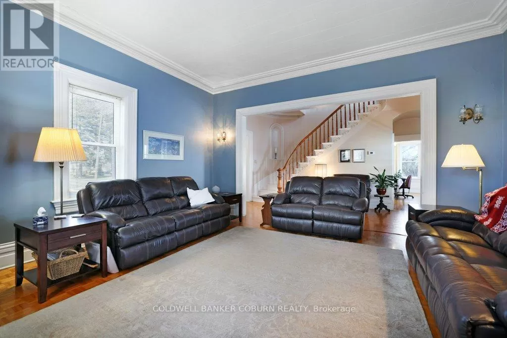 Cross Streets: Steward Drive/Lakeshore Drive. ** Directions: From HWY 401 at Exit No. 750 travel south on CTY RD 31/Ottawa ST to the river where Lakeshore Drive begins. Travel west about 0.75 kilometers to home on the left (south) side. Sign on property. THE CENTENNIAL COTTAGE at 81 Lakeshore Drive, Morrisburg is a rare Victorian era brick home completed in 1875 and being offered for sale for the first time in 4 decades. Upon entering this home your eyes will immediately be drawn to the sight-lines leading out to the St. Lawrence River. The centre hallway has a magnificent curved staircase leading to the second floor. Strategically placed windows drive in lots of natural light and allow fabulous views of the river. Possessing all the Victorian style this home presents generously sized rooms with large baseboards and high ceilings adorned with crown mouldings. Ceilings in the formal rooms on the first floor average 10 feet 7 inches and 9 feet 3 inches on the second floor. On the exterior above each window is a cast iron image of a young Queen Victoria. The maids quarters on the east side have been converted to an attached garage. There are two stairways to the basement, which has good height and possesses large windows looking out towards the river. The land extends to the waters edge without an OPG licence. The St. Lawrence River, shopping, banks, restaurants, parks, swimming beach, boat launch & dock, medical & dental clinics, golf, curling, arena, library & Upper Canada Playhouse are all a short walk or bicycle ride away. Please take the virtual tour and check out the additional photos, aerial drone photos and floor plans. Major Upgrades: 2016-2019 - 37 Windows Replaced; 2018 - Garage Door Replaced; 2018-2019 - 2 Man Doors Replaced; 2019 - Retaining Wall and Shoreline Restored; 2021 - New Gas Furnace Installed; 2022 - Roof Shingled and Eavestrough Installed; - Sewer Lateral Replaced. Utility Costs: Gas - $204.00 per month; Hydro - $70.58 per month; Water/Sewer - $90.60 per month. (id:27476)
