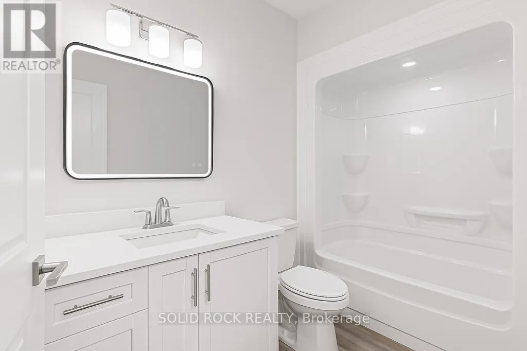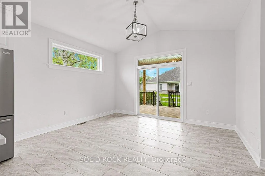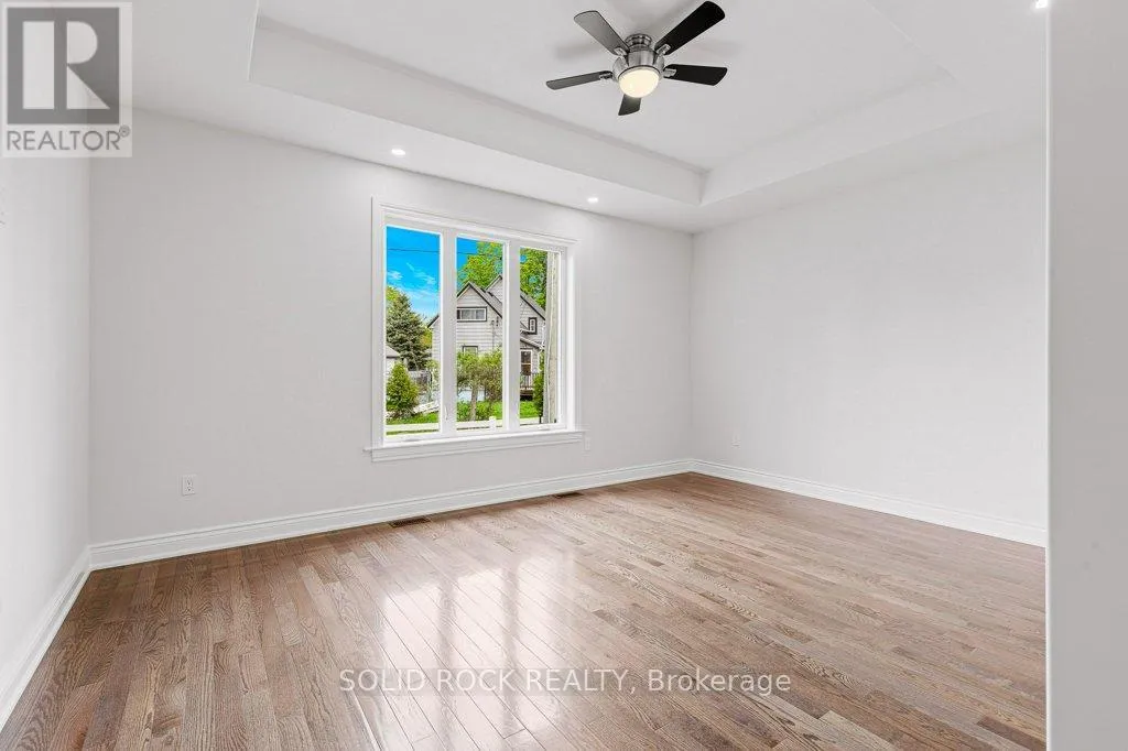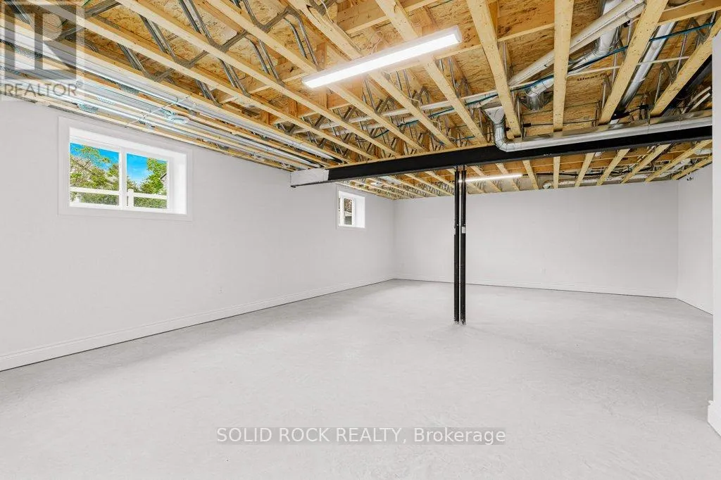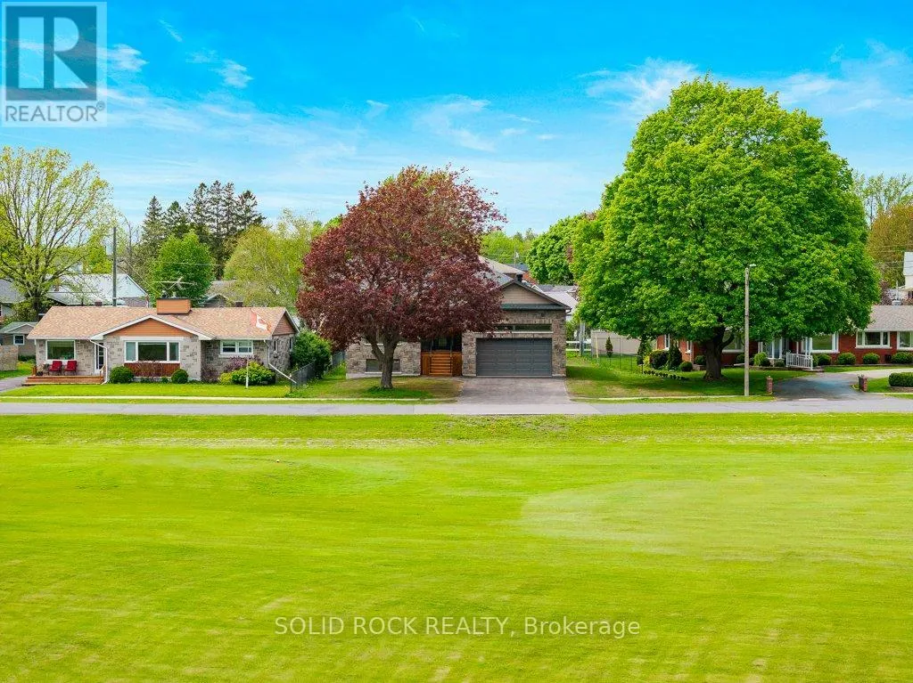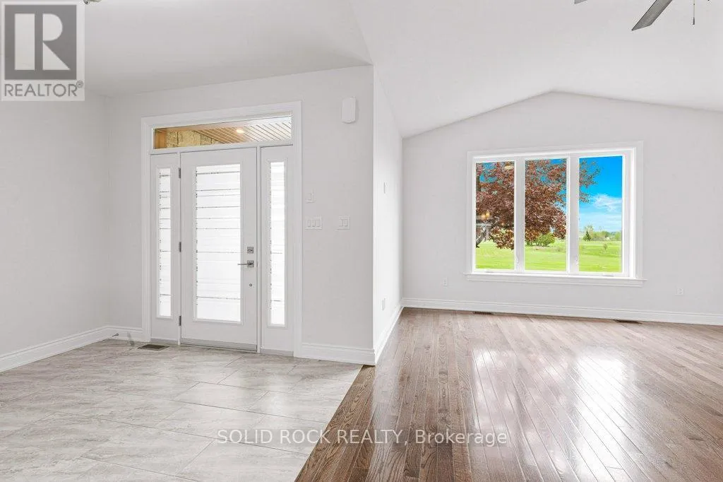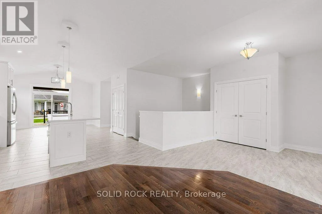 Cross Streets: Maple Avenue. ** Directions: See mapping. Incredible 44' deep grand room overlooks 18-hole waterfront golf course! 9 ft & 11 ft high main level ceilings & multitudes of big, bright windows, & energy efficiency are just a few of the hallmarks of this bungalow-This brand new never-lived-in home includes new home warranty! Tremendous curb appeal starting with the mature red-maple tree, designer roof lines & stone front complimented by James Hardie siding-After you park your car in paved drive, you can walk up to front covered veranda & catch a glimpse of an ocean-going freighter-Entering front foyer you will be impressed with lovely tile throughout foyer & kitchen/dining area & wowed by the vaulted 11 ft ceilings that extend from front to back in this magnificent grand room-Huge south-east facing window allows you to enjoy all the golfing action across the street-Custom kitchen features white shaker kitchen cabinetry with ample pull-outs, multitudes of pot drawers + full-height pantry-Kitchen is complete with centre island, Canadian-made quartz countertops, gorgeous tile backsplash, brand new Frigidaire Gallery stainless steel appliances incl d/w, microwave/hood range, gas stove & French dr refrigerator with bottom freezer-Dining area patio drs lead to 14 x 12 ft covered veranda overlooking fenced yard-Main level east wing has 9 ft ceilings & very wide tiled hallway leading to inside entrance to garage, main flr lndry & features a chic 4-pc bath, spacious 2nd bdrm & large primary bdrm with 9 ft high tray ceiling, walk-in closet & marvelous ensuite with walk-in shower-Gorgeous hrdwd in living room & both bdrms-Dnstrs you find a fully finished living space ideal for extended family/in-law suite-Every room has even more big, bright windows & tall ceilings-you would never know this is a bsmt! Main garage dr measures 16x8ft to accommodate oversized vehicles & there is an 8x7 side garage dr, ideal for golf cart or snowmobile-HST incl-Please ask us for a copy of Builder Upgrades-Walk to shopping & Tim's! Welcome home (id:27476)