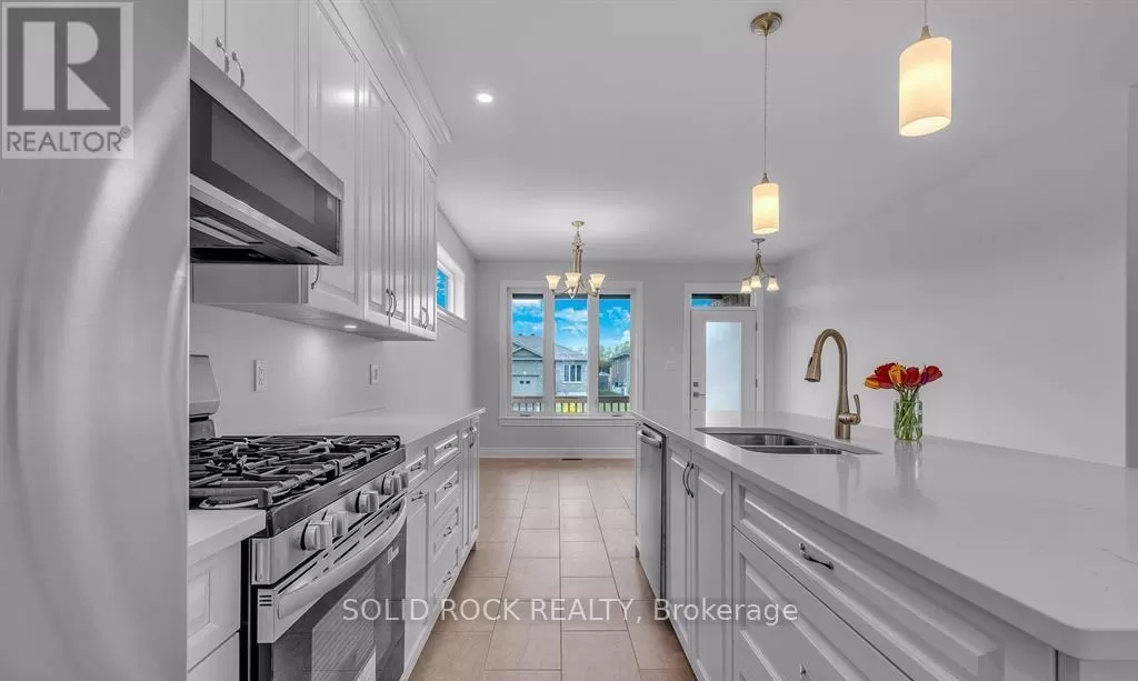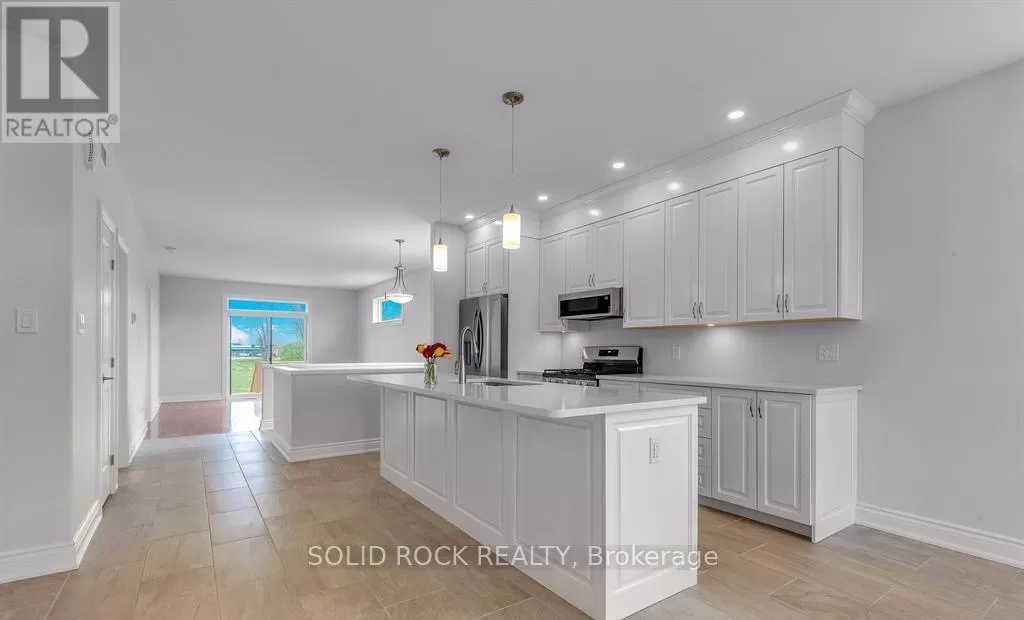 Cross Streets: Billings Avenue W. & Rooney Street. ** Directions: See mapping - Hwy 401, exit 738 for Iroquois & go south app 2 km-At roundabout go east 3/4 km on County Road 2-Just past Tim Horton's turn left & go north on Rooney St & west on Billings Street West to subject property. Iroquois-A great place to raise a family or retire! You will love the beautiful stone on front of your new bungalow & eye-catching James Hardie siding on the side & rear of home! Wall-to-wall ceramic tile & gleaming hrdwd in 1100 sq ft main level adds to the grandeur! The multitudes of big, bright windows make this brand-new Energy-Star semi feel like a single-family homeYou will be impressed with many builder upgrades from lifetime warranty shingles to 9 ft ceilings thru-out main level including in huge open concept grand room that extends from front door to rear patio door that leads to private rear deck & nice backyard! Soft close kitchen cabinets feature many pull-outs, custom hardware & crown moulding finished flush to ceiling at top of kitchen cabinetry-Centre island with breakfast bar will surely impress! Gorgeous new hi-end stainless steel energy efficient kitchen appliances as well as a brand-new washer & dryer! The east side of home features a spacious primary bedroom with large walk-in closet, 3-pc ensuite with quartz vanity countertops that match countertops in main level 4 pc bath as well as the quartz countertops in kitchen-Absolute wow-factor!-Other upgrade incl Inside entrance to the insulated garage as well as an 8 ft high garage door-Garage has both hot & cold water to wash your vehicle-Fully finished lower level has full height 8 ft ceilings & hi-end vinyl floor in both spacious bedroom with big egress windows, large family room & impeccable 3 pc bath for a possible in-law suite-200 amp breaker service, on-demand hot water & HE nat gas furnace-The bungalow has spray foam insulation on both levels incl utility room & even the garage! $70/mo. nat gas cost for heat/hot water-7-year new home warranty! -Walking distance to public school & high school-Anytime Fitness-grocery store-pharmacy-Tims-LCBO-RBC-24-hour gas bar-restaurants-one of the nicest beaches in Eastern Ontario-marina-waterfront golf course-Come for a look, you will be impressed! (id:27476)