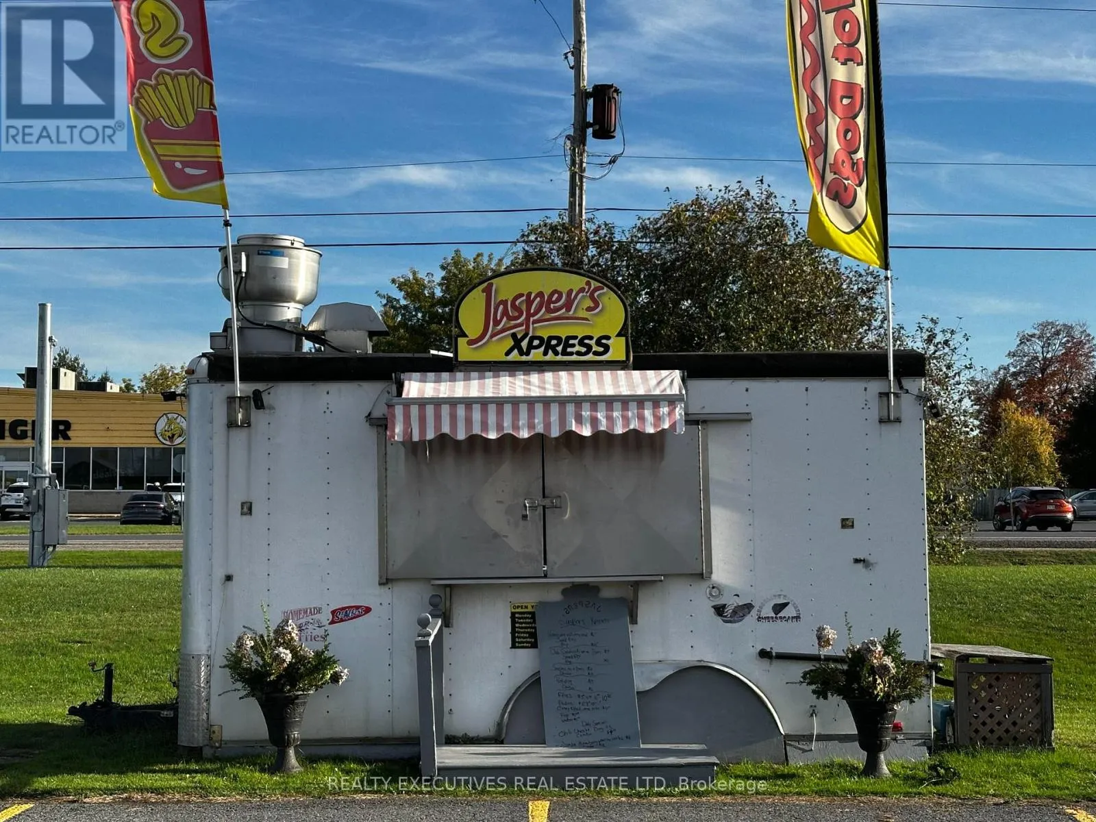 Cross Streets: County Road 2 and County Road 31. ** Directions: In front of the Canadian Tire, Morrisburg. Year Around 16' Food Trailer - Start Your Business today in this Prime Location! It has everything you need to start your portable food business, whether you want to make fries & burgers, sandwiches, or specialty dishes - this business has been running for 15 years and is Health Unit approved, ready to go! It comes with: Royal Propane single fryer (2 baskets), Volrath propane grill, 60" hood with fire suppression unit, under-counter fridges, stand-up freezer, electric stove, Bunn drip coffee machine, sandwich prep table, double sink, separate handwashing sink, water holding tank, portable grey water tank, 2 microwaves, toaster oven, Hamilton Beach Mix N Chill, Cash Drawer, Battery & charging unit, fire extinguishers. Trailer has insulated walls & ceiling; 60 amp service. The owner is currently operating using electric fryers & Panini machine. New owner can have propane hooked up. Located in the Canadian Tire Parking Lot, Morrisburg! (id:27476)
