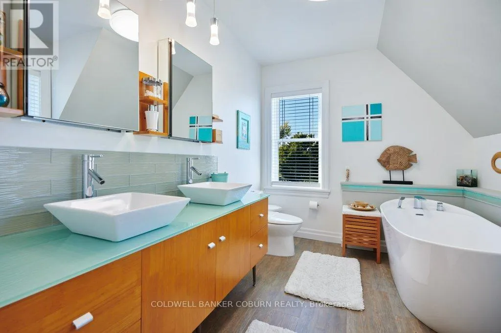 Cross Streets: Meikle ST/Lakeshore DR. ** Directions: From HWY 401 at Exit No. 750 travel south on CTY RD31/Ottawa ST to the river where Lakeshore Drive begins. Travel west about 0.5 kilometers to home on the right (north) side. 54 Lakeshore Drive - This beautifully restored Edwardian home, built in 1910, has been thoughtfully updated with exceptional attention to detail while preserving its period charm. The main floor offers a modern kitchen, a dining room/sunroom with access to a spacious covered Trex porch, a three-piece bath, a west-facing den, a second sunroom with river views, and a bright living room. Both the dining/sunroom and living room feature gas fireplaces, creating warm and inviting gathering spaces. The upper level includes three bedrooms, an open gallery, and a four-piece bath. The renovated basement is warm, dry, and highly functional-ideal for exercise, hobbies, or additional storage. Exterior of home features Hardie siding, updated windows & doors as well as roof shingles. Outdoors, a newly constructed, period-appropriate two-car garage includes a storage loft. The expansive driveway accommodates up to eight vehicles and is finished with paving-stone edging. The lower deck features a retractable awning, natural-gas BBQ hookup, hot tub, and a 240-volt outlet. A garden shed provides extra storage, while a Wi-Fi-controlled irrigation system keeps the lawn lush throughout the summer. Smart-home features include a Nest thermostat, Dekco security cameras, discreet exterior lighting, and extensive Bluetooth/Wi-Fi control of lighting, HVAC, and irrigation. Located in the historic village of Morrisburg-one of the St. Lawrence River's early Loyalist settlements-this home enjoys a setting known for its rich heritage, riverside beauty, and welcoming community. The river, shopping, banks, restaurants, parks, beach, boat launch and dock, medical and dental clinics, golf, curling club, arena, library, and the Upper Canada Playhouse are all within a short walk or bike ride. Explore the virtual tour, photos, drone imagery, and floor plans to fully appreciate this exceptional property. (id:27476)