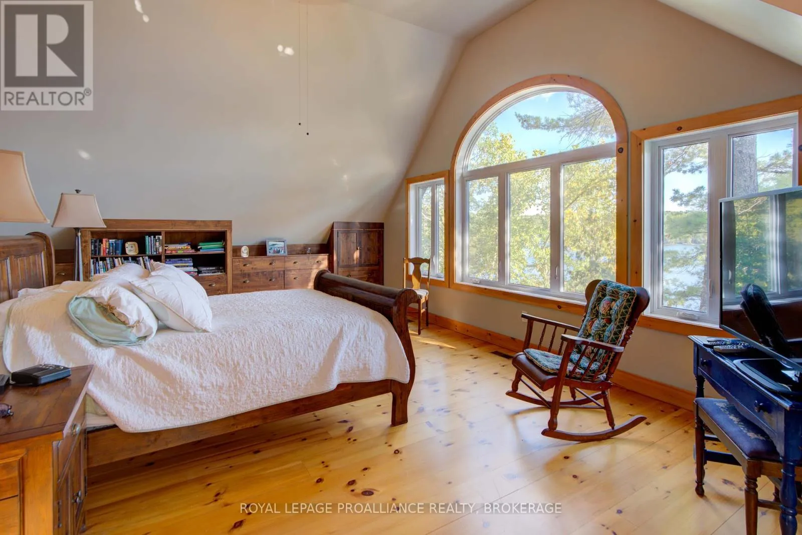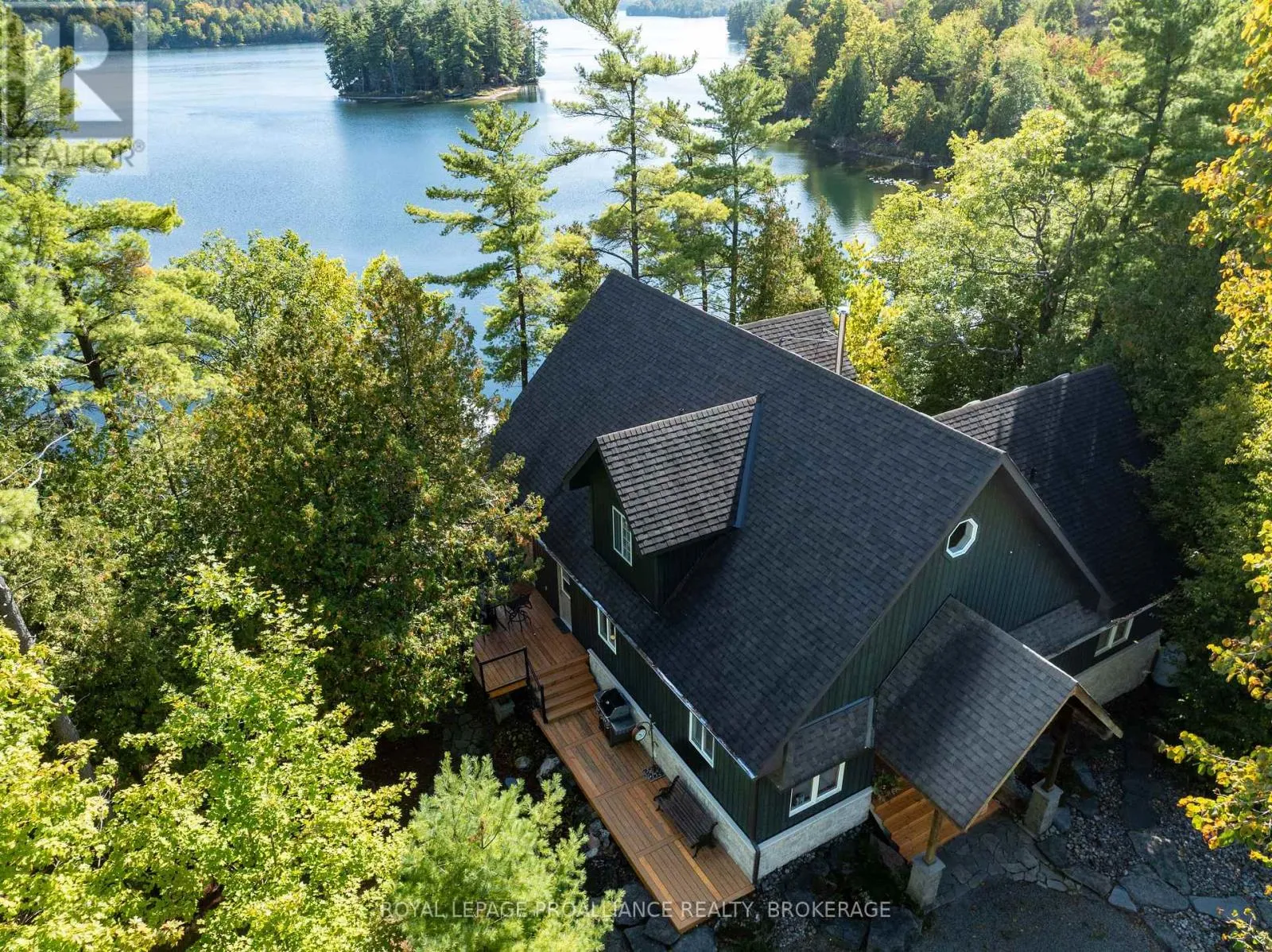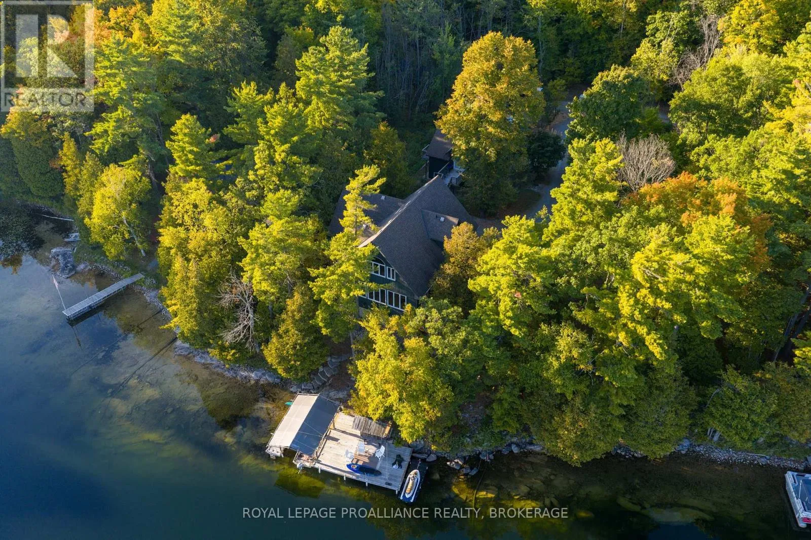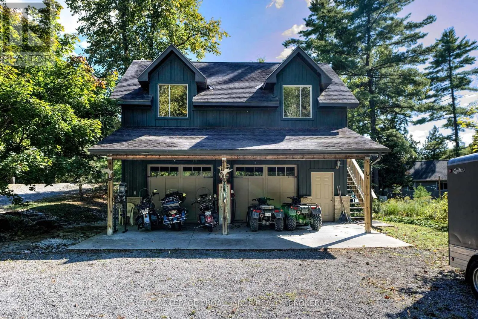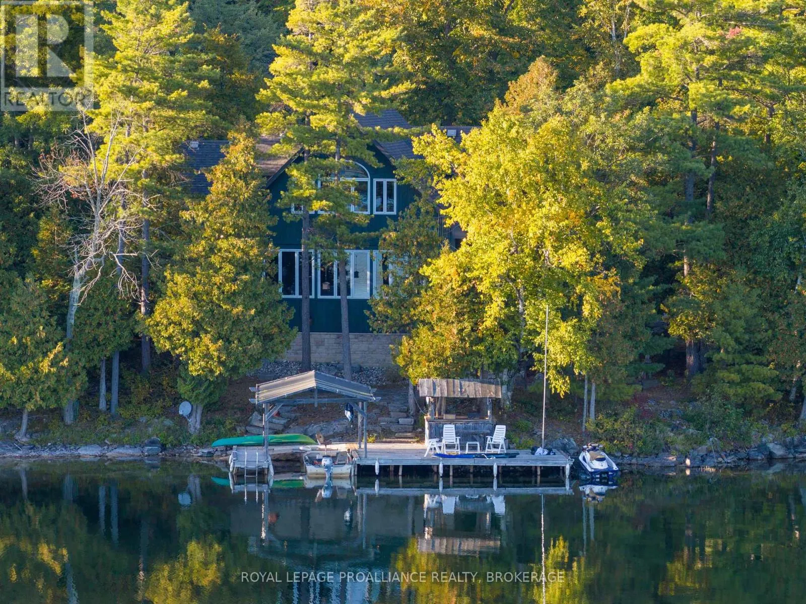 Cross Streets: Perth Road / MacComish Lane. ** Directions: Perth Road South of Westport to MacComish Lane,follow to end at #441 B. Waterfront oasis on Buck Lake! This beautiful property features 2+ acres of land and200 ft of shoreline. This gorgeous home sits close to the lake with level access to shallow water and deep water off the dock. Enjoy the large dock, covered boat slip and tiki bar - with southern exposure for sunrises and sunsets. The view is stunning looking out over the bay and the location is private & peaceful. As you enter under the timber frame porch, you immediately feel a sense of relaxation in this stunning lake house. The main floor has a large, open concept Great Room with expansive windows and access out to the deck. The custom Corelle Kitchen is a showpiece with Madagascar blue granite countertops, dbl drawer dishwasher, under-counter microwave and a pot filler above the propane stove. Enjoy cozy evenings with the warmth of the Pacific Energy wood-stove. The main floor bedroom has an attached 4-pc bath that also has access from the foyer. The office next to the foyer could be another bedroom. The bathrooms and foyer have heated slate floors while the balance of the home has wide-plank pine flooring - from trees on the property! The second level features a large bedroom at the rear, laundry area and an amazing primary bedroom with cathedral ceilings, custom cabinets, a 3-piece ensuite bath and gorgeous views over the pristine waters of the lake. The partial basement has concrete floor & spray foam walls and the home is heated by propane forced air, has 200-amp service, a lake water system with UV light, Hide-A-Hose central vacuum, HRV, electric hot water, A/C and an on-demand backup generator system. A catwalk leads from the house to extra living space above the 2-car detached garage. This space has a large family room, dining area, kitchenette along with a bedroom and a 2-piece bath. The exterior of the home and garage have vertical Timberthane wood siding with a lifetime guarantee. Stunning home located just south of Westport or 40minutes north of Kingston. (id:27476)