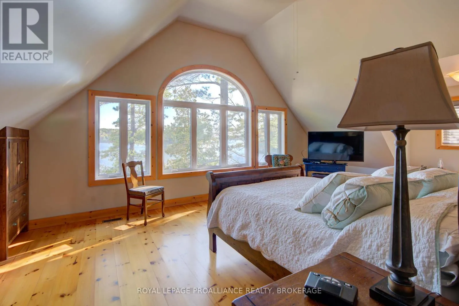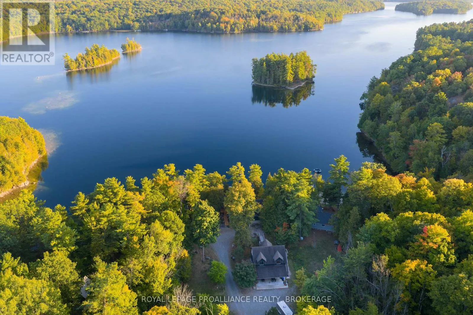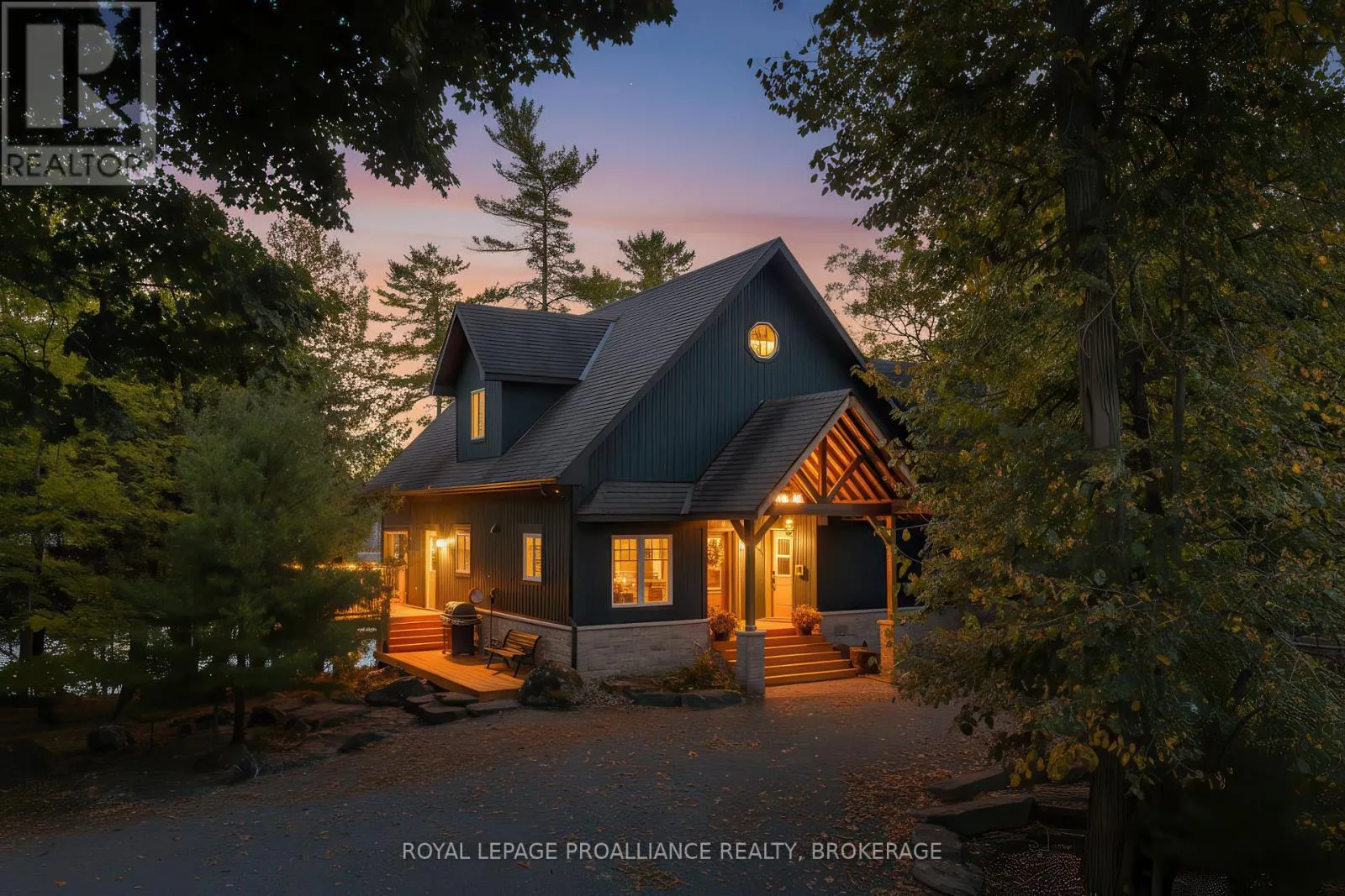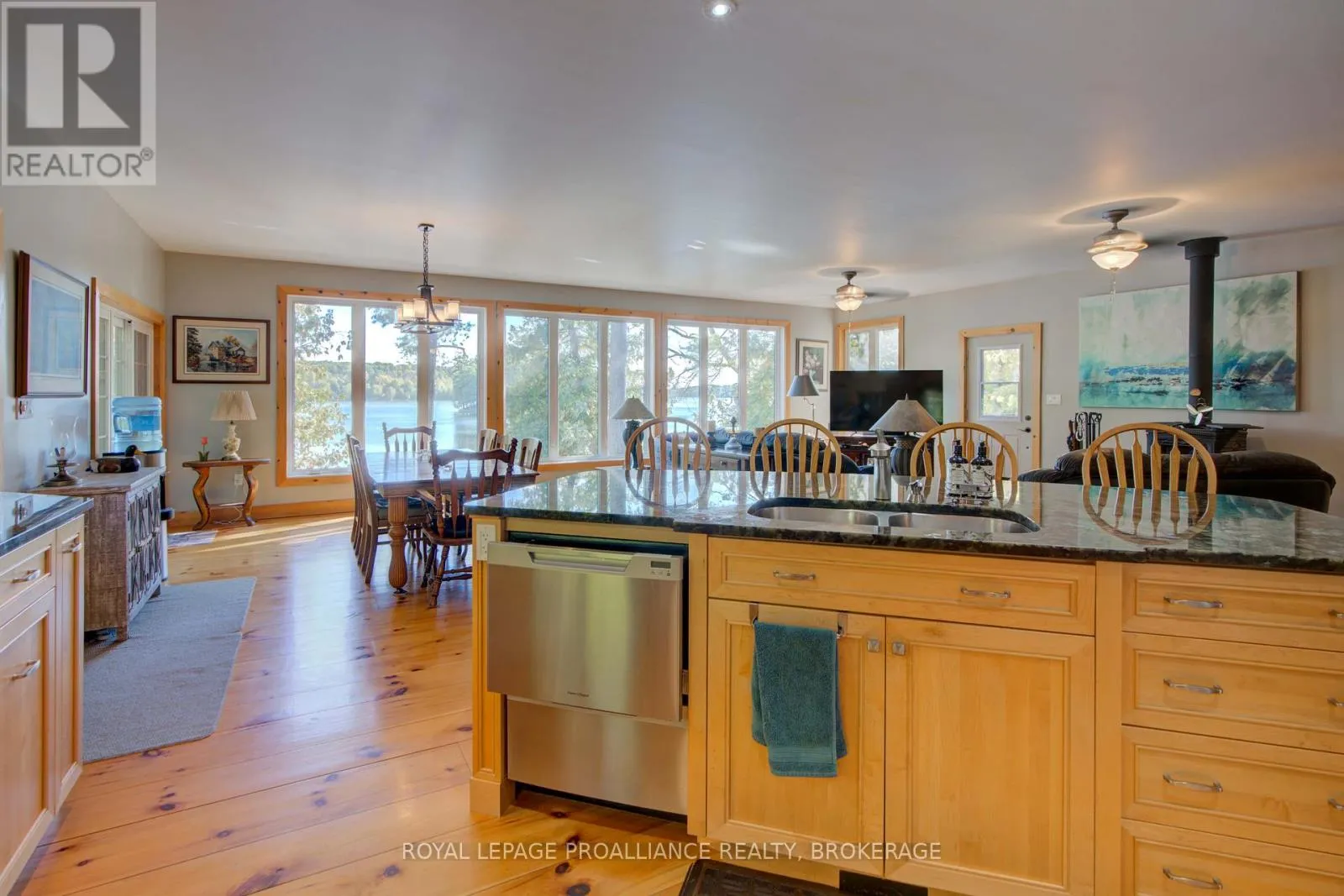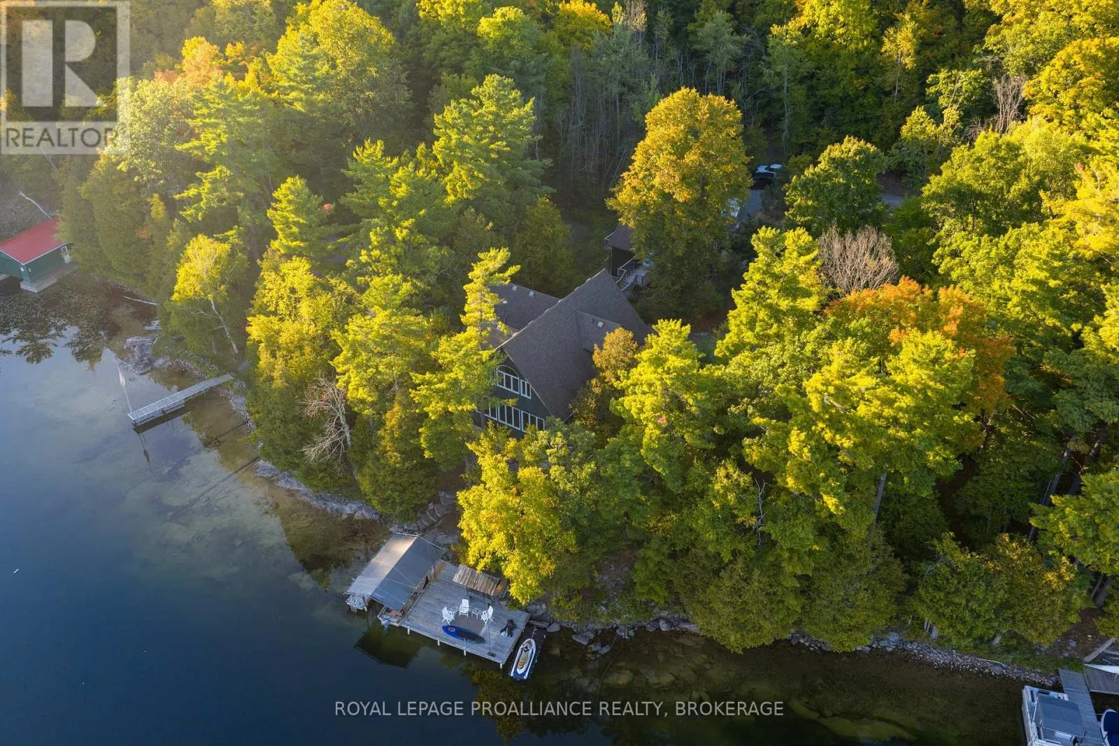 Cross Streets: Perth Road / MacComish Lane. ** Directions: Perth Road South of Westport to MacComish Lane,follow to end at #441 B. Waterfront oasis on Buck Lake! This beautiful property features 2+ acres of land and200 ft of shoreline. This gorgeous home sits close to the lake with level access to shallow water and deep water off the dock. Enjoy the large dock, covered boat slip and tiki bar - with southern exposure for sunrises and sunsets. The view is stunning looking out over the bay and the location is private & peaceful. As you enter under the timber frame porch, you immediately feel a sense of relaxation in this stunning lake house. The main floor has a large, open concept Great Room with expansive windows and access out to the deck. The custom Corelle Kitchen is a showpiece with Madagascar blue granite countertops, dbl drawer dishwasher, under-counter microwave and a pot filler above the propane stove. Enjoy cozy evenings with the warmth of the Pacific Energy wood-stove. The main floor bedroom has an attached 4-pc bath that also has access from the foyer. The office next to the foyer could be another bedroom. The bathrooms and foyer have heated slate floors while the balance of the home has wide-plank pine flooring - from trees on the property! The second level features a large bedroom at the rear, laundry area and an amazing primary bedroom with cathedral ceilings, custom cabinets, a 3-piece ensuite bath and gorgeous views over the pristine waters of the lake. The partial basement has concrete floor & spray foam walls and the home is heated by propane forced air, has 200-amp service, a lake water system with UV light, Hide-A-Hose central vacuum, HRV, electric hot water, A/C and an on-demand backup generator system. A catwalk leads from the house to extra living space above the 2-car detached garage. This space has a large family room, dining area, kitchenette along with a bedroom and a 2-piece bath. The exterior of the home and garage have vertical Timberthane wood siding with a lifetime guarantee. Stunning home located just south of Westport or 40minutes north of Kingston. (id:27476)
