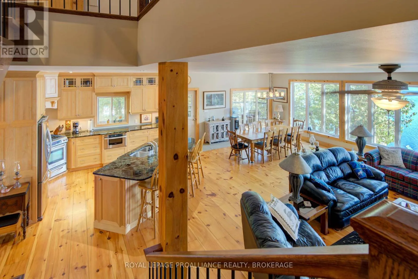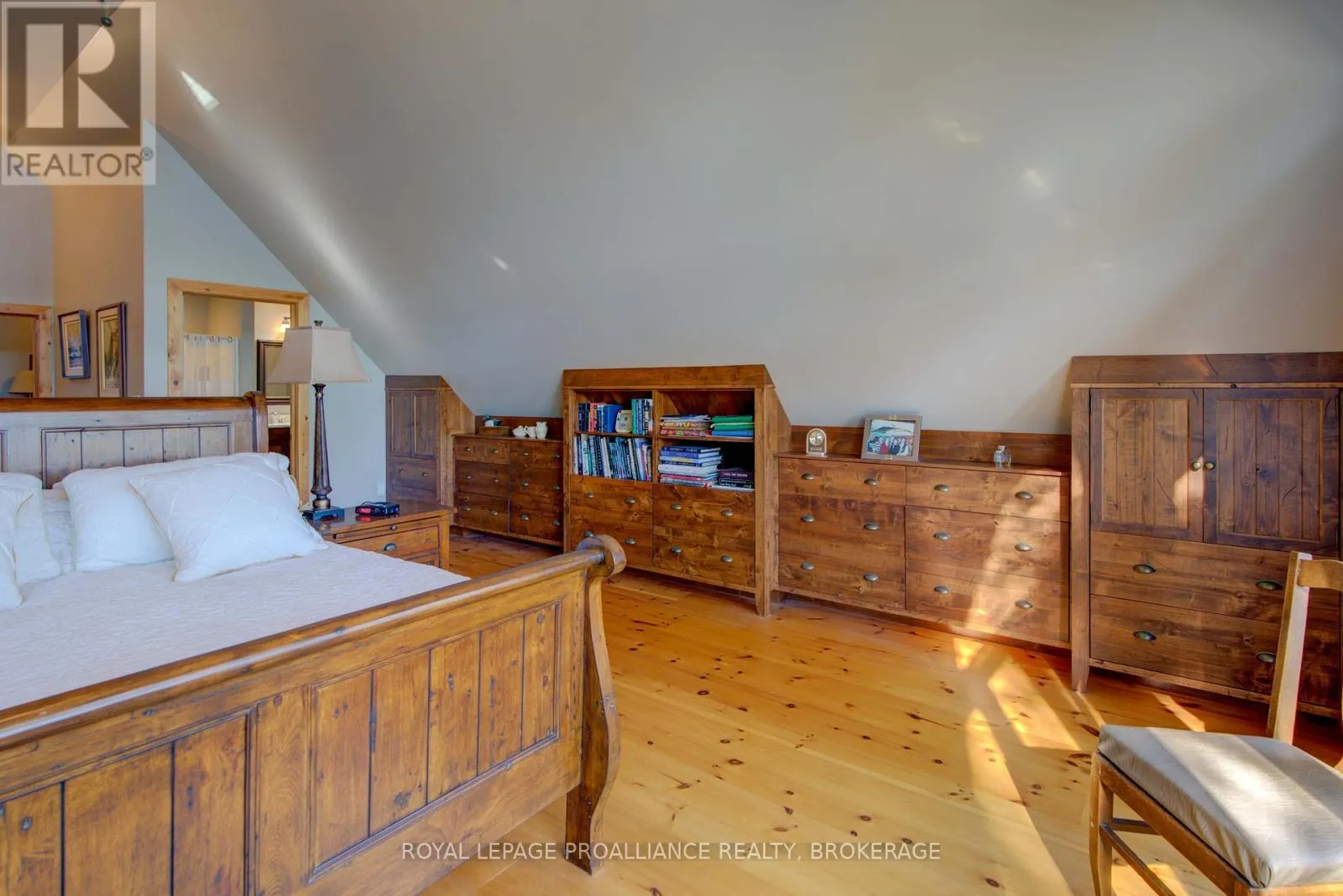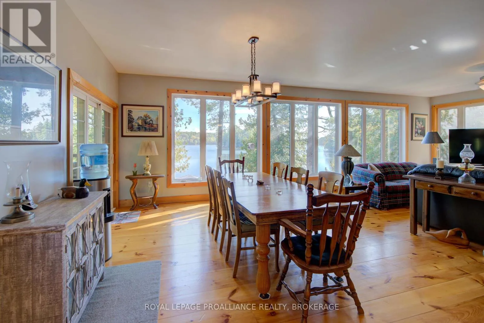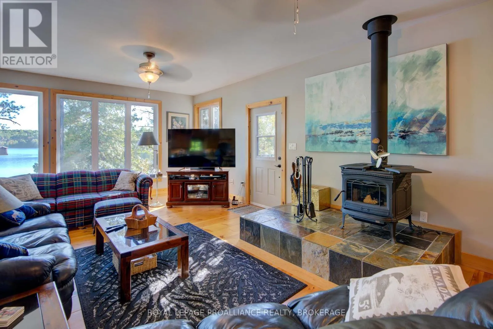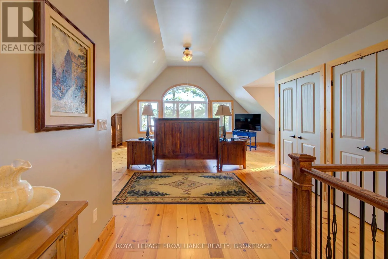 Cross Streets: Perth Road / MacComish Lane. ** Directions: Perth Road South of Westport to MacComish Lane,follow to end at #441 B. Waterfront oasis on Buck Lake! This beautiful property features 2+ acres of land and200 ft of shoreline. This gorgeous home sits close to the lake with level access to shallow water and deep water off the dock. Enjoy the large dock, covered boat slip and tiki bar - with southern exposure for sunrises and sunsets. The view is stunning looking out over the bay and the location is private & peaceful. As you enter under the timber frame porch, you immediately feel a sense of relaxation in this stunning lake house. The main floor has a large, open concept Great Room with expansive windows and access out to the deck. The custom Corelle Kitchen is a showpiece with Madagascar blue granite countertops, dbl drawer dishwasher, under-counter microwave and a pot filler above the propane stove. Enjoy cozy evenings with the warmth of the Pacific Energy wood-stove. The main floor bedroom has an attached 4-pc bath that also has access from the foyer. The office next to the foyer could be another bedroom. The bathrooms and foyer have heated slate floors while the balance of the home has wide-plank pine flooring - from trees on the property! The second level features a large bedroom at the rear, laundry area and an amazing primary bedroom with cathedral ceilings, custom cabinets, a 3-piece ensuite bath and gorgeous views over the pristine waters of the lake. The partial basement has concrete floor & spray foam walls and the home is heated by propane forced air, has 200-amp service, a lake water system with UV light, Hide-A-Hose central vacuum, HRV, electric hot water, A/C and an on-demand backup generator system. A catwalk leads from the house to extra living space above the 2-car detached garage. This space has a large family room, dining area, kitchenette along with a bedroom and a 2-piece bath. The exterior of the home and garage have vertical Timberthane wood siding with a lifetime guarantee. Stunning home located just south of Westport or 40minutes north of Kingston. (id:27476)