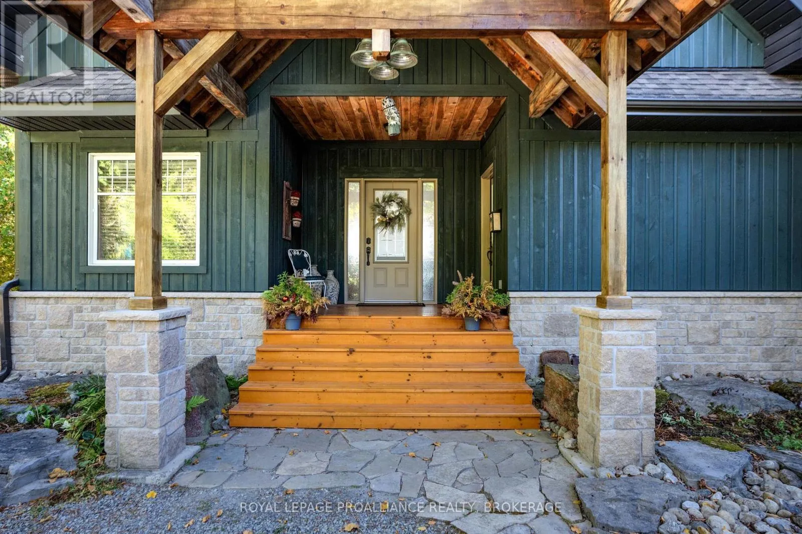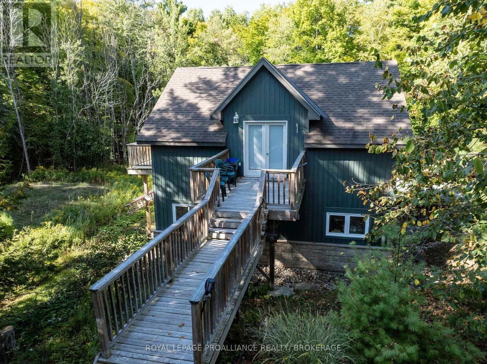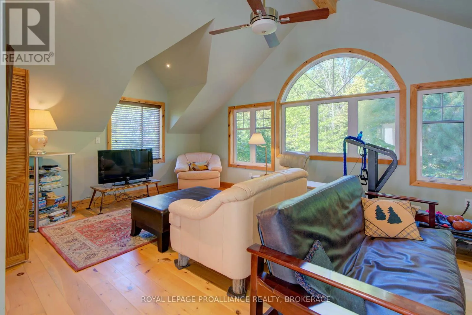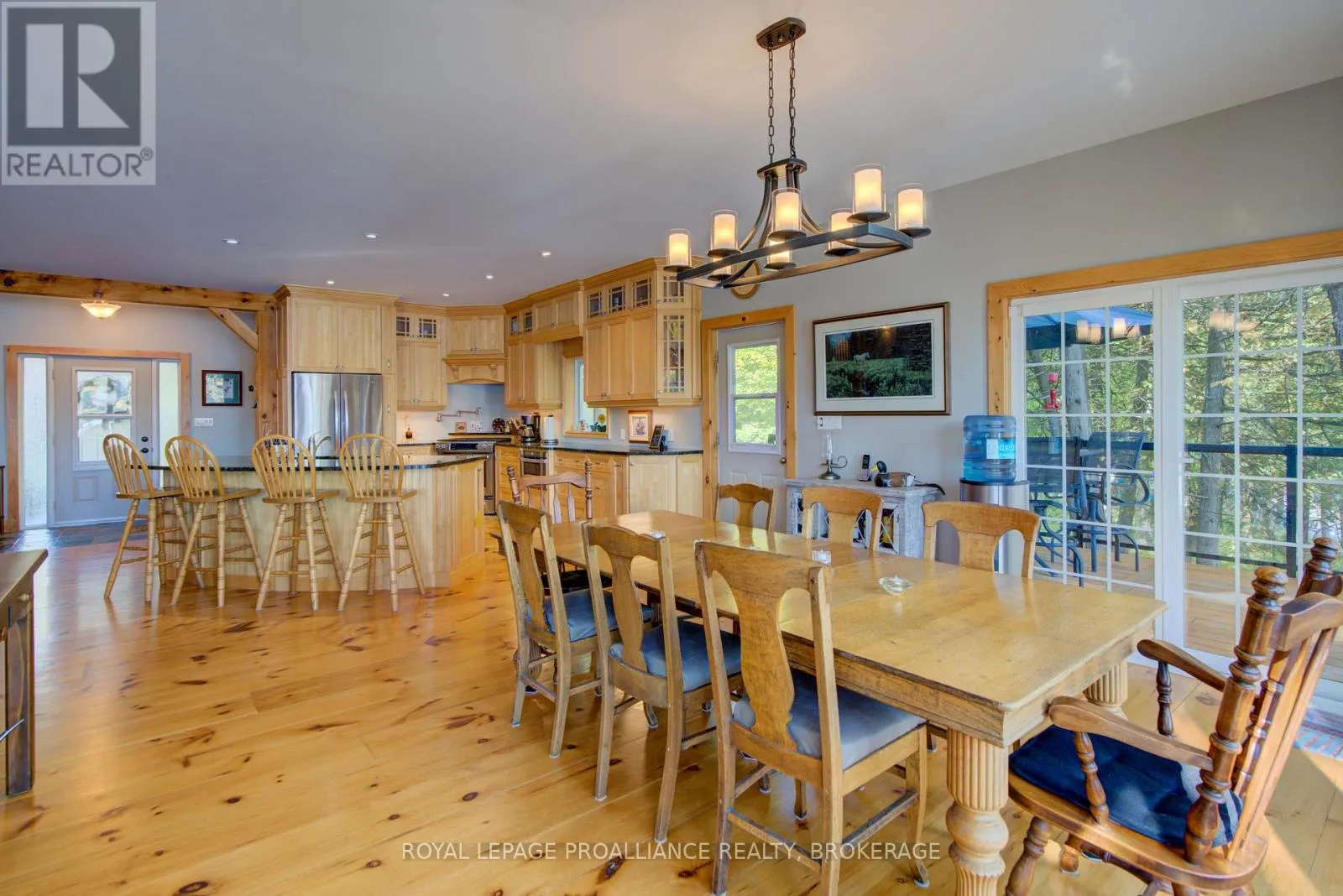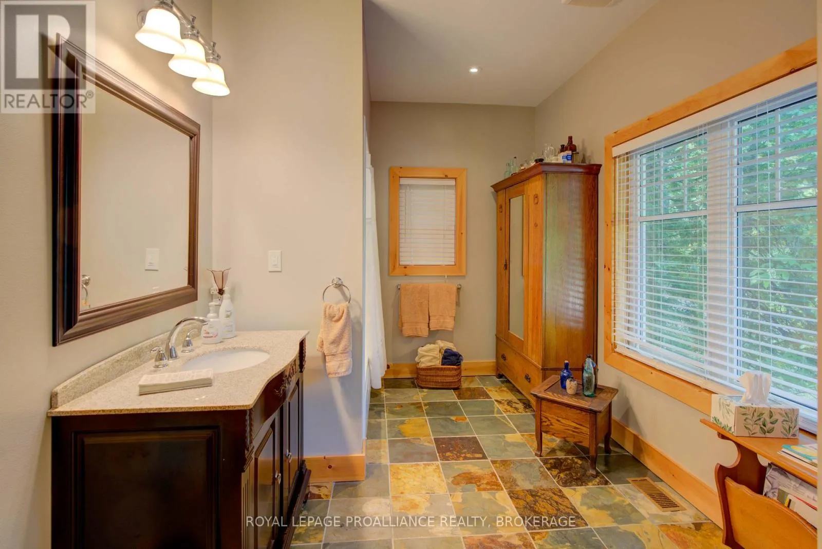 Cross Streets: Perth Road / MacComish Lane. ** Directions: Perth Road South of Westport to MacComish Lane,follow to end at #441 B. Waterfront oasis on Buck Lake! This beautiful property features 2+ acres of land and200 ft of shoreline. This gorgeous home sits close to the lake with level access to shallow water and deep water off the dock. Enjoy the large dock, covered boat slip and tiki bar - with southern exposure for sunrises and sunsets. The view is stunning looking out over the bay and the location is private & peaceful. As you enter under the timber frame porch, you immediately feel a sense of relaxation in this stunning lake house. The main floor has a large, open concept Great Room with expansive windows and access out to the deck. The custom Corelle Kitchen is a showpiece with Madagascar blue granite countertops, dbl drawer dishwasher, under-counter microwave and a pot filler above the propane stove. Enjoy cozy evenings with the warmth of the Pacific Energy wood-stove. The main floor bedroom has an attached 4-pc bath that also has access from the foyer. The office next to the foyer could be another bedroom. The bathrooms and foyer have heated slate floors while the balance of the home has wide-plank pine flooring - from trees on the property! The second level features a large bedroom at the rear, laundry area and an amazing primary bedroom with cathedral ceilings, custom cabinets, a 3-piece ensuite bath and gorgeous views over the pristine waters of the lake. The partial basement has concrete floor & spray foam walls and the home is heated by propane forced air, has 200-amp service, a lake water system with UV light, Hide-A-Hose central vacuum, HRV, electric hot water, A/C and an on-demand backup generator system. A catwalk leads from the house to extra living space above the 2-car detached garage. This space has a large family room, dining area, kitchenette along with a bedroom and a 2-piece bath. The exterior of the home and garage have vertical Timberthane wood siding with a lifetime guarantee. Stunning home located just south of Westport or 40minutes north of Kingston. (id:27476)