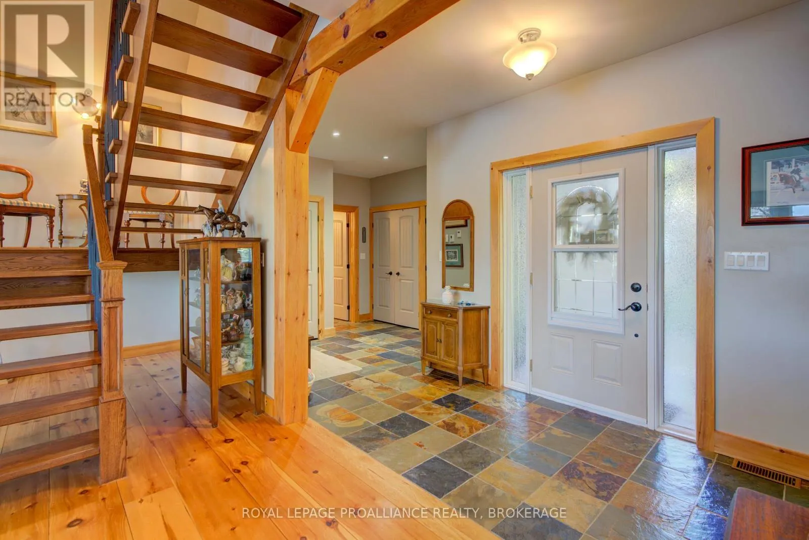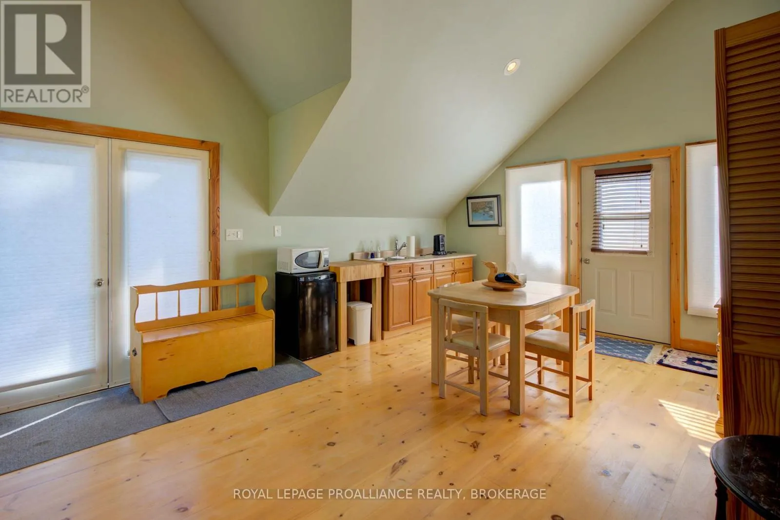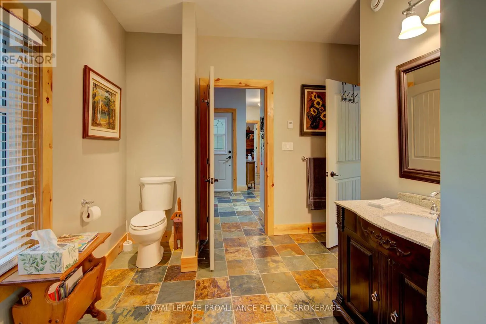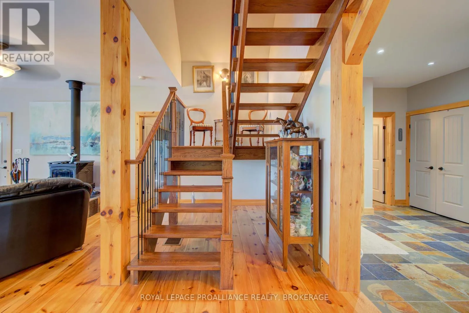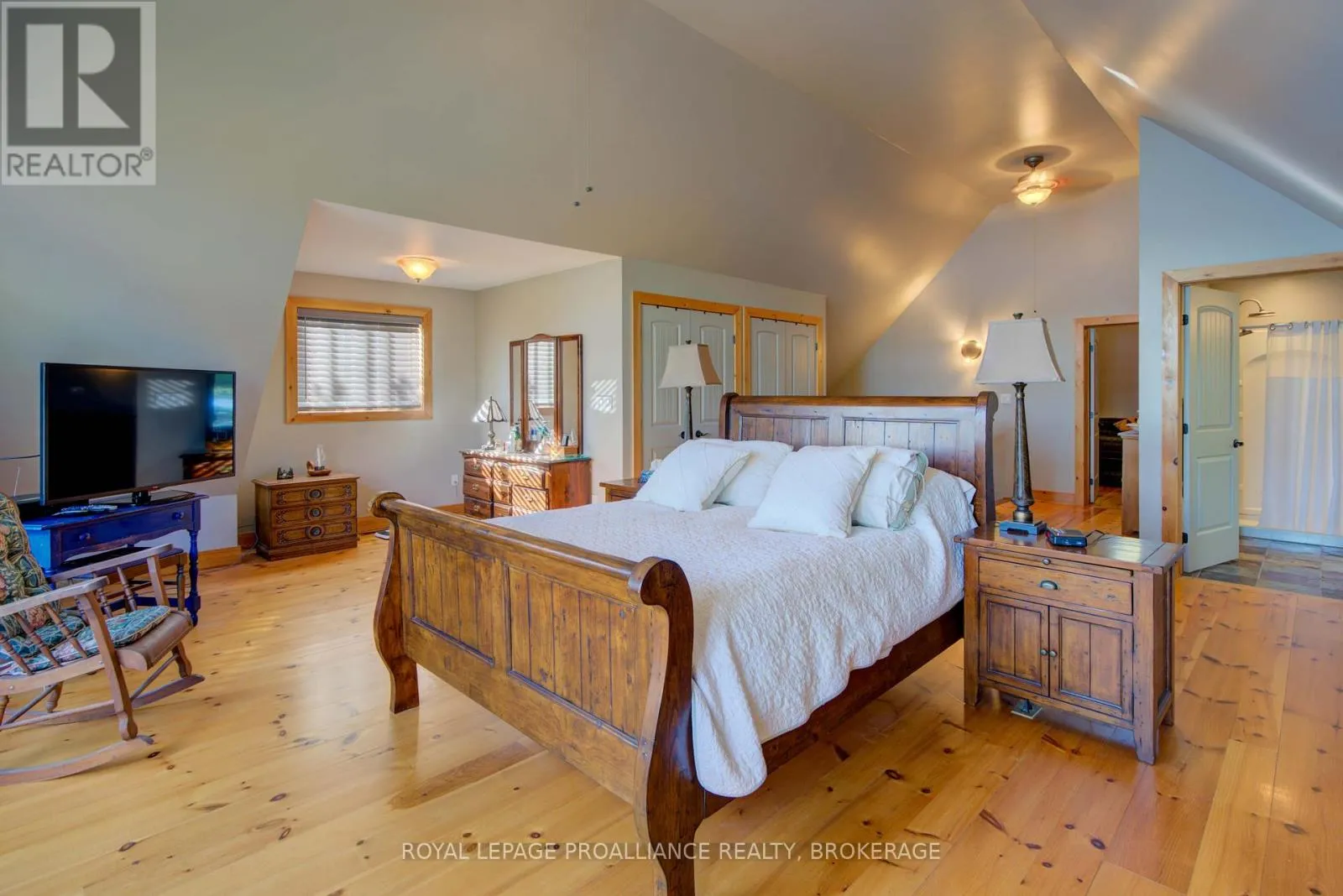 Cross Streets: Perth Road / MacComish Lane. ** Directions: Perth Road South of Westport to MacComish Lane,follow to end at #441 B. Waterfront oasis on Buck Lake! This beautiful property features 2+ acres of land and200 ft of shoreline. This gorgeous home sits close to the lake with level access to shallow water and deep water off the dock. Enjoy the large dock, covered boat slip and tiki bar - with southern exposure for sunrises and sunsets. The view is stunning looking out over the bay and the location is private & peaceful. As you enter under the timber frame porch, you immediately feel a sense of relaxation in this stunning lake house. The main floor has a large, open concept Great Room with expansive windows and access out to the deck. The custom Corelle Kitchen is a showpiece with Madagascar blue granite countertops, dbl drawer dishwasher, under-counter microwave and a pot filler above the propane stove. Enjoy cozy evenings with the warmth of the Pacific Energy wood-stove. The main floor bedroom has an attached 4-pc bath that also has access from the foyer. The office next to the foyer could be another bedroom. The bathrooms and foyer have heated slate floors while the balance of the home has wide-plank pine flooring - from trees on the property! The second level features a large bedroom at the rear, laundry area and an amazing primary bedroom with cathedral ceilings, custom cabinets, a 3-piece ensuite bath and gorgeous views over the pristine waters of the lake. The partial basement has concrete floor & spray foam walls and the home is heated by propane forced air, has 200-amp service, a lake water system with UV light, Hide-A-Hose central vacuum, HRV, electric hot water, A/C and an on-demand backup generator system. A catwalk leads from the house to extra living space above the 2-car detached garage. This space has a large family room, dining area, kitchenette along with a bedroom and a 2-piece bath. The exterior of the home and garage have vertical Timberthane wood siding with a lifetime guarantee. Stunning home located just south of Westport or 40minutes north of Kingston. (id:27476)