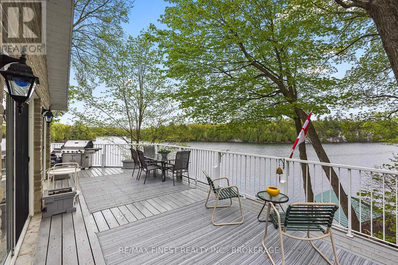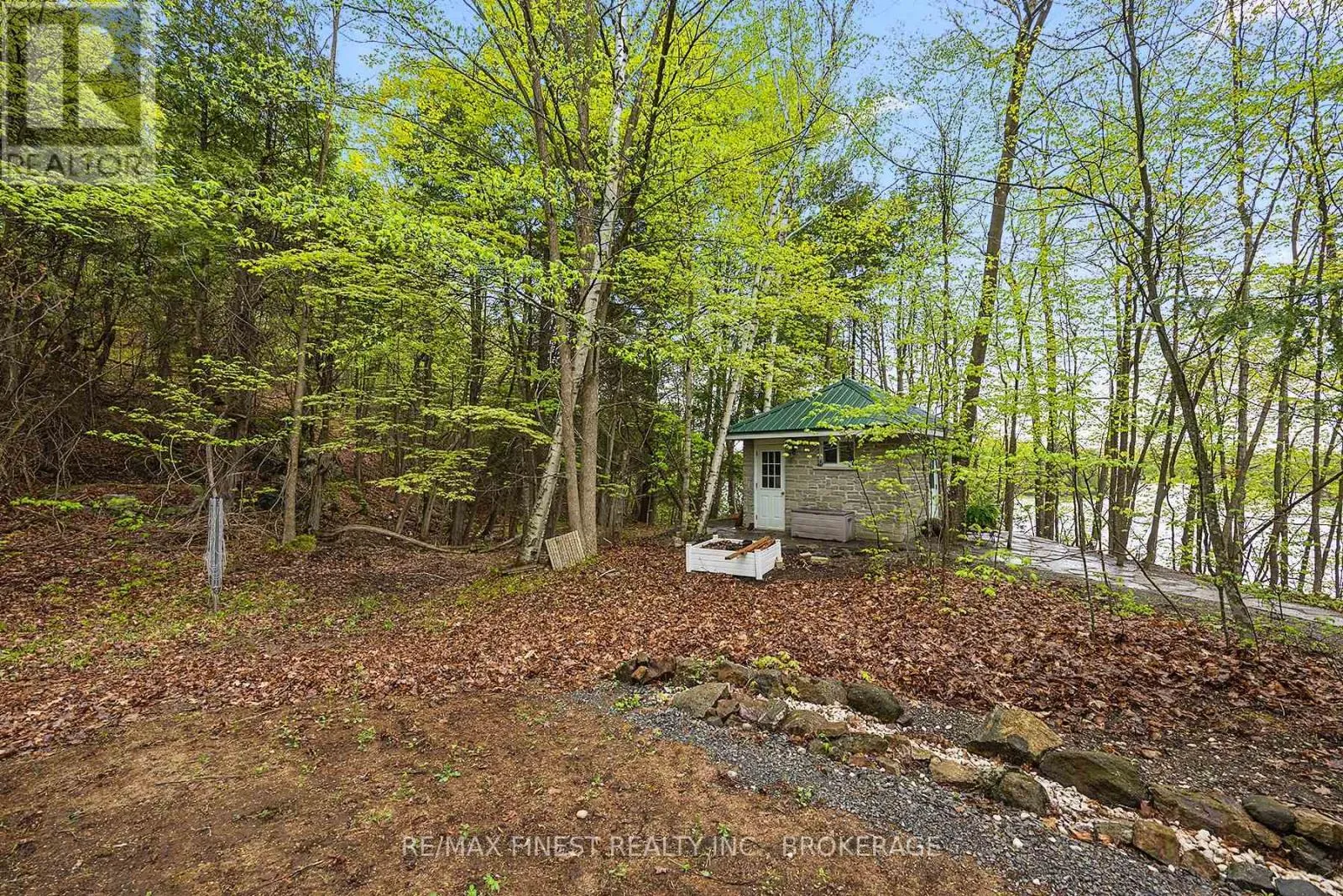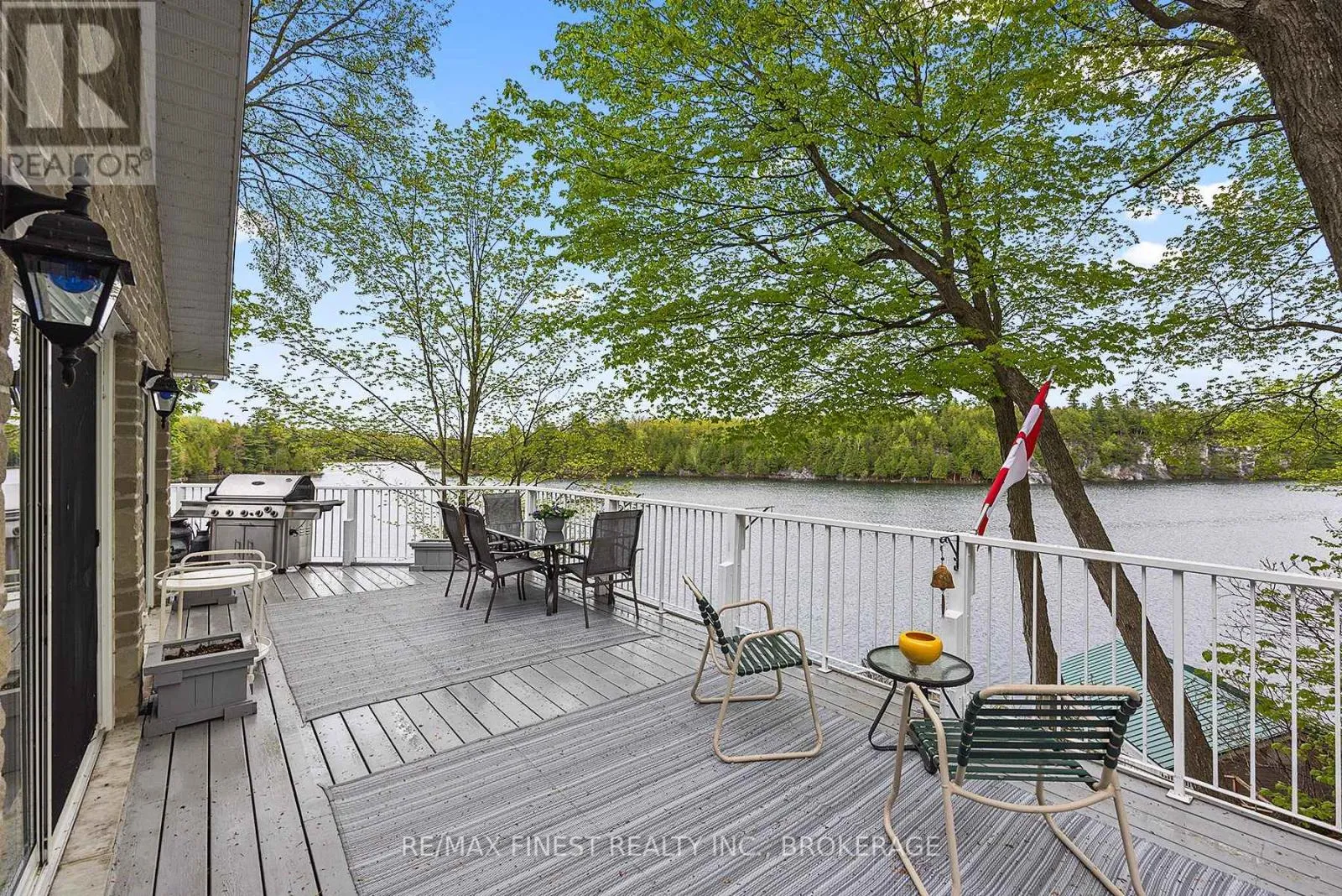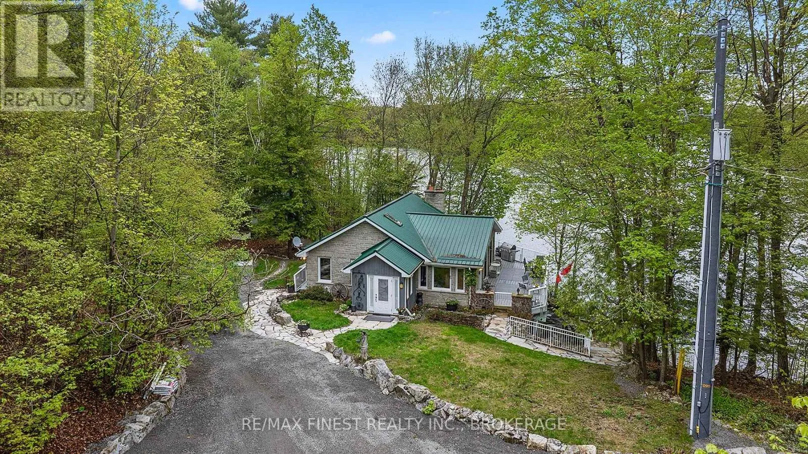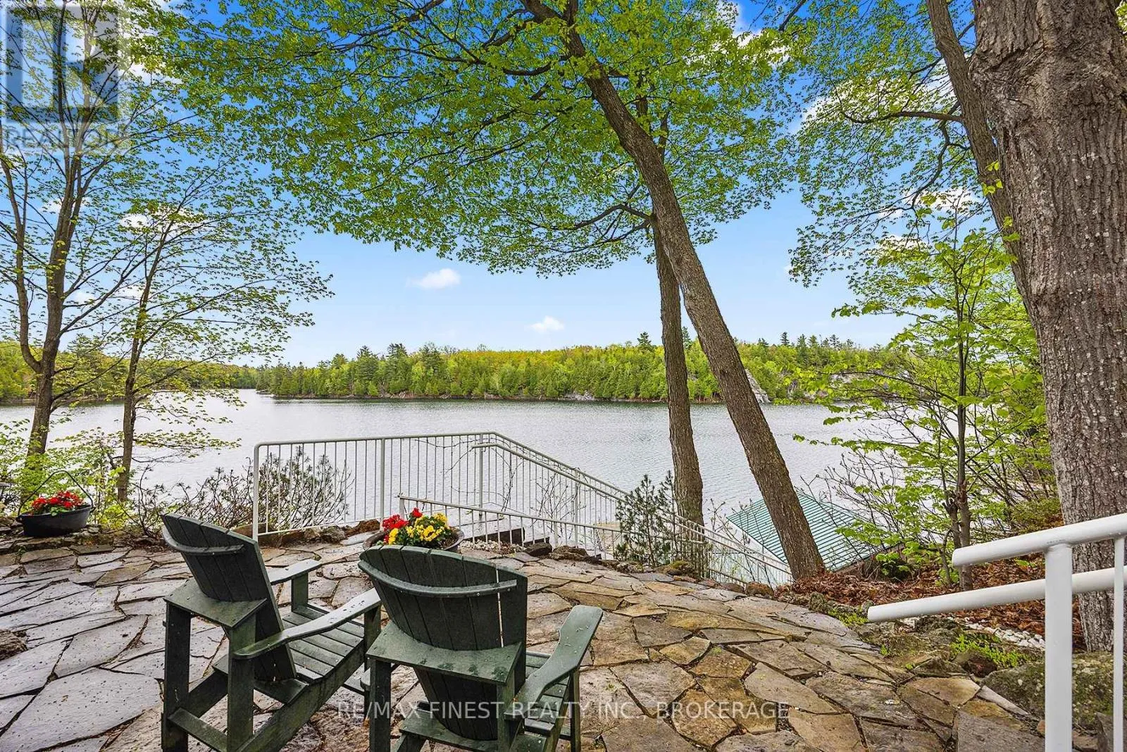 Cross Streets: Perth Road. ** Directions: Perth Road, just North of Boat Launch. Just a short drive from downtown Kingston and a quick jaunt into Westport, nestled among more than 20 varieties of mature trees, on spring fed Buck Lake and in the Canadian Shield, this prestigious stone, raised bungalow is waiting for you to call home. The main floor boasts floor to ceiling windows and patio doors to the wrap around deck and clear, 180 degree view of Crown land including exclusive direct sight of the famous local landmark, Pulpit Island with the iconic "Devil's Pulpit". The lower level, which is a walk-out, has two additional bedrooms (that could be 3), a 4-piece bathroom, laundry closet, cozy rec room with propane fireplace and like upstairs, floor to ceiling windows and patio doors so that you never lost the view. You walk out into a three season space under the deck, here you'll spend many nights playing cards/games. Just a few steps from the main house is a beautiful 4 season guest house, complete with a single/double bunk bed, toilet, sink and outdoor shower. Take the stone steps down to the crystal clear and deep shoreline, pop open the cabana and host the best dock party around! There is plenty of room on the dock for all sorts of activities and the original solid boat house is ready, waiting to house your watercraft of choice. The period style of the building's living space (2,078 sq ft) is enhanced by artful, expansive and expensive landscaping of local stone and materials; patios, pathways, limestone steps, iron railings, border rock fences, 2 large rough cut board and batten pine sheds, with steel roofs to match the main house! Upgraded Septic system, Brand new Kohler-Generator, and Bunkhouse Cabin. This is a home that needs to be seen and experienced in person! (id:27476)