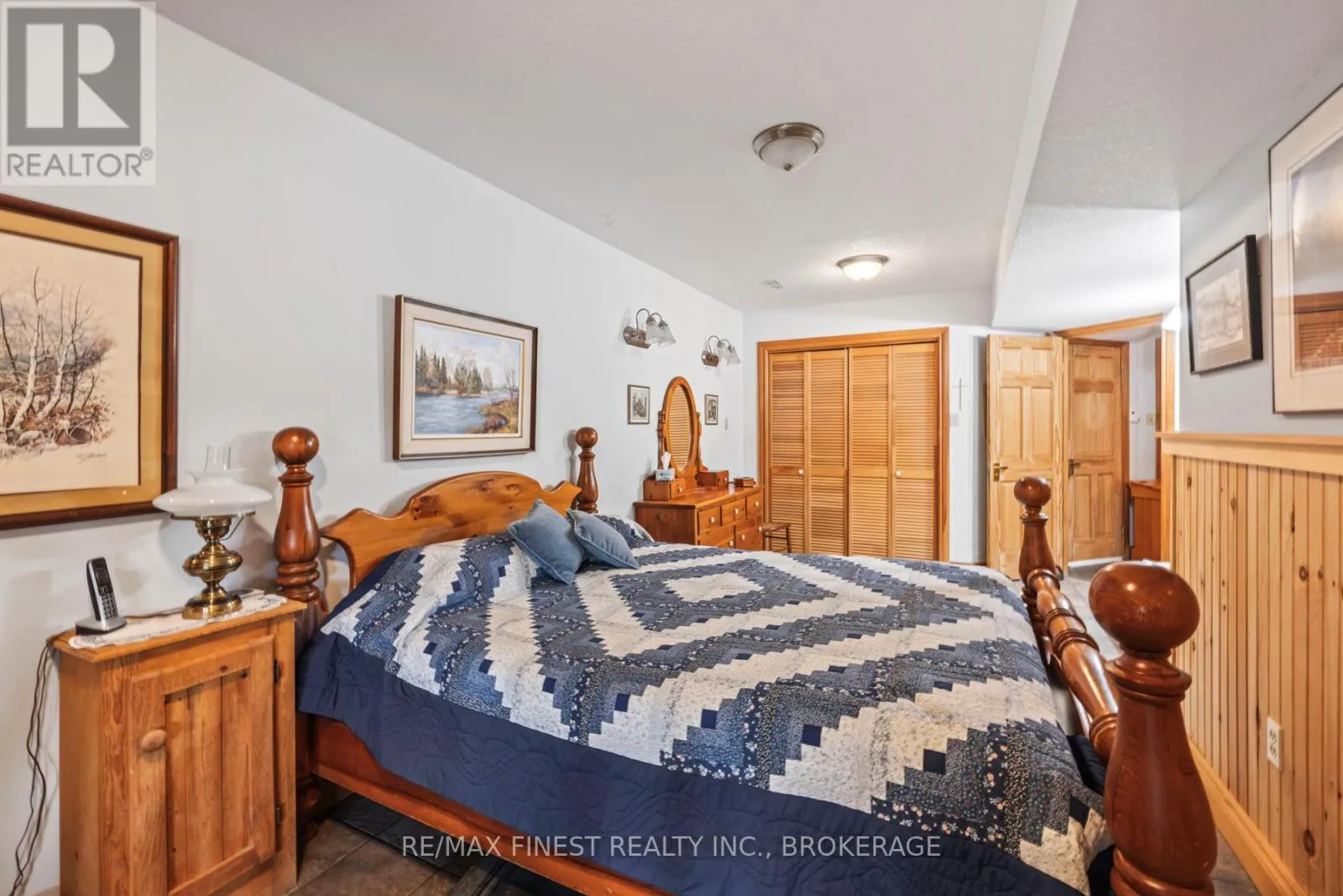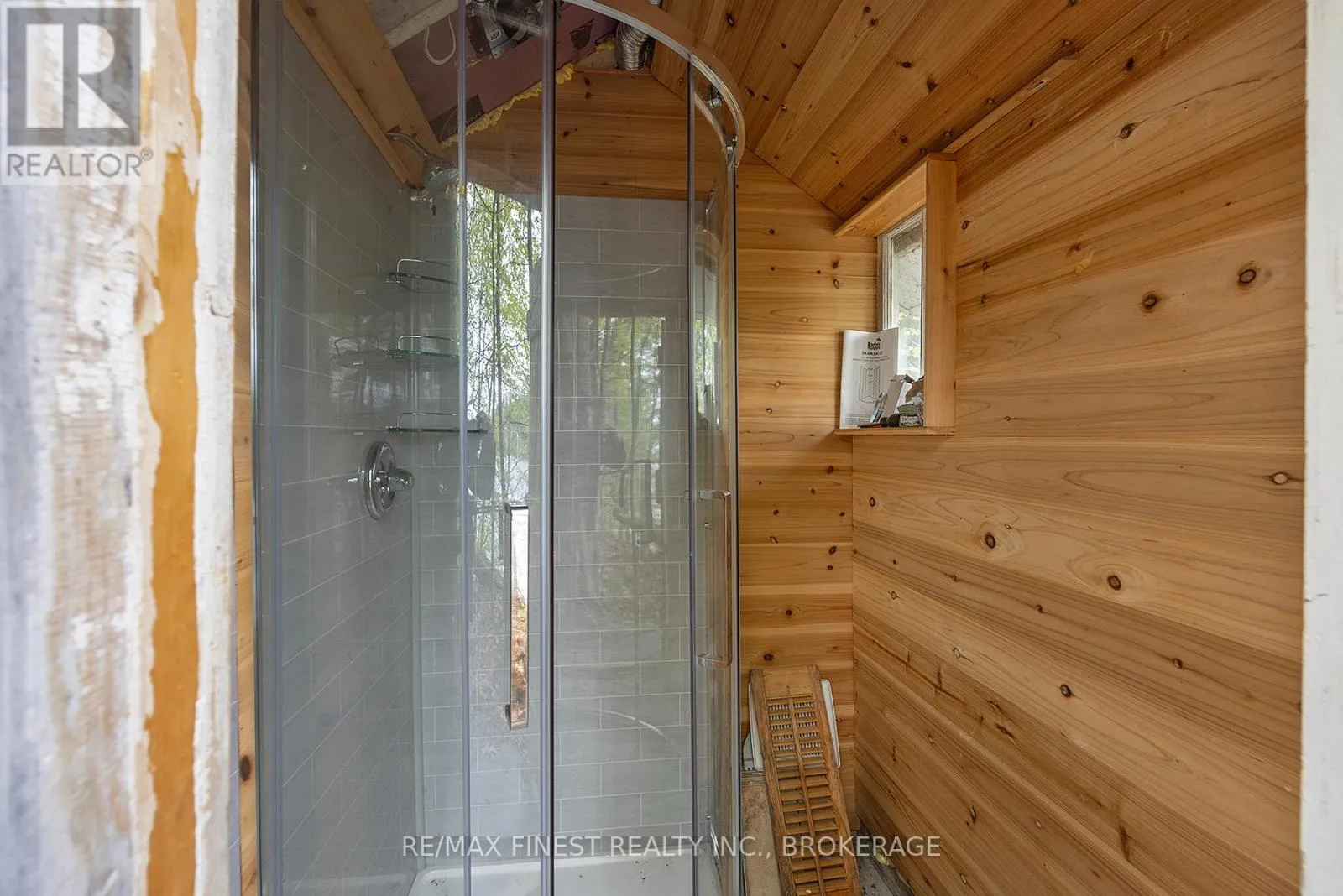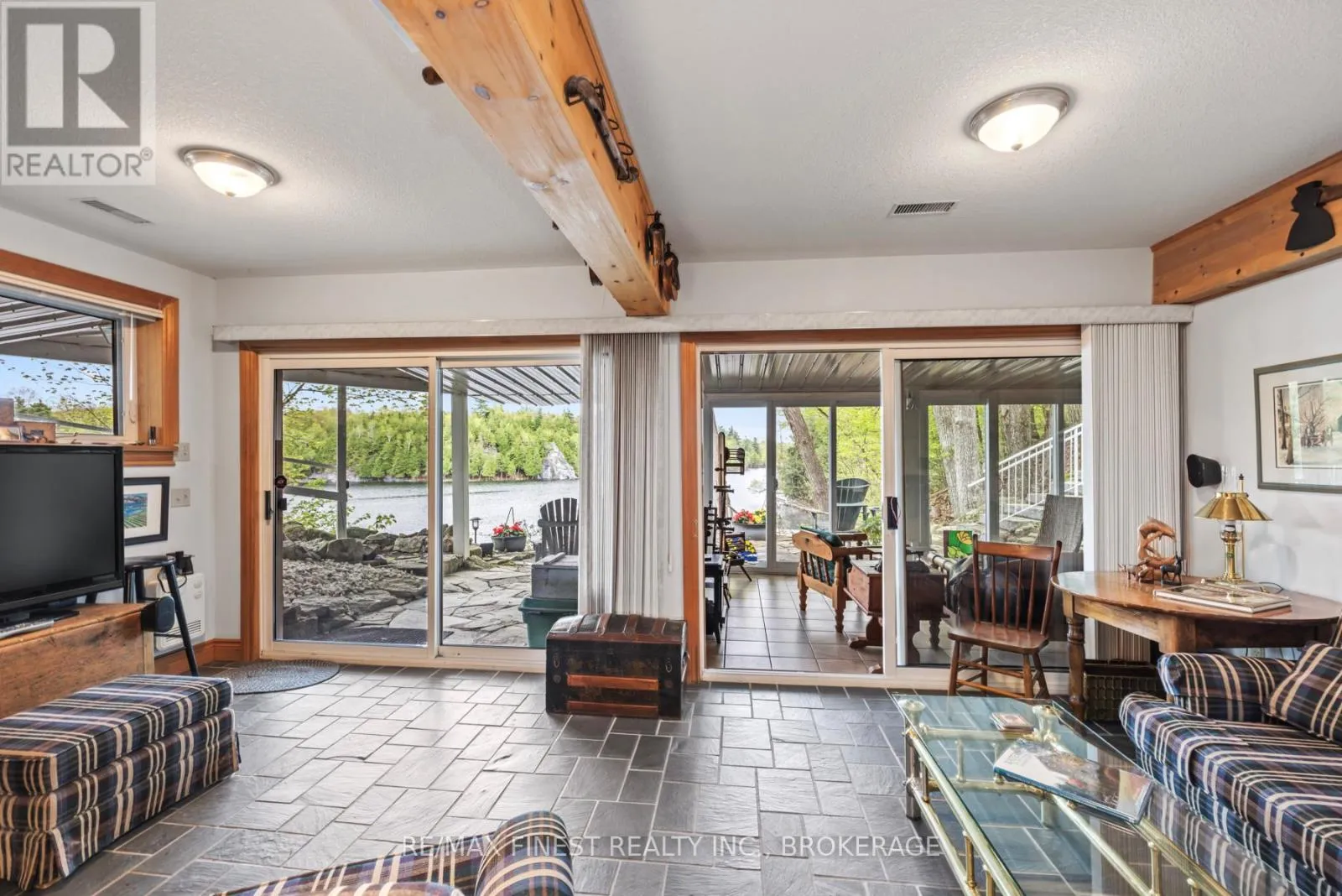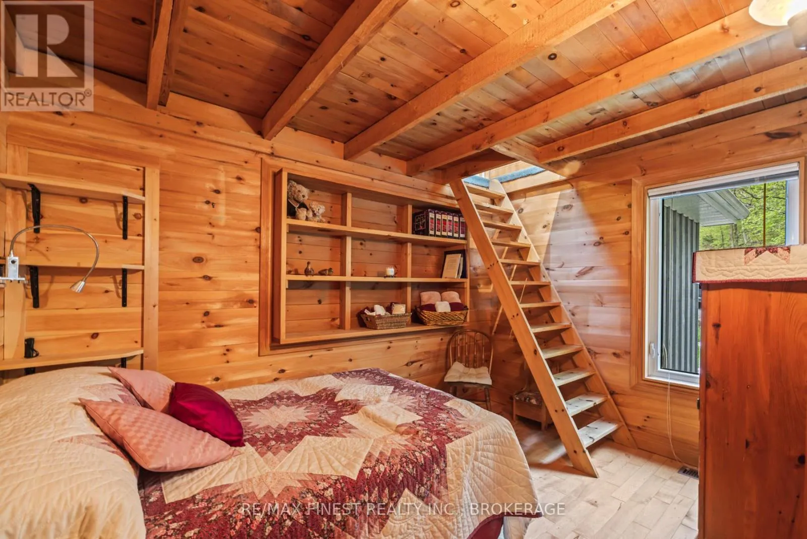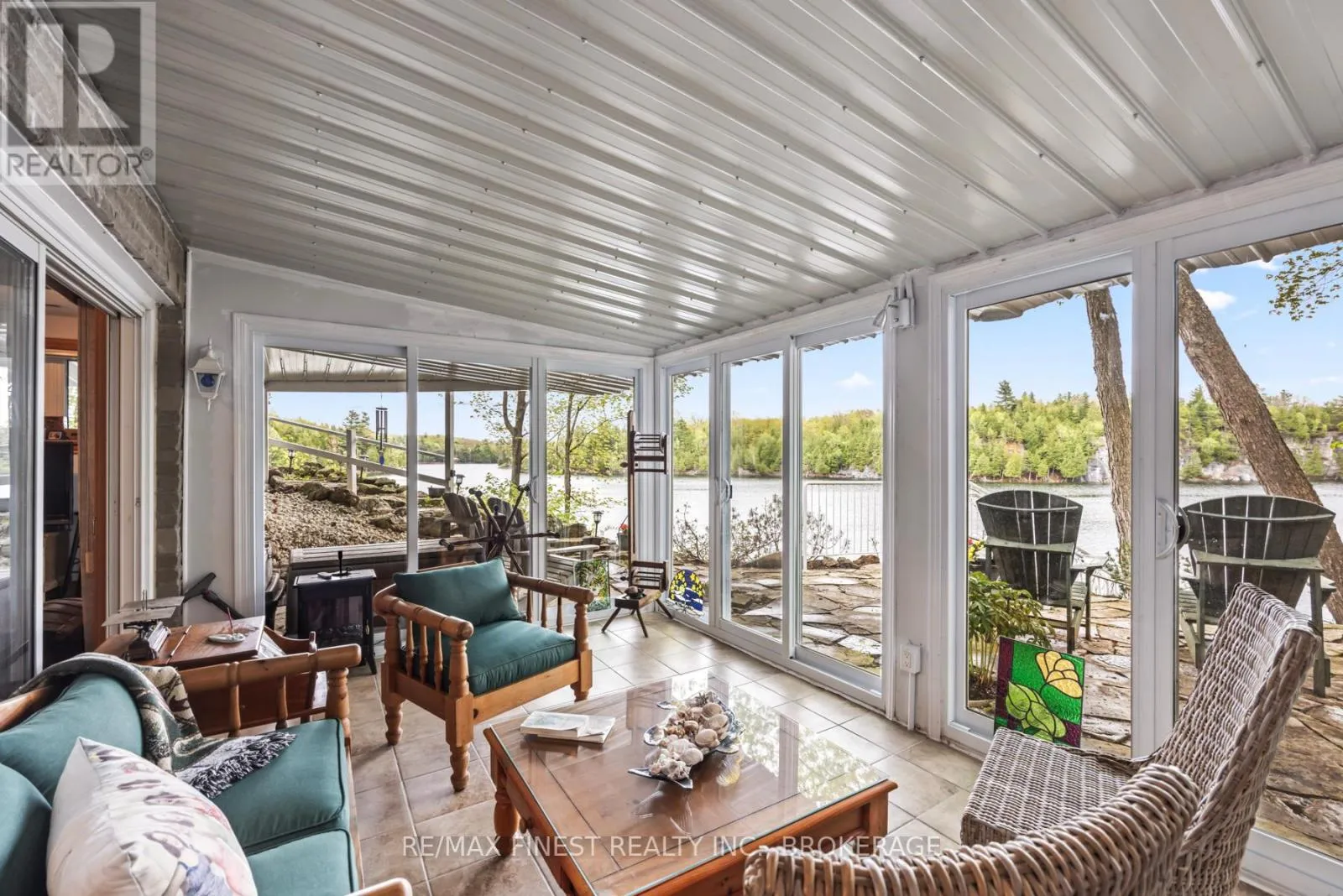 Cross Streets: Perth Road. ** Directions: Perth Road, just North of Boat Launch. Just a short drive from downtown Kingston and a quick jaunt into Westport, nestled among more than 20 varieties of mature trees, on spring fed Buck Lake and in the Canadian Shield, this prestigious stone, raised bungalow is waiting for you to call home. The main floor boasts floor to ceiling windows and patio doors to the wrap around deck and clear, 180 degree view of Crown land including exclusive direct sight of the famous local landmark, Pulpit Island with the iconic "Devil's Pulpit". The lower level, which is a walk-out, has two additional bedrooms (that could be 3), a 4-piece bathroom, laundry closet, cozy rec room with propane fireplace and like upstairs, floor to ceiling windows and patio doors so that you never lost the view. You walk out into a three season space under the deck, here you'll spend many nights playing cards/games. Just a few steps from the main house is a beautiful 4 season guest house, complete with a single/double bunk bed, toilet, sink and outdoor shower. Take the stone steps down to the crystal clear and deep shoreline, pop open the cabana and host the best dock party around! There is plenty of room on the dock for all sorts of activities and the original solid boat house is ready, waiting to house your watercraft of choice. The period style of the building's living space (2,078 sq ft) is enhanced by artful, expansive and expensive landscaping of local stone and materials; patios, pathways, limestone steps, iron railings, border rock fences, 2 large rough cut board and batten pine sheds, with steel roofs to match the main house! Upgraded Septic system, Brand new Kohler-Generator, and Bunkhouse Cabin. This is a home that needs to be seen and experienced in person! (id:27476)