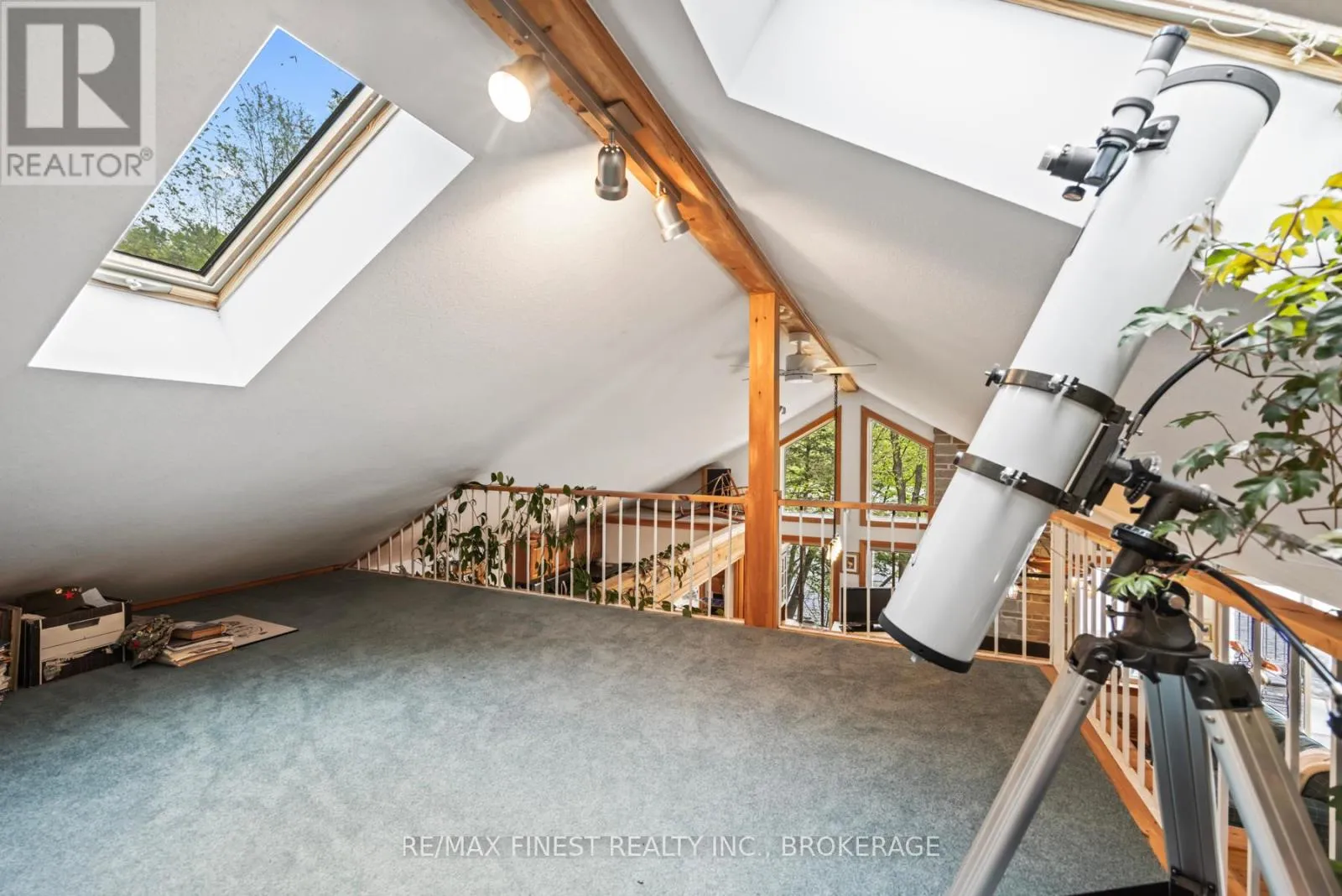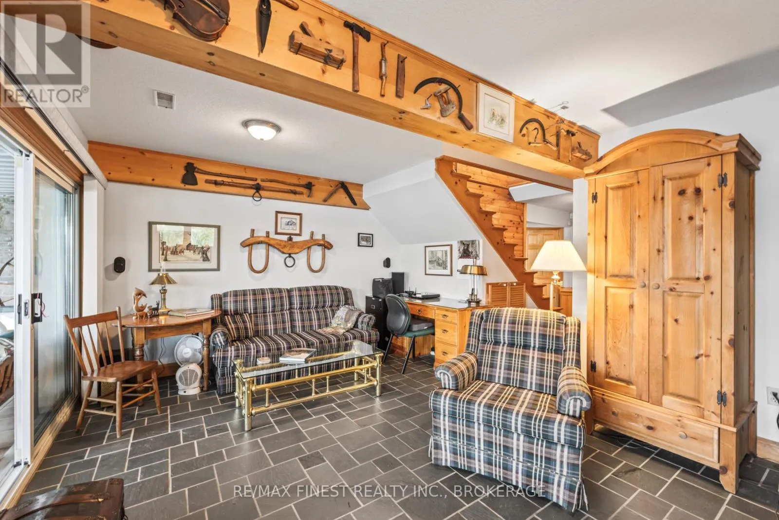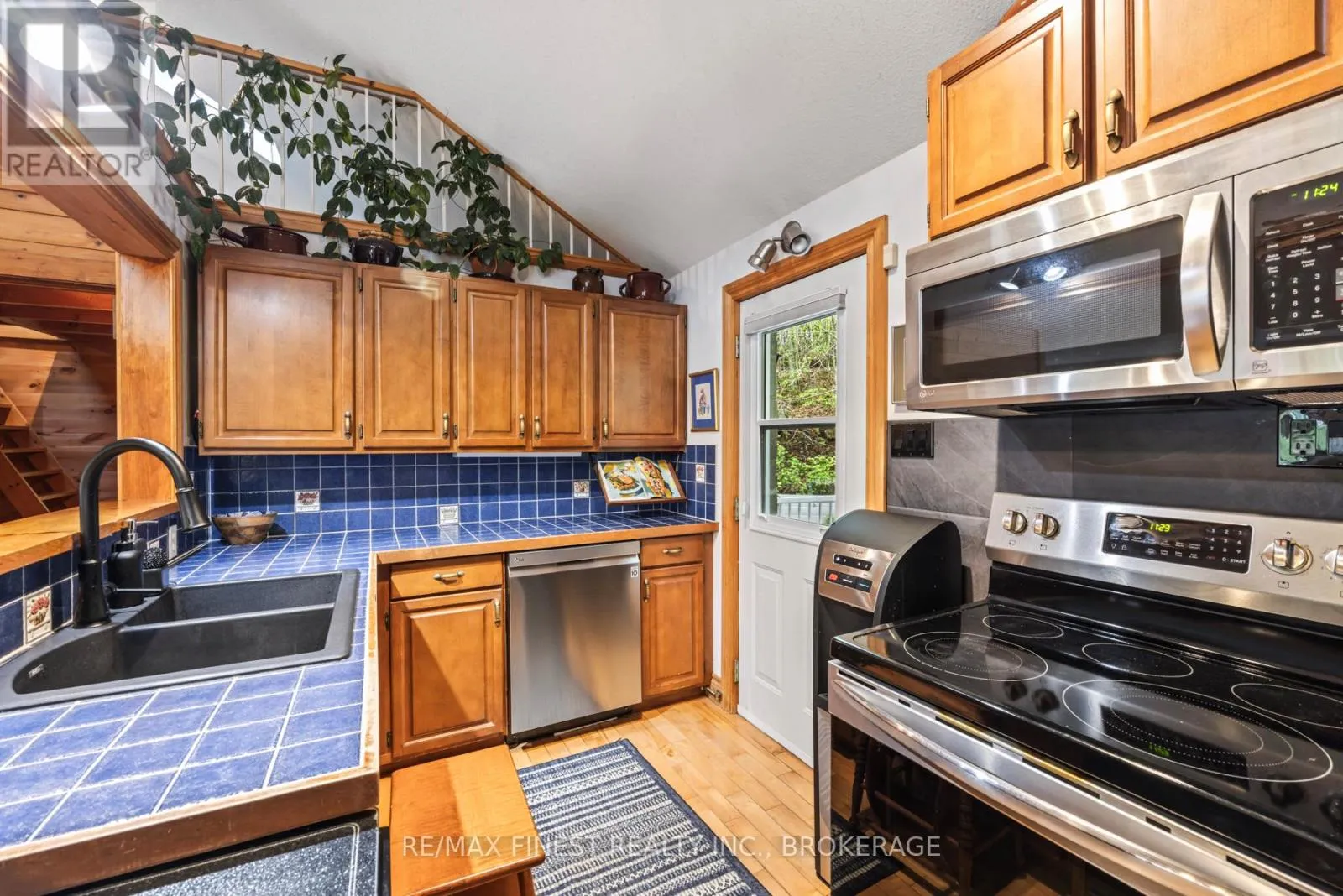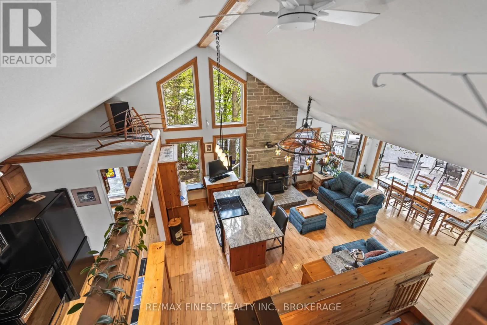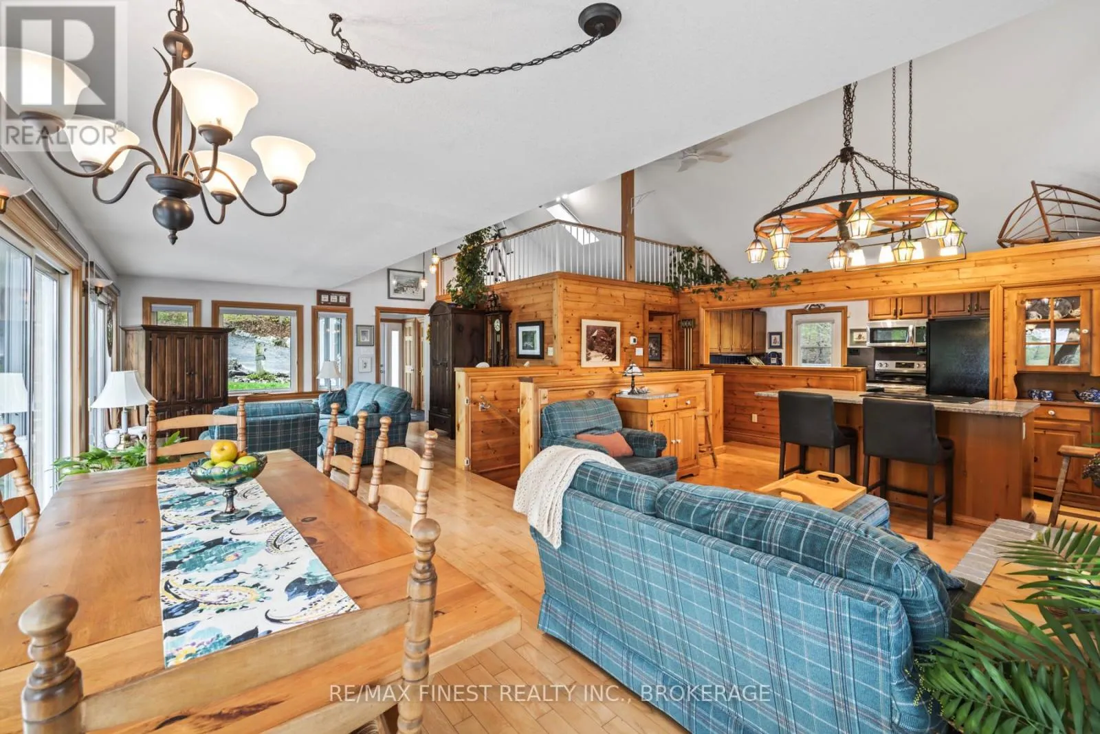 Cross Streets: Perth Road. ** Directions: Perth Road, just North of Boat Launch. Just a short drive from downtown Kingston and a quick jaunt into Westport, nestled among more than 20 varieties of mature trees, on spring fed Buck Lake and in the Canadian Shield, this prestigious stone, raised bungalow is waiting for you to call home. The main floor boasts floor to ceiling windows and patio doors to the wrap around deck and clear, 180 degree view of Crown land including exclusive direct sight of the famous local landmark, Pulpit Island with the iconic "Devil's Pulpit". The lower level, which is a walk-out, has two additional bedrooms (that could be 3), a 4-piece bathroom, laundry closet, cozy rec room with propane fireplace and like upstairs, floor to ceiling windows and patio doors so that you never lost the view. You walk out into a three season space under the deck, here you'll spend many nights playing cards/games. Just a few steps from the main house is a beautiful 4 season guest house, complete with a single/double bunk bed, toilet, sink and outdoor shower. Take the stone steps down to the crystal clear and deep shoreline, pop open the cabana and host the best dock party around! There is plenty of room on the dock for all sorts of activities and the original solid boat house is ready, waiting to house your watercraft of choice. The period style of the building's living space (2,078 sq ft) is enhanced by artful, expansive and expensive landscaping of local stone and materials; patios, pathways, limestone steps, iron railings, border rock fences, 2 large rough cut board and batten pine sheds, with steel roofs to match the main house! Upgraded Septic system, Brand new Kohler-Generator, and Bunkhouse Cabin. This is a home that needs to be seen and experienced in person! (id:27476)