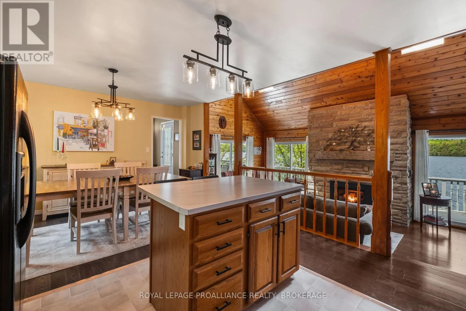 Cross Streets: CEDAR RIDGES ROAD & LARK LANE. ** Directions: HOLMES ROAD TO CEDAR RIDGES ROAD TO LARK LANE. Welcome to 1020 Lark Lane-an exceptional waterfront retreat on the serene shores of highly sought after Loughborough Lake, perfect for year-round living or a seasonal escape. Offering stunning lake & sunset views, this home has been lovingly cared for & updated over the years. Features include an open-concept main floor with oak hardwood flooring (2021), a modern kitchen fully equipped with built-in appliances, as well as new countertops, backsplash, & flooring done in 2024, & a spacious living area adorned in wood finishings & warmed by a cozy, attractive & newly installed gas fireplace (2025). Natural light floods this space through skylights atop of the soaring ceiling & new patio doors (2021), while the large deck-80% rebuilt in 2022-is the perfect place to unwind & soak in the sun whilst overlooking the water. Upstairs, the primary bedroom boasts a renovated 4pc ensuite & attached walk-in closet. You'll also find 2 more generously sized bedrooms. With multiple upgrades such as electrical (2024), windows (2024), roof (2023), a newer gas furnace (2018), potential for an added detached garage on the adjacent land (subject to planning approvals), & close city proximity on arguably one of the best lakes in the area, you do not want to miss the opportunity to make this lakeside gem yours. (id:27476)