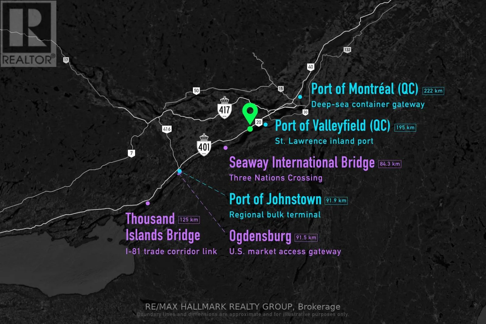 Cross Streets: 153rd Ave. ** Directions: Head southwest on ON-401 W. Take exit 825 for County Rd 23/4th Line Road. Turn right onto 4th Line Rd/Curry Hill Rd/County Rd 23. Turn left onto Old Hwy 2/Stormont, Dundas and Glengarry County Road 2. Strategically positioned with highway frontage and exceptional accessibility, this fully secured and fenced 7.8-acre commercial highway site is a rare opportunity for logistics, warehousing, and industrial users seeking versatile space with premium visibility. The property features two industrial buildings totaling over 8,000 sq. ft., offering high-clearance warehousing, functional office space, and a showroom. Key highlights include multiple drive-in doors, clear heights up to 14'5", a mix of open warehouse and private office configurations, and ample yard space for outdoor storage and fleet operations. With enhanced security, prime exposure, and seamless access to a high-demand corridor, this property is well-suited for a range of users looking to scale efficiently. All construction materials currently on site will be removed by the seller prior to closing. Brochure link can be found under Property Summary. (id:27476)