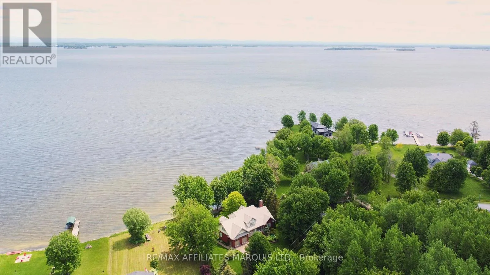 Cross Streets: County Road 2 and Old Montreal Road. ** Directions: Take exit 814 Lancaster from 401 and go South towards the lake, once past the Dairy Queen veer to your left onto Carinview Drive to stop sign....turn left onto Old Montreal Road and continue past water filtration; plant house will be on your right. Executive Waterfront Retreat on Lake St. Francis Private Beach, Dock & Breathtaking Views! Welcome to this spectacular waterfront estate in the heart of South Lancaster, offering over 4,000 sq ft of refined living space and a rare combination of luxury, comfort, and natural beauty. Set on the tranquil shores of Lake St. Francis, this property features a private sandy beach, pile-driven dock, and professionally landscaped grounds, perfect for lakeside living year-round. The main floor showcases a seamless blend of hardwood and terra cotta flooring, soaring ceilings, elegant crown moulding, and walls of windows that flood the home with natural light and frame the breathtaking lake views. Enjoy multiple entertaining spaces including a formal living and dining room, cozy family room, private library/den, and a spacious powder room. The eat-in kitchen is a chefs dream with granite countertops, ample cabinetry, and a large center island. Upstairs, the primary suite is a private sanctuary featuring a sitting area, walk-in closet, and a spa-inspired ensuite with soaker tub, and separate shower. Three additional large bedrooms including one with a private ensuite offer generous space for family and guests. The finished basement features daylight windows, a large games room with wet bar, 2-piece bath, walk-in cedar closet, workshop, and utility space, all designed for relaxation, hobbies, and practical living. Outside, unwind on the expansive deck, stroll through lush gardens, or step directly onto your beach for a swim or launch from your dock. A double attached garage completes this exceptional offering. Perfectly located just 20 minutes to Cornwall and 50 minutes to Montreal, this property offers an unmatched blend of convenience and retreat. Experience executive lakefront living at its finest, where every day feels like a getaway. (id:27476)