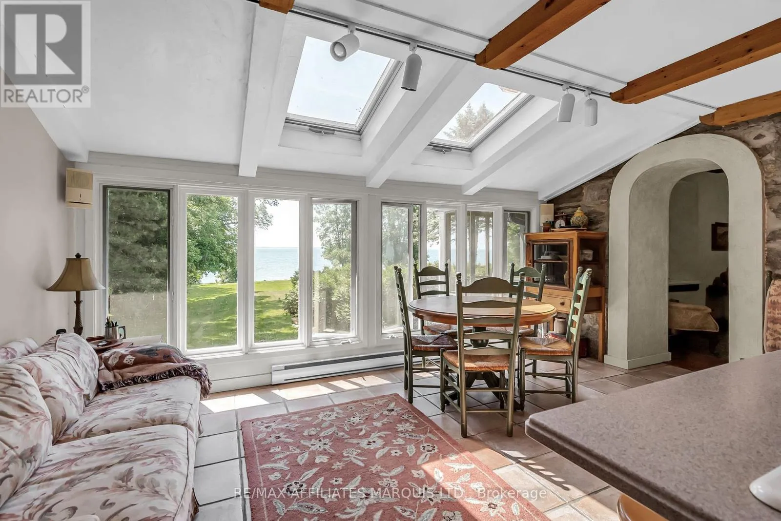 Cross Streets: 45th Ave. ** Directions: From Cornwall, take exit 825 off HWY 20 E, go South to CTY RD 2. East on South Service Road. A truly special waterfront estate on 3.17 acres with 145 feet of shoreline on Lake St. Francis. Built in 1832 and updated in 1994, this timeless stone home is rich in character and offers the perfect blend of heritage charm and everyday comfort. Set back from the road along a private laneway, the property feels like a peaceful escape, surrounded by mature trees and breathtaking lake views. Inside, the home features original details and three wood-burning fireplaces in the dining room, primary bedroom, and the walkout basement. The main level includes a cozy living room, a welcoming kitchen, and a screened-in porch where you can enjoy morning coffee while watching the sun rise over the water. Upstairs you'll find three bedrooms, including a water-facing primary suite with a fireplace, ensuite bath, and convenient upstairs laundry. The lower level offers a warm and inviting family room with another fireplace and walkout access to the yard. A separate 3-bedroom, 1-bath cottage sits on the property with its own screened-in porch, 200-amp service, and separate hydro meter perfect for extended family, guests, or potential rental income. The home is serviced by two wells and two septic systems. Additional features include a detached 2-car garage with a loft and a separate outbuilding currently used as an art studio. A small beach area, gorgeous lake views, and room to roam make this property ideal for families seeking both beauty and function in a lakeside setting. This is a rare opportunity to own a piece of history and create unforgettable memories in a one-of-a-kind setting. Just minutes from the Quebec Border.This property is just minutes away from a private airport, giving you quick access. 24 hour irrevocable on all offers. (id:27476)