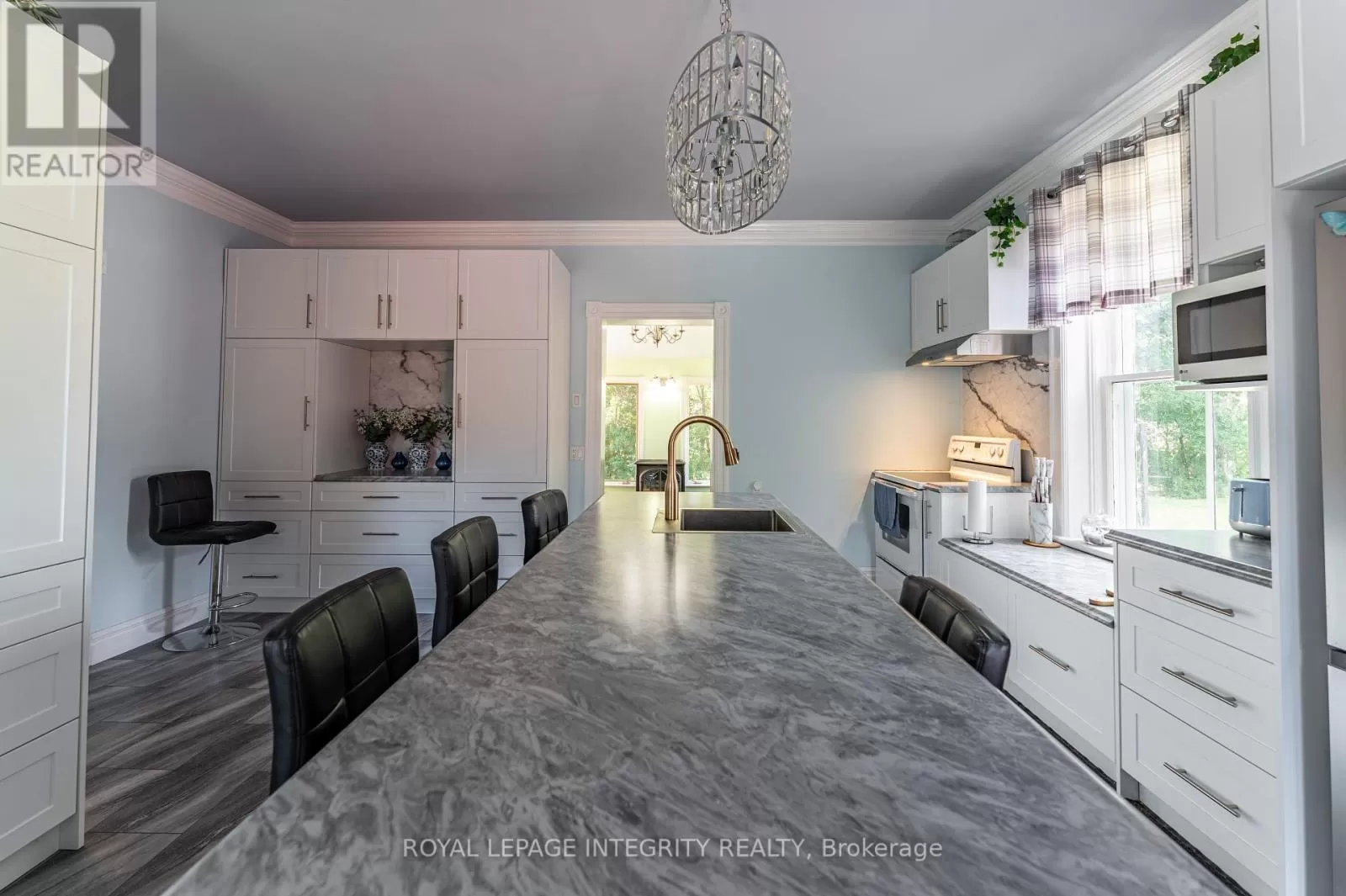 Cross Streets: County Rd 34. ** Directions: Take County Rd 34 and go East on Concession Rd 3. Step back in time with this stunning Century Home (1905) that blends historic charm with modern updates! This spacious 5-bedroom, 2-bath home, sitting on 11.11 acres, features soaring 10-ft ceilings on the main level and 9-ft ceilings upstairs, original woodwork, gleaming hardwood floors, and a grand staircase. The updated custom kitchen (2.5 yrs) boasts abundant cabinetry, a large island, and opens to a bright 4-season sunroom with wraparound windows and propane stove. A main-floor office or bedroom adds versatility. The addition includes an attached double garage, mudroom, laundry, and a second bathroom for convenience. Outside, enjoy privacy along a tree-lined laneway, plus an old barn and multiple outbuildings full of potential. Also a new Generac generator for peace of mind. All this just 2 mins from Lancaster, 30 mins to Cornwall, and 45 mins to Montreal. Perfect for a hobby farm or those seeking peaceful country living with quick access to amenities! Call today for a private viewing. (id:27476)