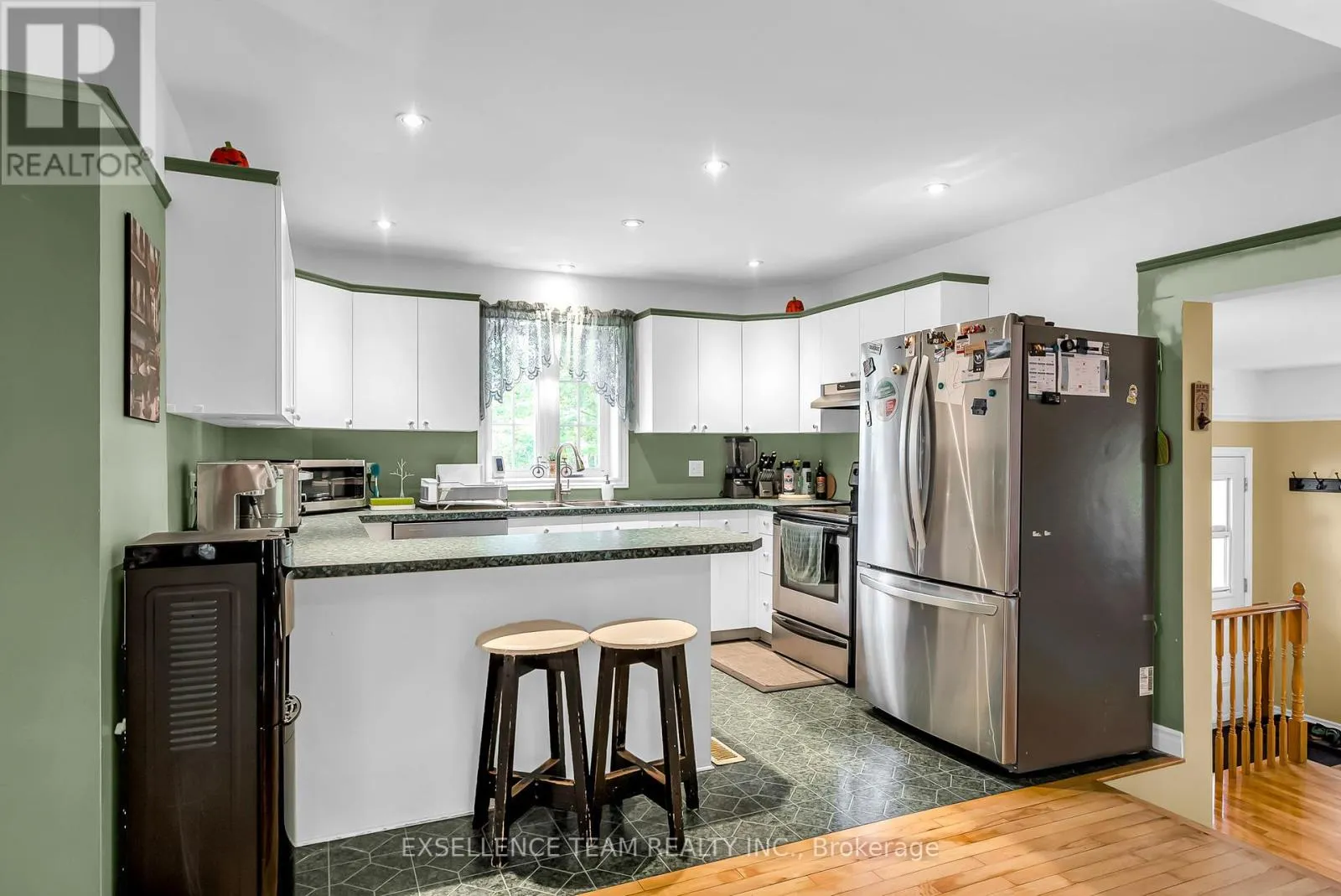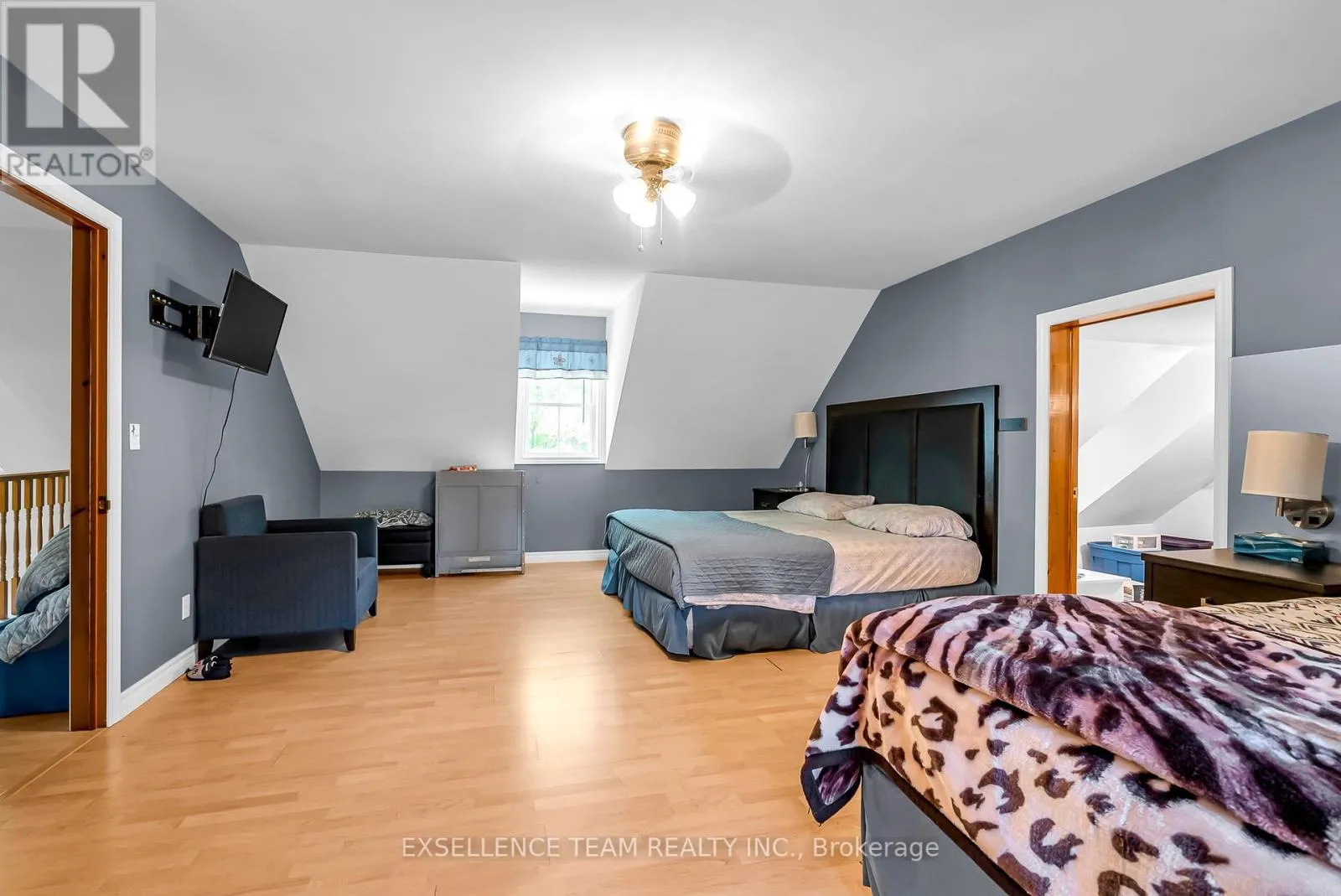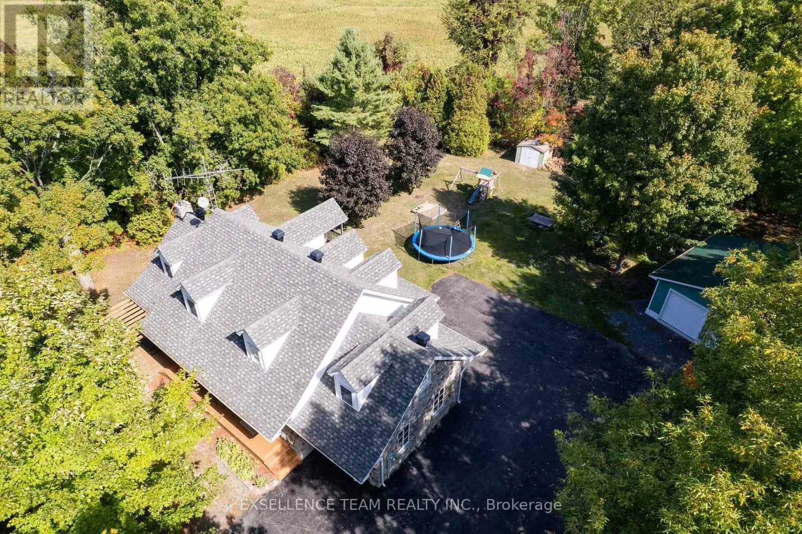 Cross Streets: North of CXonc 9. ** Directions: 4th Line Rd just North of Conc 9. On east side of 4th Line Rd. Here is a home that offers something for everyone! You will be impressed the moment you drive in the yard. Fieldstone exterior on a classic style home with a fully paved driveway/parking area. 2390 sq ft with an additional 1280 sq ft basement provides lots of space for a growing family or to entertain. The main level features an open concept living/dining room with a ceiling open to the second level. Hardwood floors throughout the main level with a sunken family room, sunken office, a bedroom and a 4pc bathroom. The upper level features a huge primary bedroom with a large walk-in closet, balcony and 4 pc ensuite. Two other good size bedrooms are also on this level and a foyer/landing. The basement has laundry, a large rec-room, a workshop/storage room and a utility room. This property features a large back yard that backs onto fields. The treed front yard provides privacy. The detached 24' x 24' garage has electricity and a concrete floor. All this is located on a paved road only 50 minutes to Montreal, 1 1/4 hr to Ottawa, 15 minutes top Alexandria and 40 minutes to Cornwall. (id:27476)