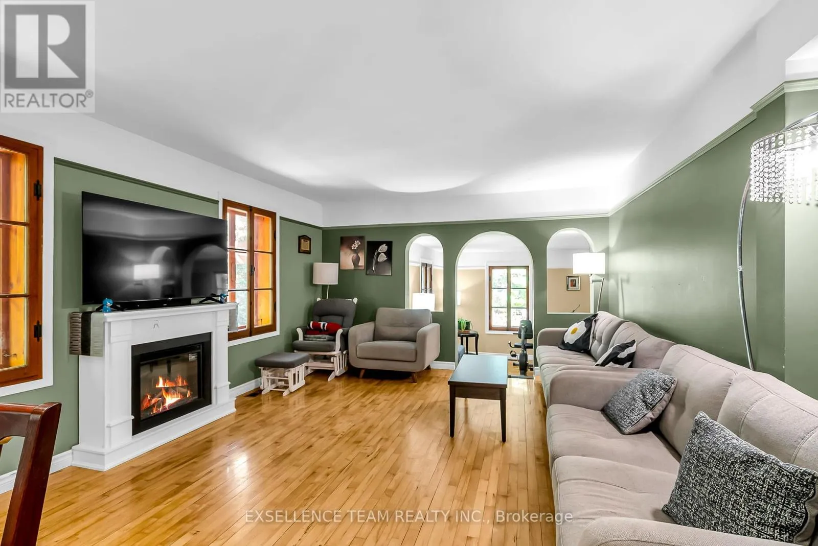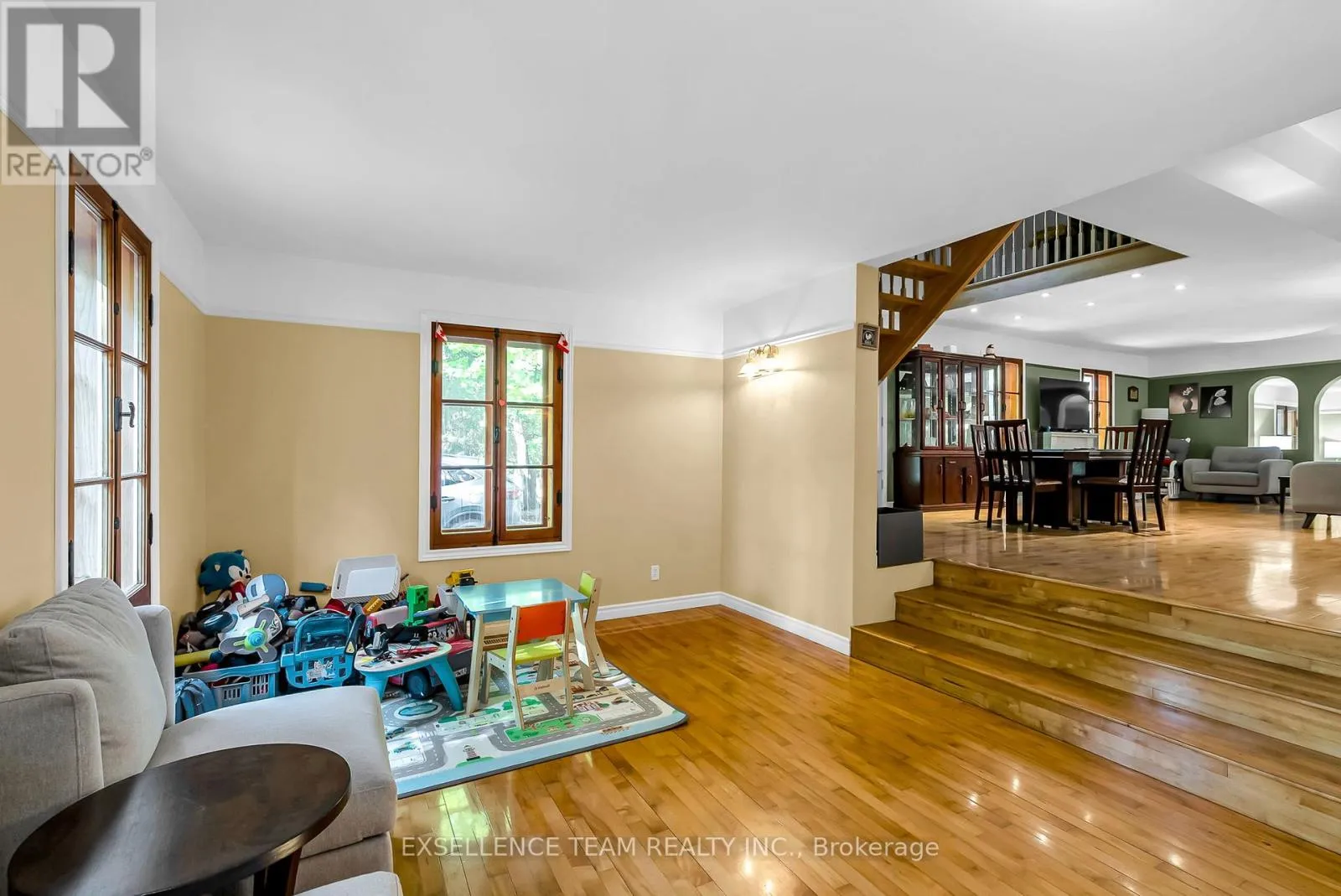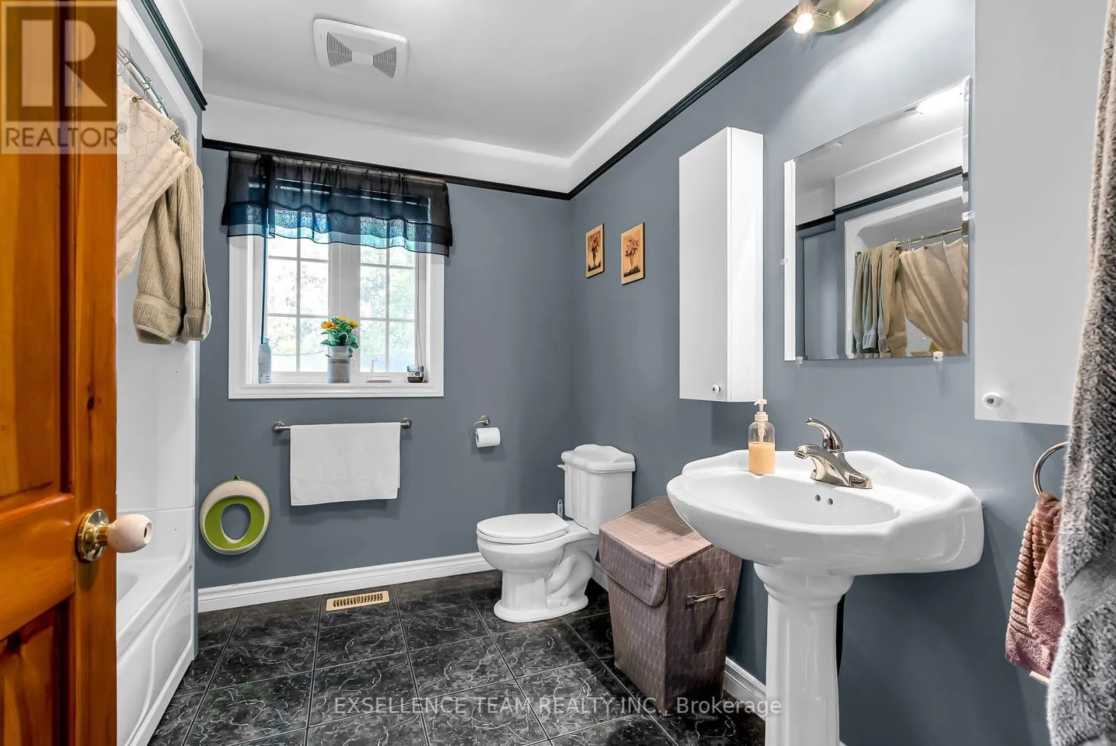 Cross Streets: North of CXonc 9. ** Directions: 4th Line Rd just North of Conc 9. On east side of 4th Line Rd. Here is a home that offers something for everyone! You will be impressed the moment you drive in the yard. Fieldstone exterior on a classic style home with a fully paved driveway/parking area. 2390 sq ft with an additional 1280 sq ft basement provides lots of space for a growing family or to entertain. The main level features an open concept living/dining room with a ceiling open to the second level. Hardwood floors throughout the main level with a sunken family room, sunken office, a bedroom and a 4pc bathroom. The upper level features a huge primary bedroom with a large walk-in closet, balcony and 4 pc ensuite. Two other good size bedrooms are also on this level and a foyer/landing. The basement has laundry, a large rec-room, a workshop/storage room and a utility room. This property features a large back yard that backs onto fields. The treed front yard provides privacy. The detached 24' x 24' garage has electricity and a concrete floor. All this is located on a paved road only 50 minutes to Montreal, 1 1/4 hr to Ottawa, 15 minutes top Alexandria and 40 minutes to Cornwall. (id:27476)