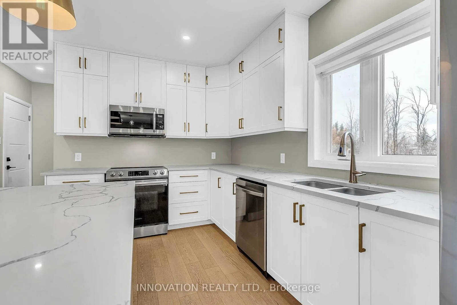 Cross Streets: Glen Walter Park Road and County Road 2. ** Directions: County Road 2 to Glen Walter Park Road, home is on the left. Welcome to this fabulous modern townhome in Glen Walter with amazing water views and no rear neighbours. The bright and open concept main floor is flooded with natural light. Gorgeous white oak flooring throughout main and second levels. The modern kitchen offers a lot of workspace and storage space, quartz counters, stainless steel appliances and a large island with plenty of seating. Patio doors off the dining area lead to the ideal spot for backyard BBQ's and entertaining. Upstairs the spacious 2nd floor boasts three generously sized bedrooms, including a primary suite with a walk-in closet and 4pc ensuite, plus a 4 piece family bath -- all with quartz counters. The 2nd floor balcony is accessible from both the primary suite and one other bedroom and offers breathtaking views of the St Lawrence River! Second floor laundry features a modern washer/dryer tower combo. Fully finished lower level features a large family room with luxury vinyl flooring and full bath. Close to amenities, golf course, playground & schools. 1hr to Montreal or Ottawa. Prepaid snow contract in place for the season with Cornwall Snow. (id:27476)