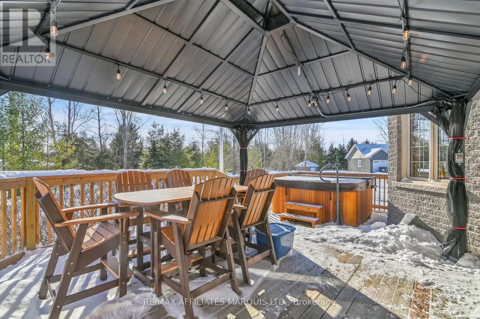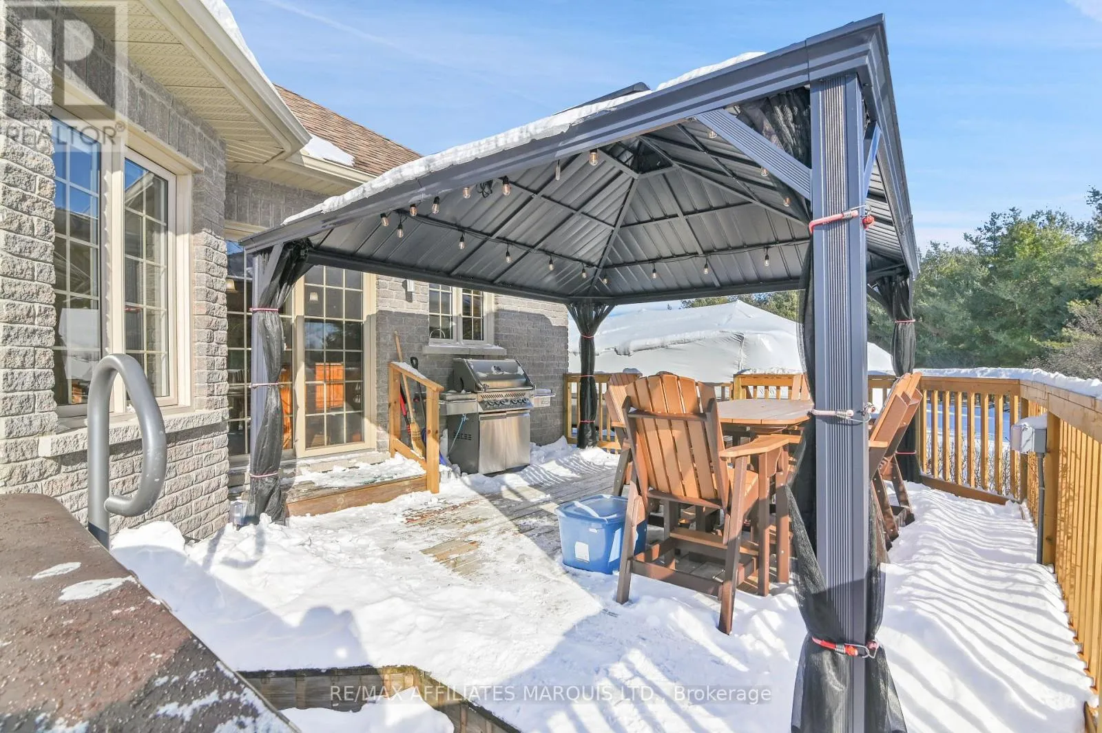 Cross Streets: Samuel Drive and Adrian Court. ** Directions: Highway 2 OR Tyotown Rd to Paragon Rd. Take Paragon to Samuel Drive. East on Samuel until Adrian Court. Right on Adrian Court and watch for sign. Tucked away on a peaceful street in a sought-after neighbourhood, this beautifully crafted stone and brick bungalow showcases quality construction, and thoughtful design throughout. On the main level the home offers two spacious bedrooms and three well-appointed bathrooms, making it ideal for comfortable, low-maintenance living. Step inside to a welcoming foyer that opens into a bright, flowing main living area. The living room is warm and inviting with a gas fireplace, seamlessly connecting to an expansive dining area-perfect for entertaining. The kitchen is both stylish and functional, featuring a central island, generous cabinetry, pull-out pantry storage, and a convenient built-in workspace. From the kitchen, patio doors lead to a generous deck with gazebo and hot tub overlooking a private, beautifully landscaped backyard-an ideal spot to relax or host guests. The primary bedroom retreat boasts a walk-in double closet, elegant tray ceiling, and a stunning ceramic ensuite complete with a seated shower. A second bedroom with double closet sits near a full four-piece bathroom, offering comfort and privacy for guests or family. Hardwood and ceramic flooring enhance the main level, which also includes a combined laundry and powder room for added convenience. The partially raised lower level is equally impressive, offering a generously sized, finished recreation/family room ideal for entertaining or everyday relaxation. The remaining unfinished space includes a bathroom rough-in and presents an excellent opportunity to create an additional bedroom or expand the living area, allowing the home to adapt effortlessly to your lifestyle. There have been significant updates to the home including replacing the furnace and air conditioner in 2025, water treatment system, interlocking driveway installed, fencing along rear of property, hot tub, see the feature sheet for complete list. This well-designed home combines comfort, quality, and future potential in a serene setting. (id:27476)