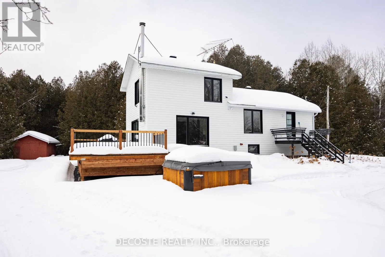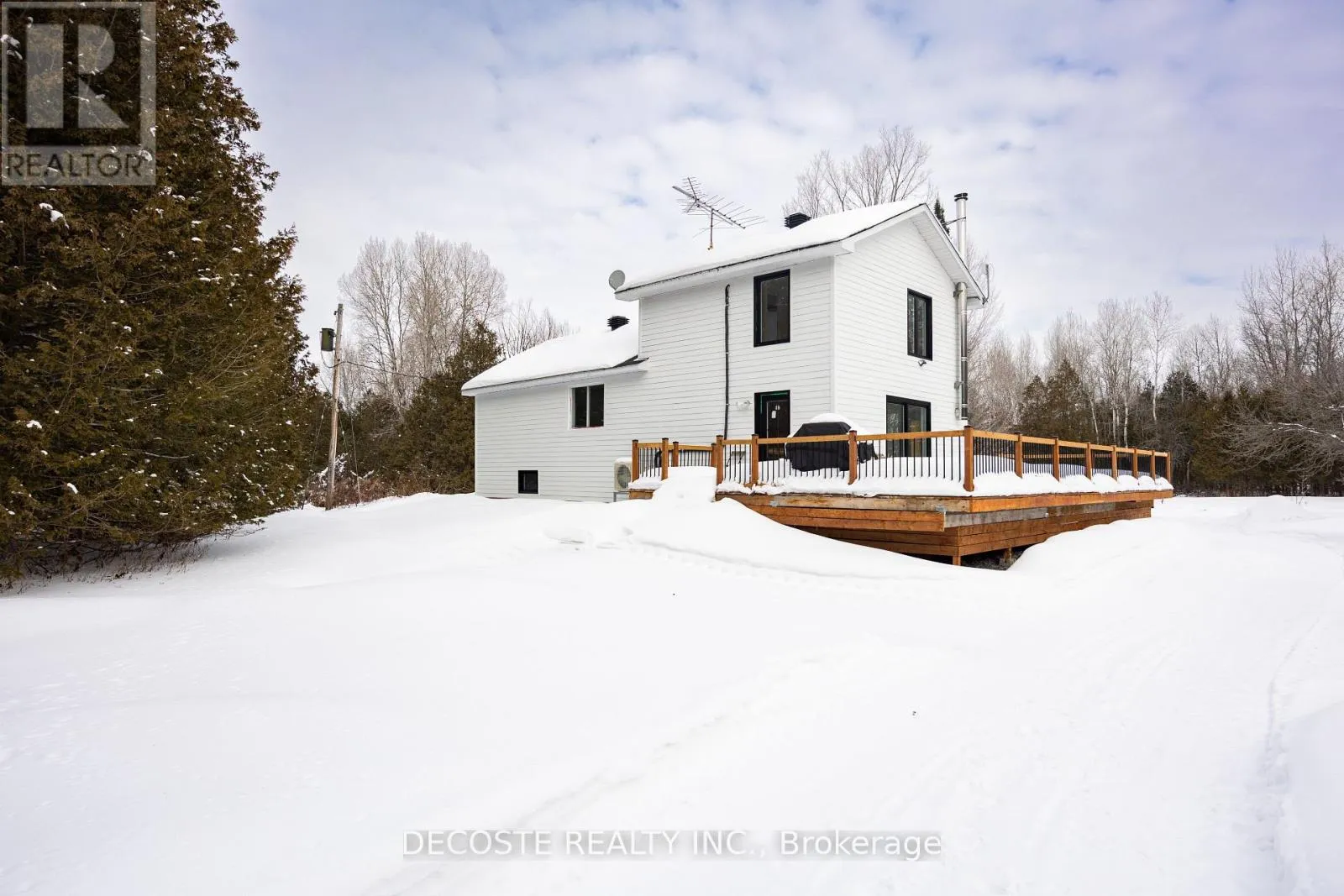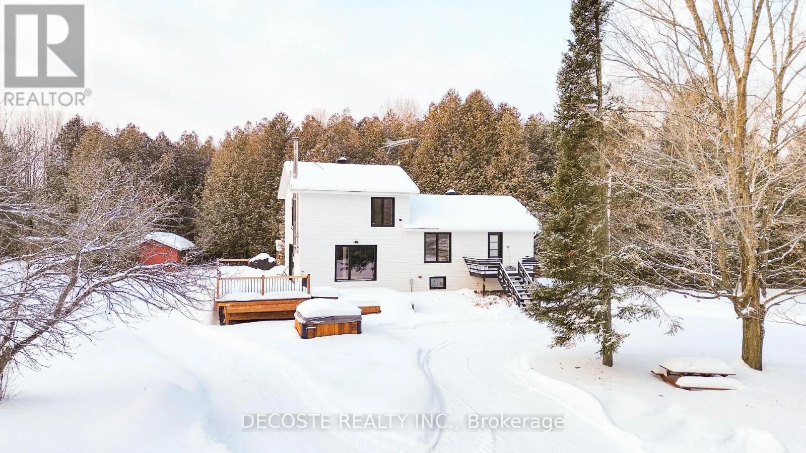 Cross Streets: 4th Line Rd & Conc 10. ** Directions: From 401, take exit 825 (Curry Hill) then go north through Dalhousie to Concession 10 before you get to Glen Robertson. Turn East on Concession 10 to property on South side. If serenity and privacy are what you've been searching for, look no further! This charming split-level home with a detached garage and garden sheds sits on approximately 24.5 acres of beautiful countryside. A private driveway leads you to this secluded gem, surrounded by mature apple trees, gardens, and a peaceful mixed bush setting. The home offers 3 bedrooms on two levels and 1 fully renovated bathroom. The compact yet highly functional kitchen is conveniently located next to the dining area. Just off the kitchen, you'll find the spacious primary bedroom and a modern 4-piece bathroom. Adjacent to the dining room is the bright lower-level living room, featuring a cozy wood-burning stove and large windows that fill the space with natural light. The upper level includes two additional generously sized bedrooms. Recent renovations and upgrades include new windows and doors, new siding with added insulation, a new heat pump, new flooring throughout, a beautifully updated kitchen with new cabinets and appliances, and a completely renovated bathroom. Step outside to enjoy the impressive two-level wraparound deck with patio door access from the living room-perfect for relaxing or entertaining while taking in the surrounding nature. This property offers abundant space, privacy, and wildlife for the whole family to enjoy - a true country paradise! (id:27476)