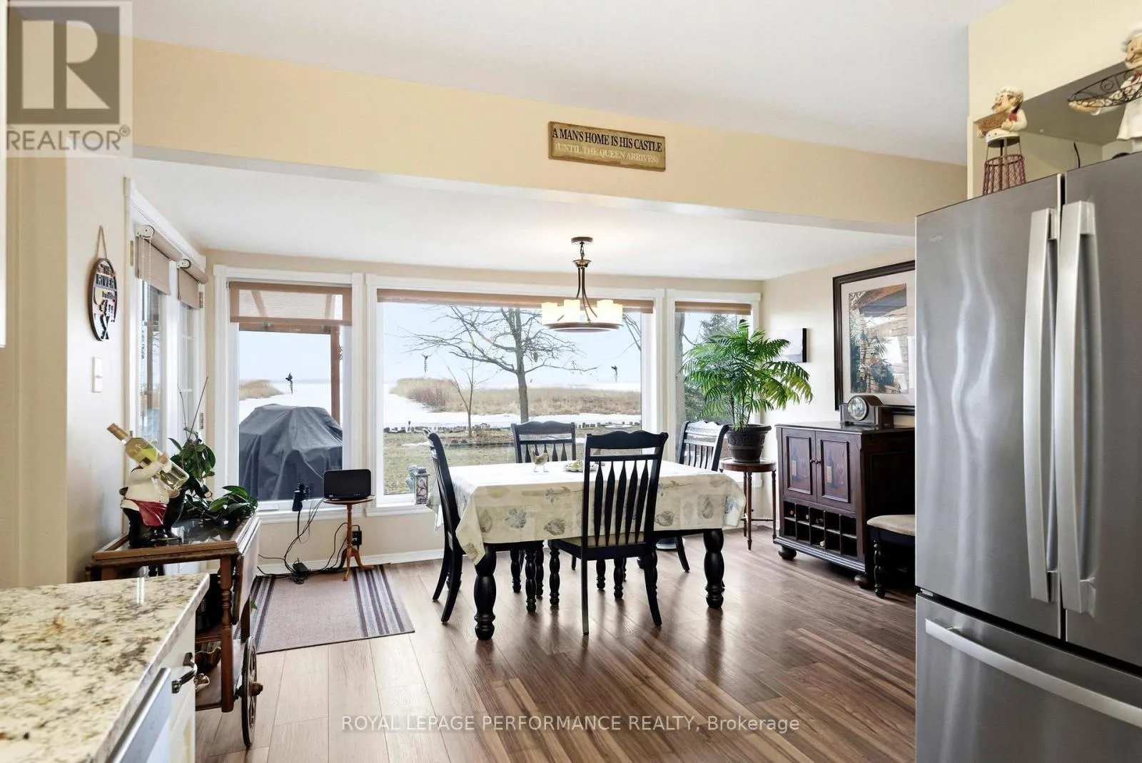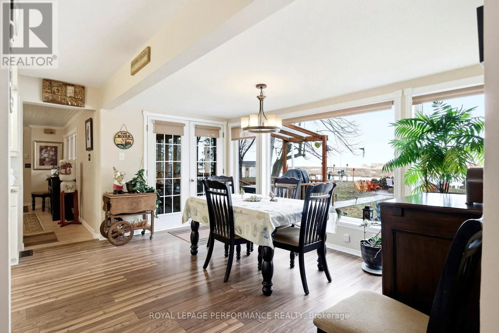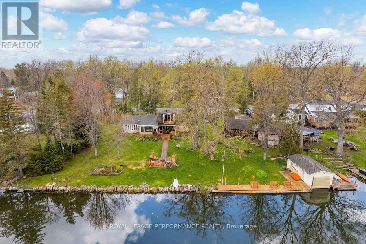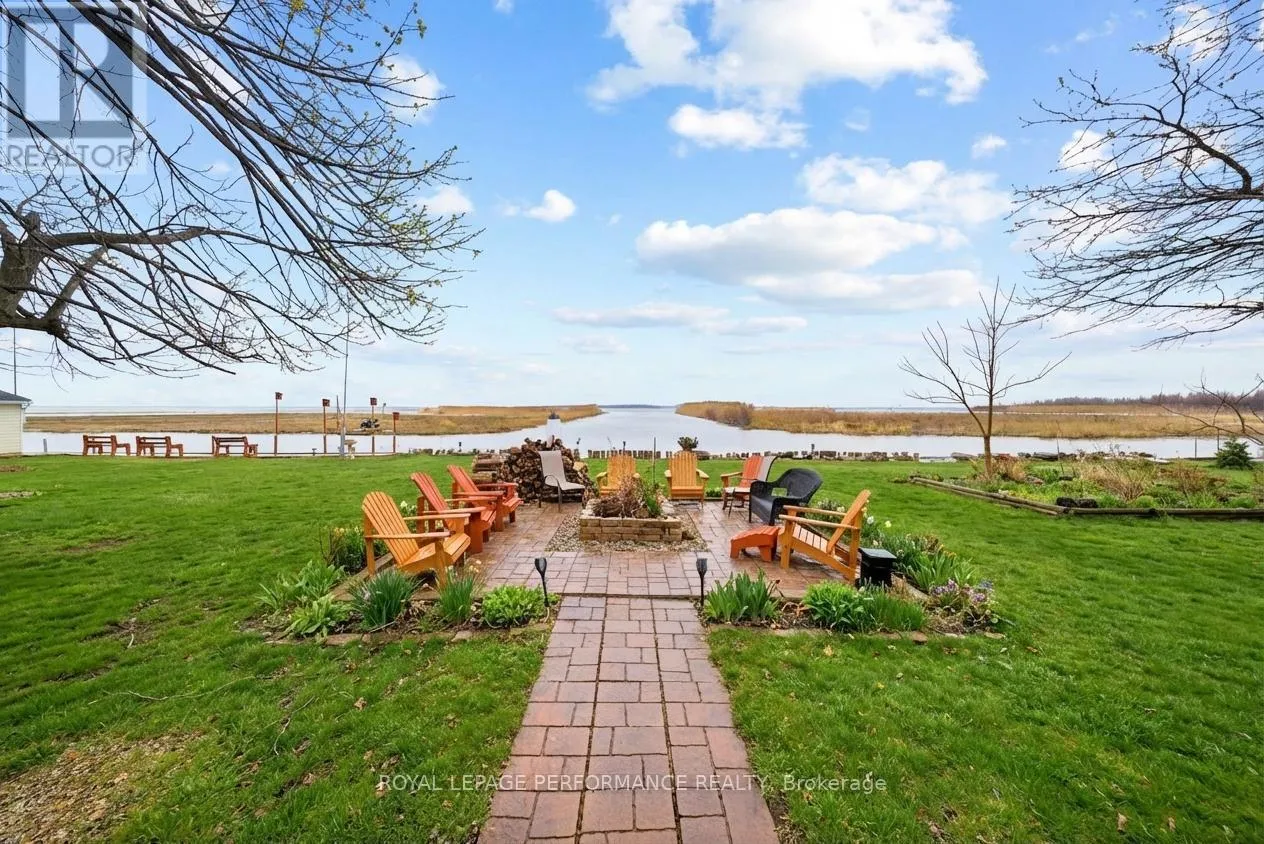 Cross Streets: Tree Haven Rd and County Rd 2. ** Directions: From County Road 2. South on Tree Haven Rd. Welcome to your own slice of waterfront paradise, offering an impressive 180 ft of frontage along the majestic St. Lawrence River with breathtaking views stretching to the Adirondack Mountains. From picturesque sunrises to watching ships glide by, this property delivers a front-row seat to one of Ontario's most iconic waterways. A fisherman's or nature lovers playground. Set on a beautifully landscaped half-acre lot, this property is a balanced blend of tranquility and functionality. A quiet canal leads you to your private dock and boathouse, making it ideal for boating enthusiasts and those craving life on the water. The spacious living room and dining area are flooded with natural light thanks to southern exposure and anchored by a cozy propane fireplace, creating the perfect setting for both relaxing and entertaining. The gourmet kitchen with heated flooring features granite countertops and stainless steel appliances. The main level offers two well-appointed bedrooms, a 4pc bathroom, convenient main floor laundry, and a 2pc guest bath. Upstairs, escape to your private retreat in the primary suite, complete with a walk-in closet, 3pc ensuite, and a private balcony overlooking the river-your morning coffee will never be the same. Step outside and enjoy the best of outdoor living with a screened-in rear porch, plus evenings around the stone fire pit surrounded by nature and serenity. The property also features a double car garage, paved driveway with ample parking, a charming log workshop/potential bunkie or creative space, and three additional sheds for all your storage needs. Located just minutes from marinas, camping, and recreation, and offering a quick commute to Lancaster with easy access to Highway 401, this is waterfront living without compromise. A rare opportunity to own a riverfront property-where every day feels like a getaway. *Some photos have been virtually staged. *As per Seller direction allow 24 hour irrevocable on offers. (id:27476)
