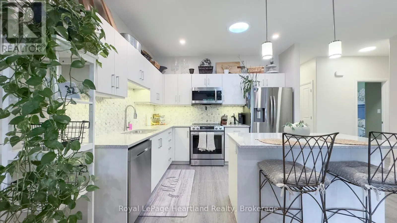 Cross Streets: Main St. ** Directions: From HWY 4 (Exeter Main Street) turn onto Huron Street E, then south onto Albert Street, then left onto Rowe. Home is on your left. Beautiful Modern design Energy Efficient Bungalow Home located in trendy neighbourhood in south Exeter! Front porch is ideal for evening coffee as you watch the world go by. Open concept main Living areas with stylish kitchen, dining area and living room that overlooks a fenced yard featuring a deck, pond and gardens. Backyard backs on to cedar hedge and creek so enjoy the privacy and all the birds that call this home. Two good size bedrooms complete this level Master with walk in closet and 3 piece ensuite. Lower level is finished with a large but cozy family room, office or 3rd bedroom and a 2 piece bath plus there is lots of great storage in this level. Upgrades include backsplash in kitchen 2024, 2 Solar Tubes in Living Room and Kitchen in 2024, painted throughout Main Level in 2024, Fenced Yard, Deck and Pond in 2023, New flooring on main level in 2024, and finished basement in 2022. (id:27476)