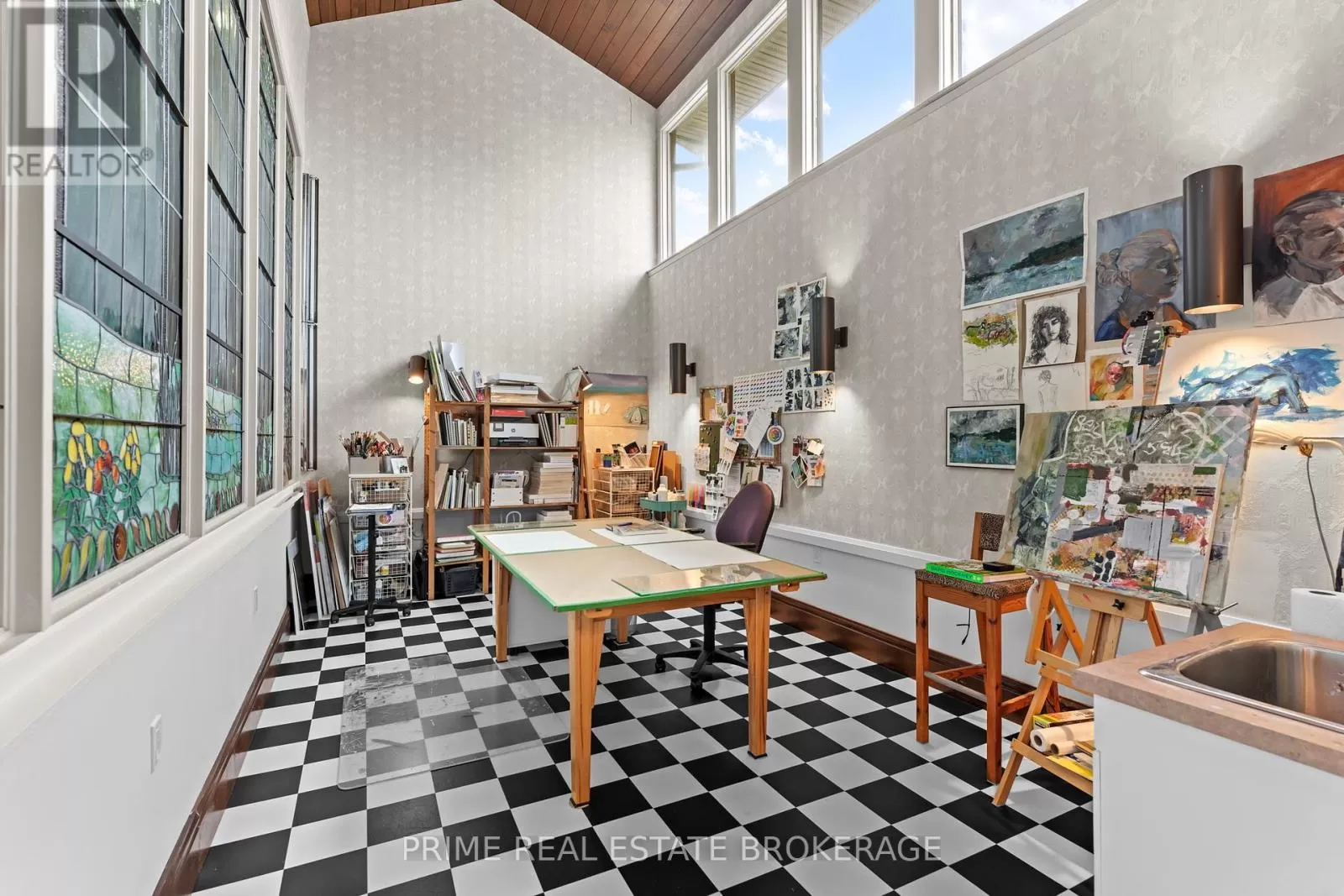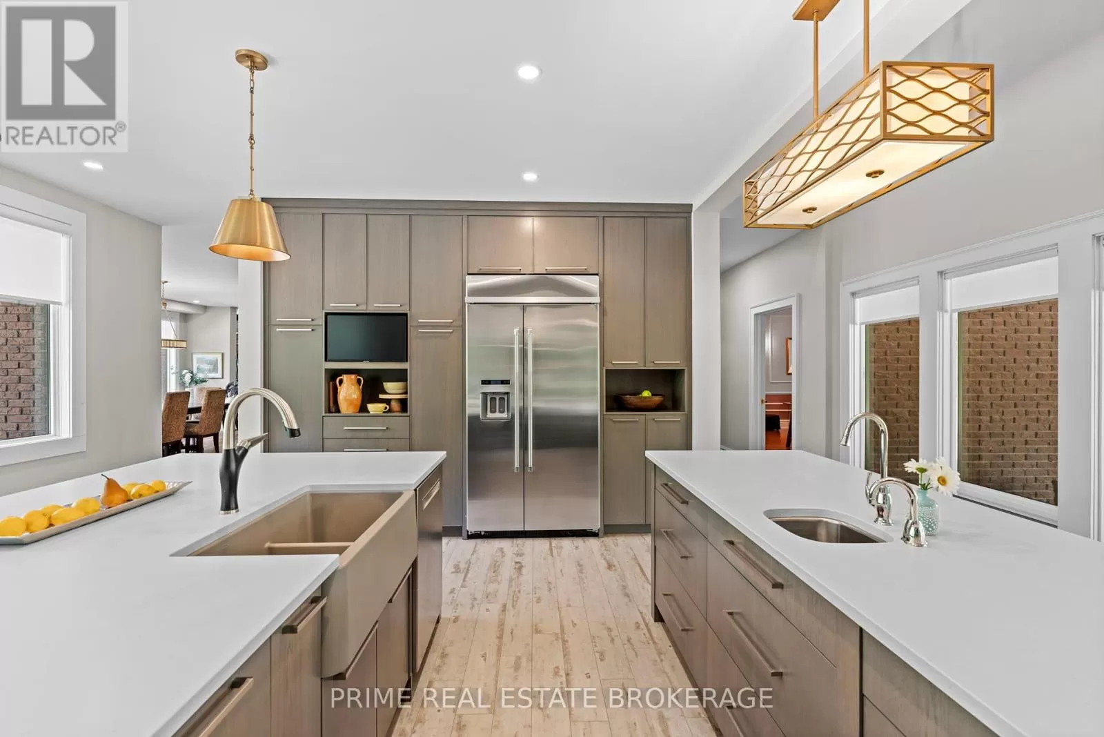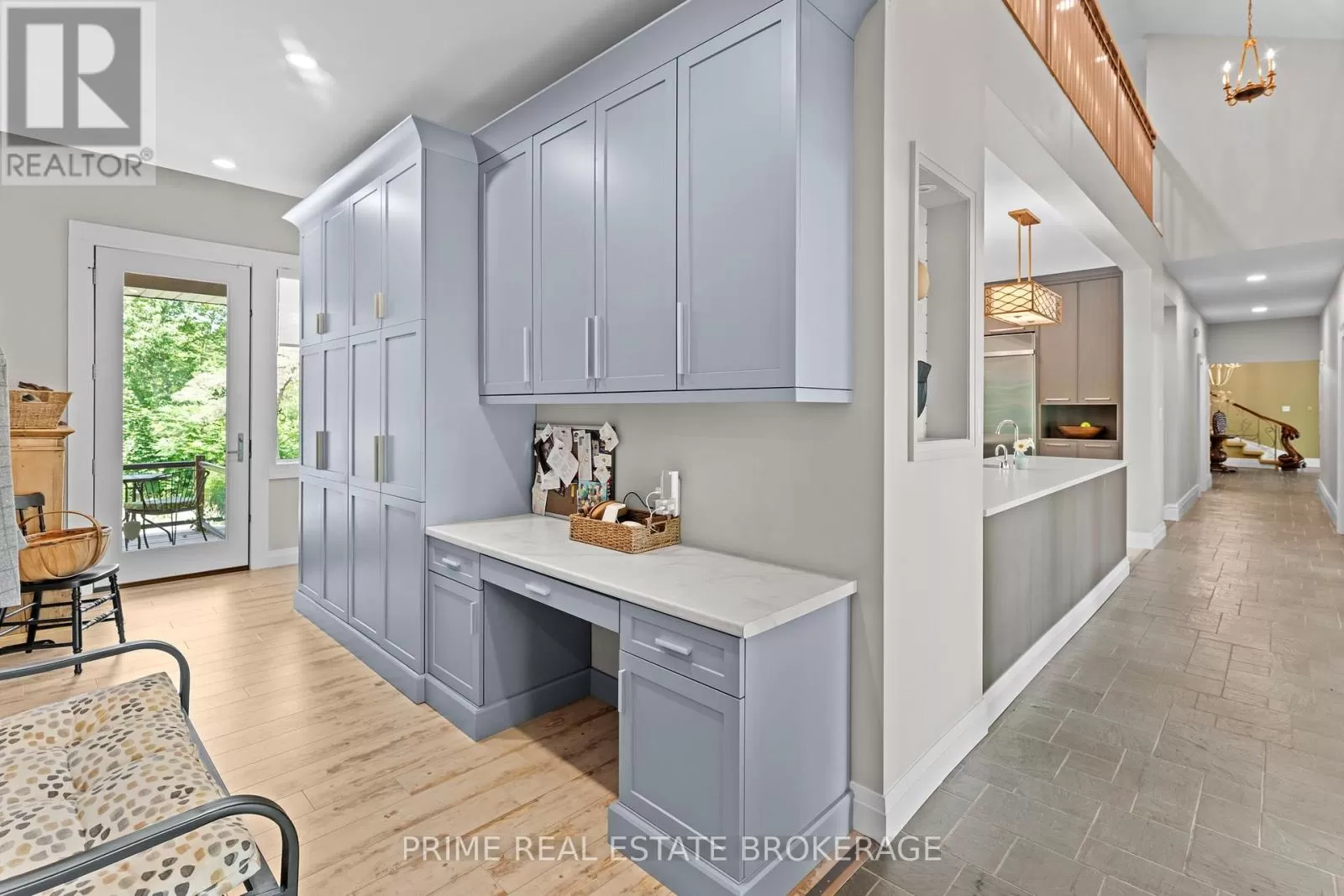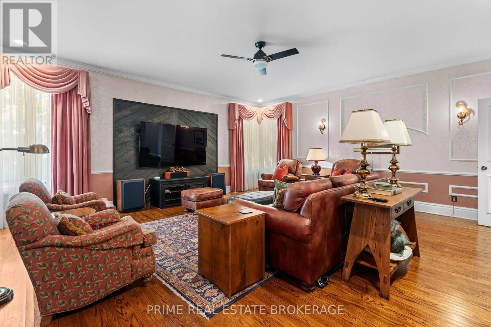 Cross Streets: Main Street South & Riverside Drive. ** Directions: Main Street South & Riverside Drive, near Hazelton Lane. Exclusive 1.18 Acre Private Estate in the Heart of Exeter. Ideally situated on a quiet dead-end street, this over 7,000 sq ft residence offers 329 feet of frontage, backing onto a large scenic ravine & surrounded by picturesque trees and landscaping, creating a natural buffer of space and privacy just minutes from downtown. Boasting custom upgrades throughout, showcasing an extraordinary blend of scale and craftsmanship. Every inch was built with intention from the wide, wheelchair-accessible hallways to the entertainment-ready living areas and pool pavilion. The expansive main floor showcases Cardinal custom cabinetry, a full butler's pantry with additional refrigeration, a walk-in closet and freezer in the rear hall, and a updated formal dining room with scenic views over manicured gardens. Upstairs, two adjoining primary suites offer walk-through closets and beautifully renovated bathrooms, while a 10x20 sq ft art studio with stained-glass windows and west exposure provides an inspiring, light-filled retreat. Other highlights include full elevator access to all three levels, a 3-car oversized heated garage with finished walls and ceiling, new skylights above the indoor pool, hot tub jacuzzi for year-round relaxation upgraded mechanical systems throughout. Professionally landscaped by Jay McKinnon, the grounds are a private oasis complete with stamped concrete patios, a roofed deck, new pond, Wi-Fi irrigation, heated concrete steps, and 10-camera security system. Close to Exeter Golf Club, the Ausable River Trail, and 20 minutes to Grand Bend beaches, dining, and marina, this is a rare opportunity to own a private, turn-key estate in one of Ontario's most tightly held communities. (id:27476)