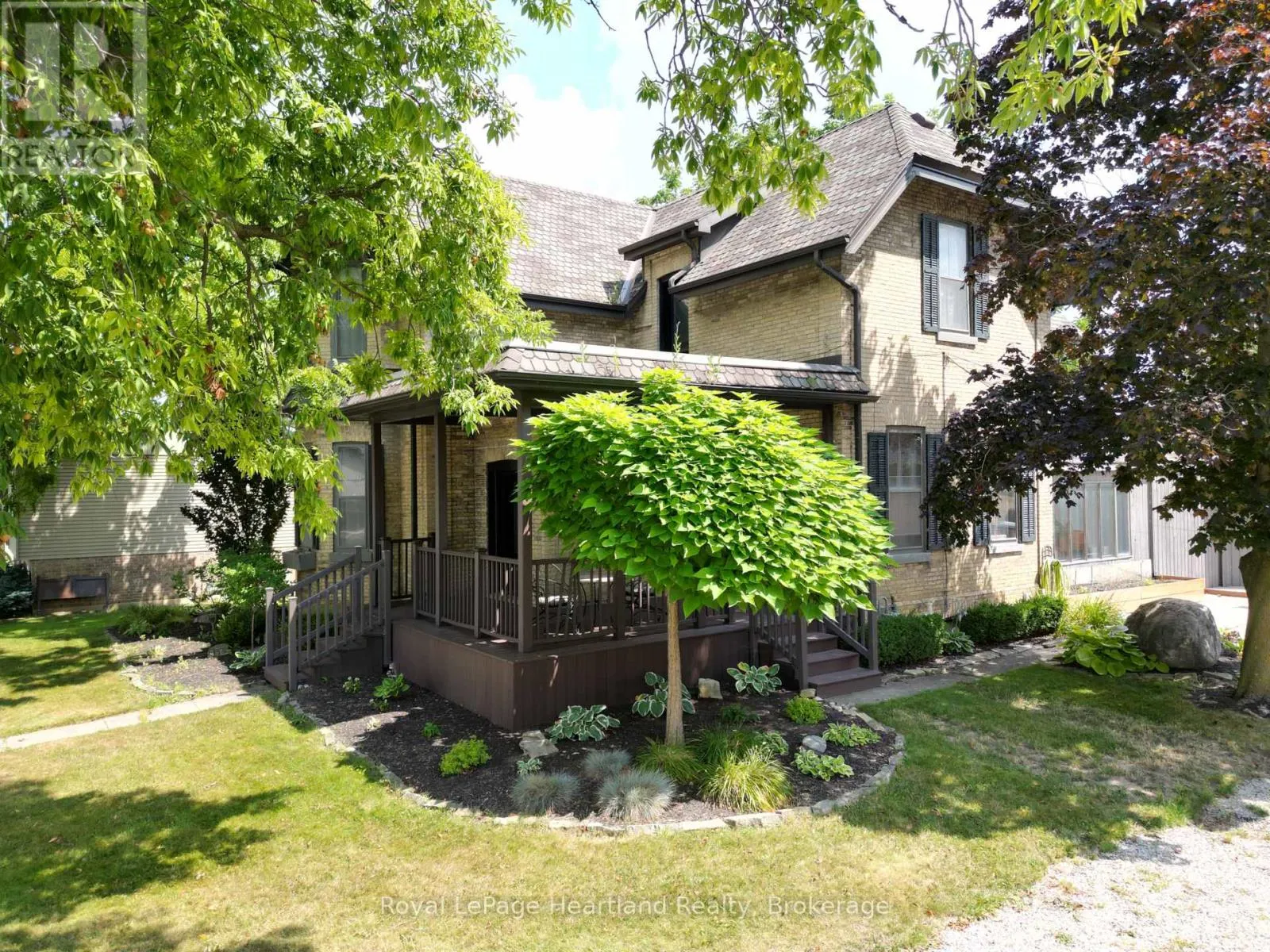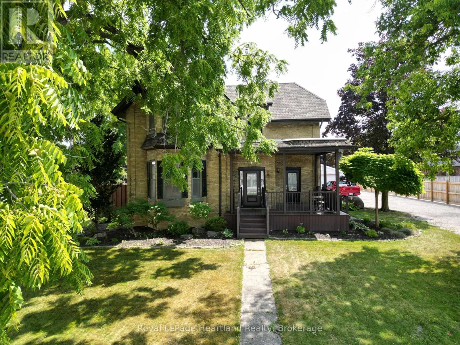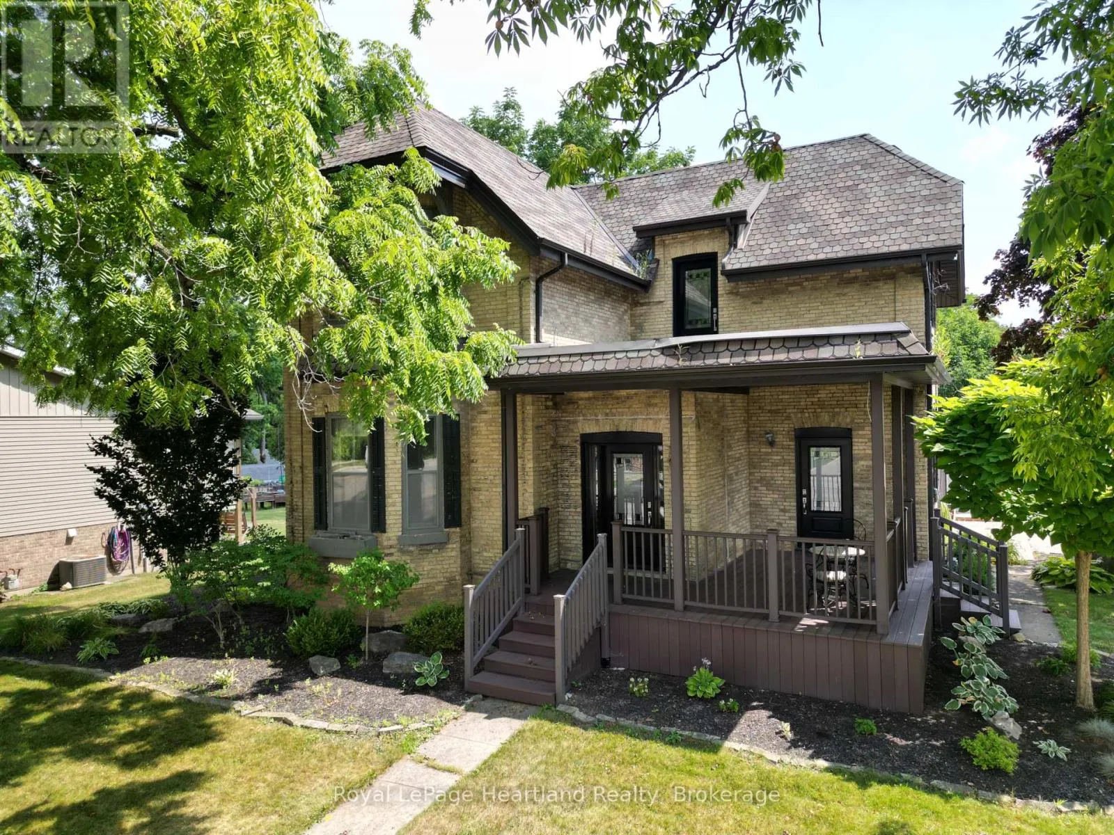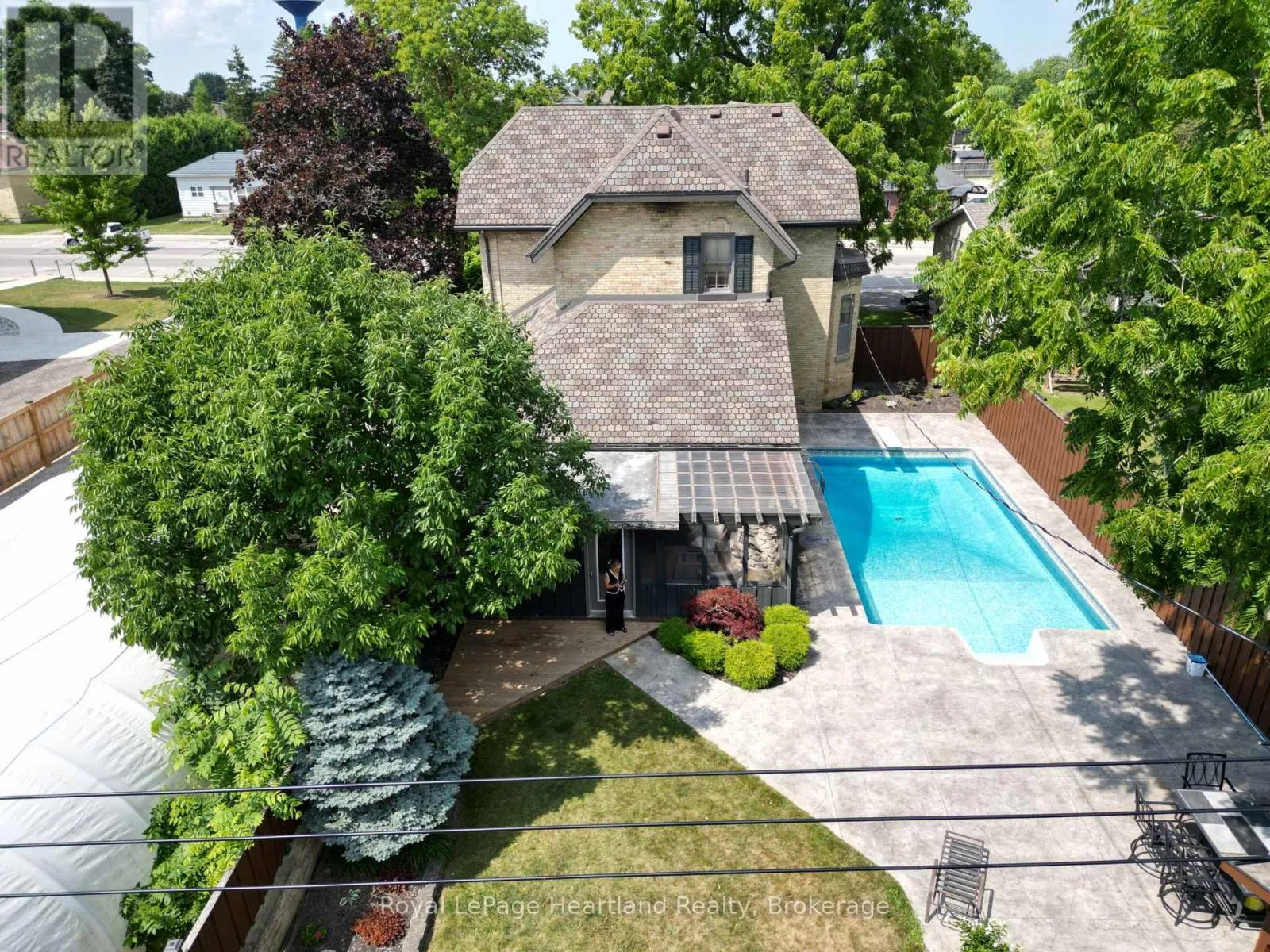 Cross Streets: Hill St. ** Directions: Travelling south on Main St Exeter, past the bridge, property is on the left. Grand century solid brick 2-storey home perched on a lovely lot just a few steps from the river, park, trail, and amenities. Built as a church manse in 1878, this palatial residence would be a great place to raise your family. The updated covered front porch opens to a centre hallway with a beautiful open staircase to the second floor. The main floor boasts a huge living room adjacent to a generous formal dining room, which is presently sporting a pool table. Tall Victorian ceilings and bay windows offer a fitting heritage motif. A huge eat-in kitchen with its extended sunroom area and large skylight makes a great space for family gatherings. A spacious den inside the front hallway with a separate entrance would suit well as a home office. A peaceful lounging room and large screened-in porch at the rear overlook the pool and private fenced-in backyard. Upstairs, you'll find five generous bedrooms as well as a roomy landing and a 4-piece bathroom. A large main floor laundry room offers walk-in shower, and a 2 piece bathroom near the rear entrance. The private, fenced backyard features a stamped concrete patio, a 16x32 in-ground pool, and an 8'x12' pool shed. To top it off, a 36'x24' coverall building with a huge double overhead door for all your storage needs. (id:27476)
