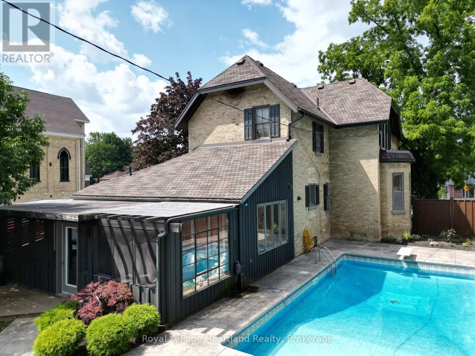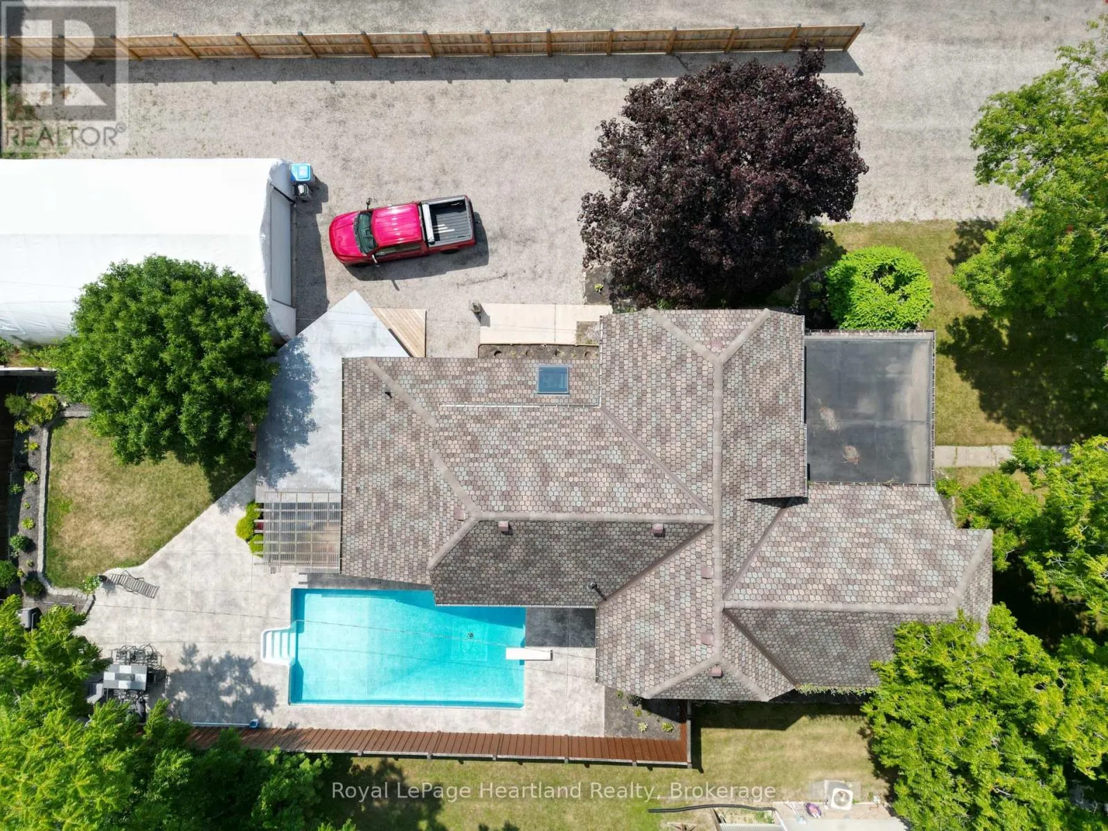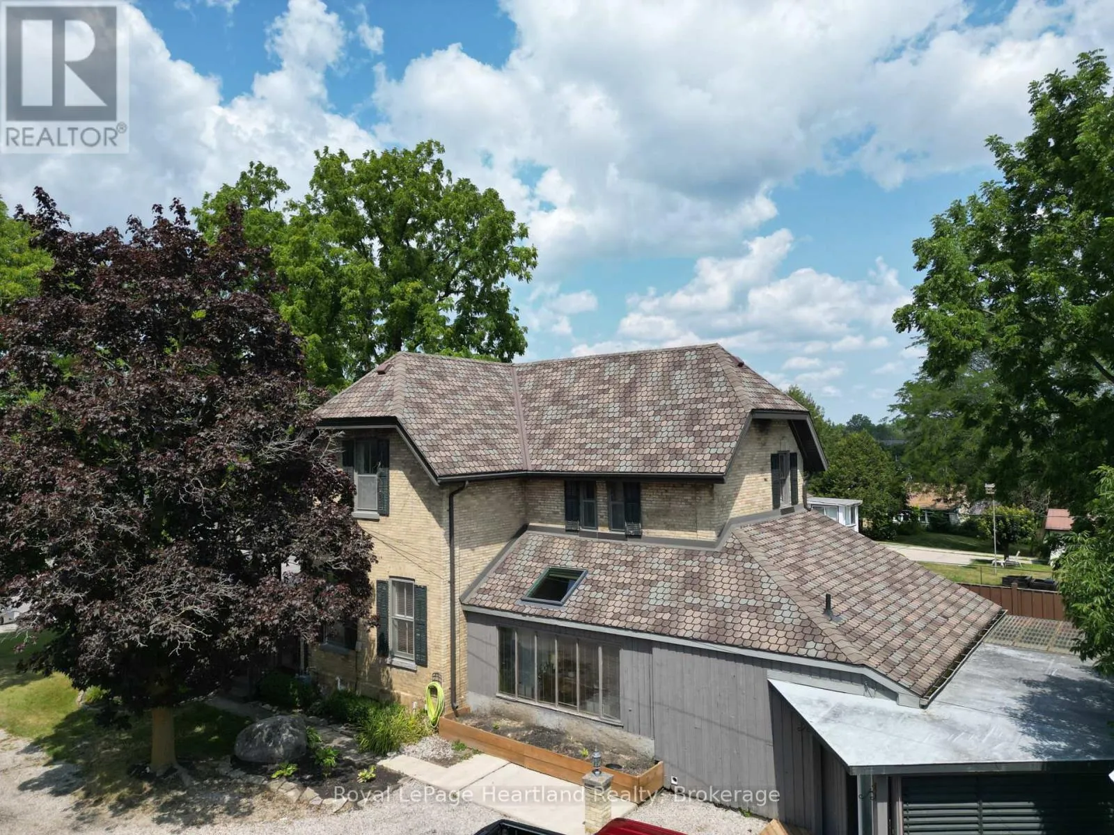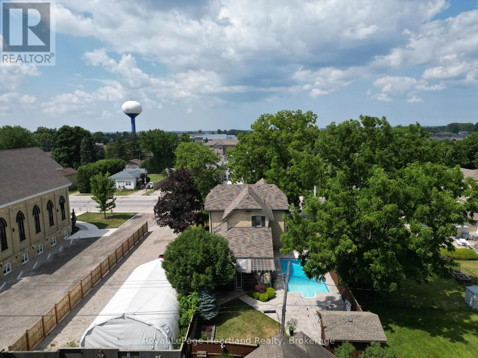 Cross Streets: Hill St. ** Directions: Travelling south on Main St Exeter, past the bridge, property is on the left. Grand century solid brick 2-storey home perched on a lovely lot just a few steps from the river, park, trail, and amenities. Built as a church manse in 1878, this palatial residence would be a great place to raise your family. The updated covered front porch opens to a centre hallway with a beautiful open staircase to the second floor. The main floor boasts a huge living room adjacent to a generous formal dining room, which is presently sporting a pool table. Tall Victorian ceilings and bay windows offer a fitting heritage motif. A huge eat-in kitchen with its extended sunroom area and large skylight makes a great space for family gatherings. A spacious den inside the front hallway with a separate entrance would suit well as a home office. A peaceful lounging room and large screened-in porch at the rear overlook the pool and private fenced-in backyard. Upstairs, you'll find five generous bedrooms as well as a roomy landing and a 4-piece bathroom. A large main floor laundry room offers walk-in shower, and a 2 piece bathroom near the rear entrance. The private, fenced backyard features a stamped concrete patio, a 16x32 in-ground pool, and an 8'x12' pool shed. To top it off, a 36'x24' coverall building with a huge double overhead door for all your storage needs. (id:27476)