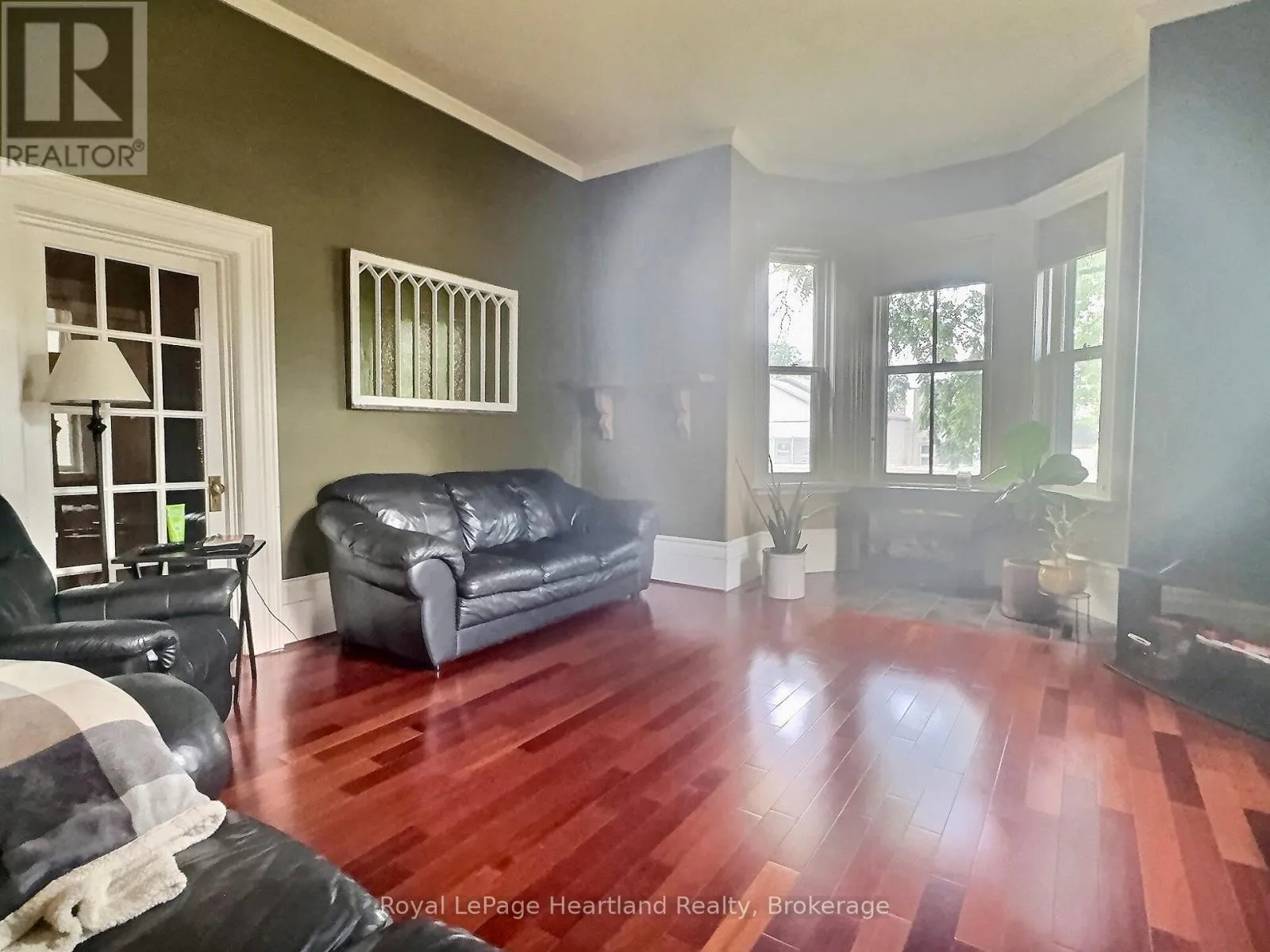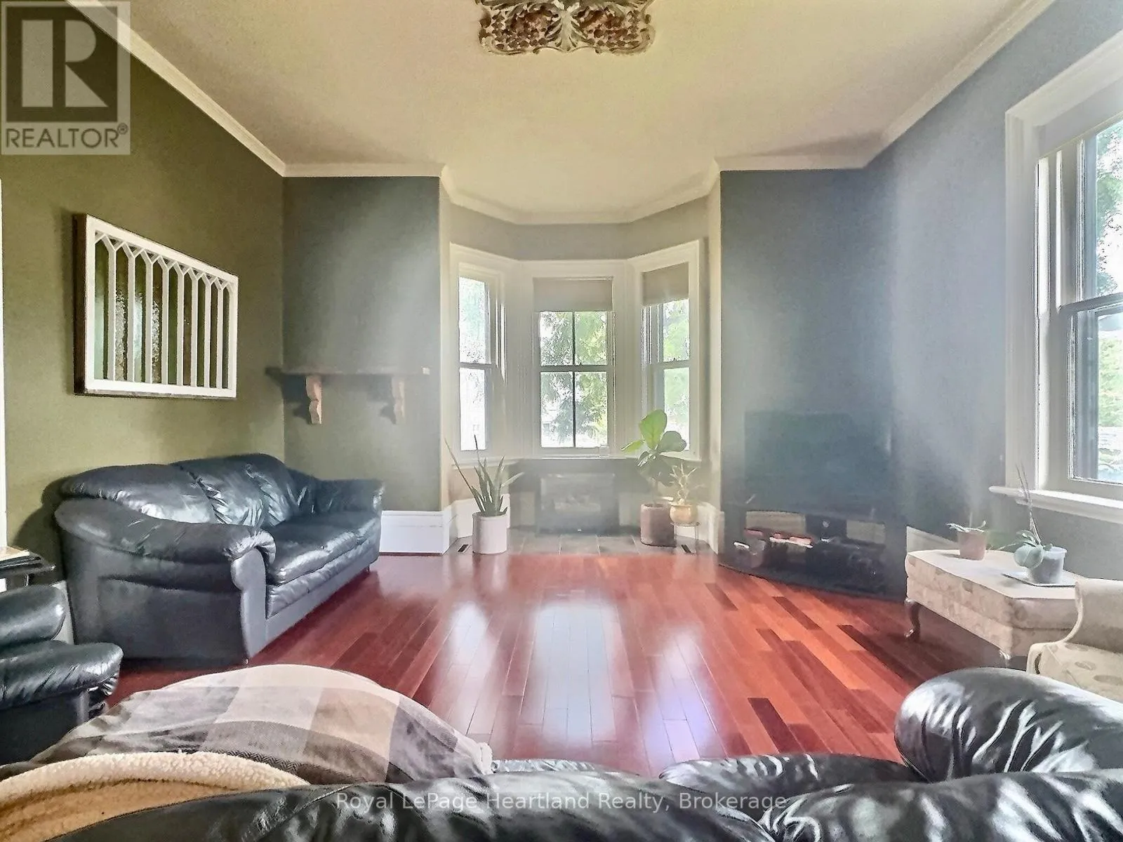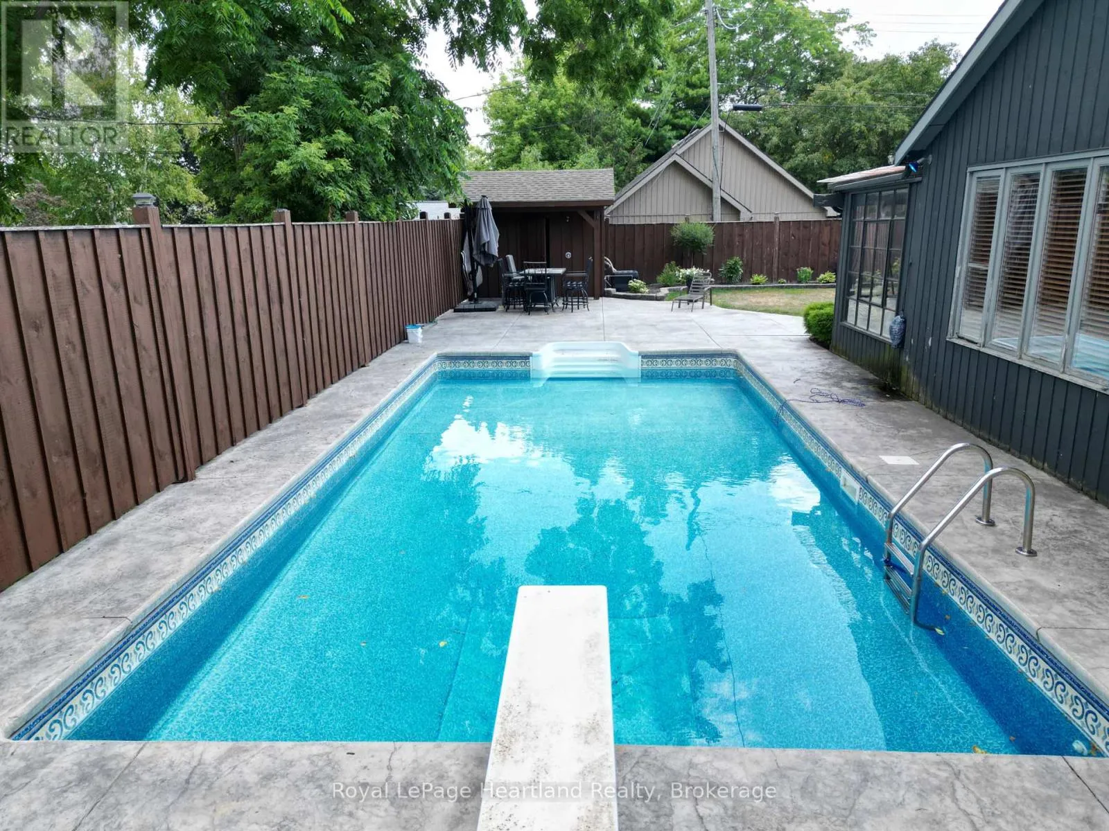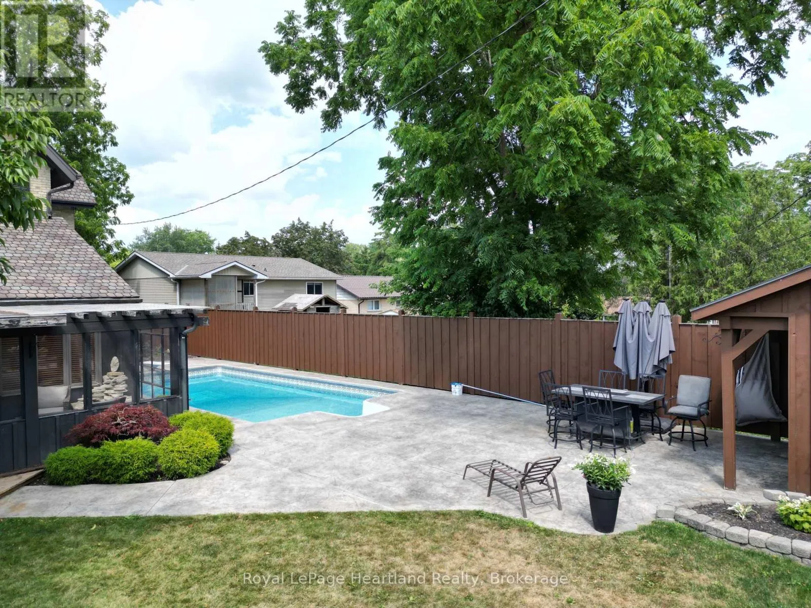 Cross Streets: Hill St. ** Directions: Travelling south on Main St Exeter, past the bridge, property is on the left. Grand century solid brick 2-storey home perched on a lovely lot just a few steps from the river, park, trail, and amenities. Built as a church manse in 1878, this palatial residence would be a great place to raise your family. The updated covered front porch opens to a centre hallway with a beautiful open staircase to the second floor. The main floor boasts a huge living room adjacent to a generous formal dining room, which is presently sporting a pool table. Tall Victorian ceilings and bay windows offer a fitting heritage motif. A huge eat-in kitchen with its extended sunroom area and large skylight makes a great space for family gatherings. A spacious den inside the front hallway with a separate entrance would suit well as a home office. A peaceful lounging room and large screened-in porch at the rear overlook the pool and private fenced-in backyard. Upstairs, you'll find five generous bedrooms as well as a roomy landing and a 4-piece bathroom. A large main floor laundry room offers walk-in shower, and a 2 piece bathroom near the rear entrance. The private, fenced backyard features a stamped concrete patio, a 16x32 in-ground pool, and an 8'x12' pool shed. To top it off, a 36'x24' coverall building with a huge double overhead door for all your storage needs. (id:27476)