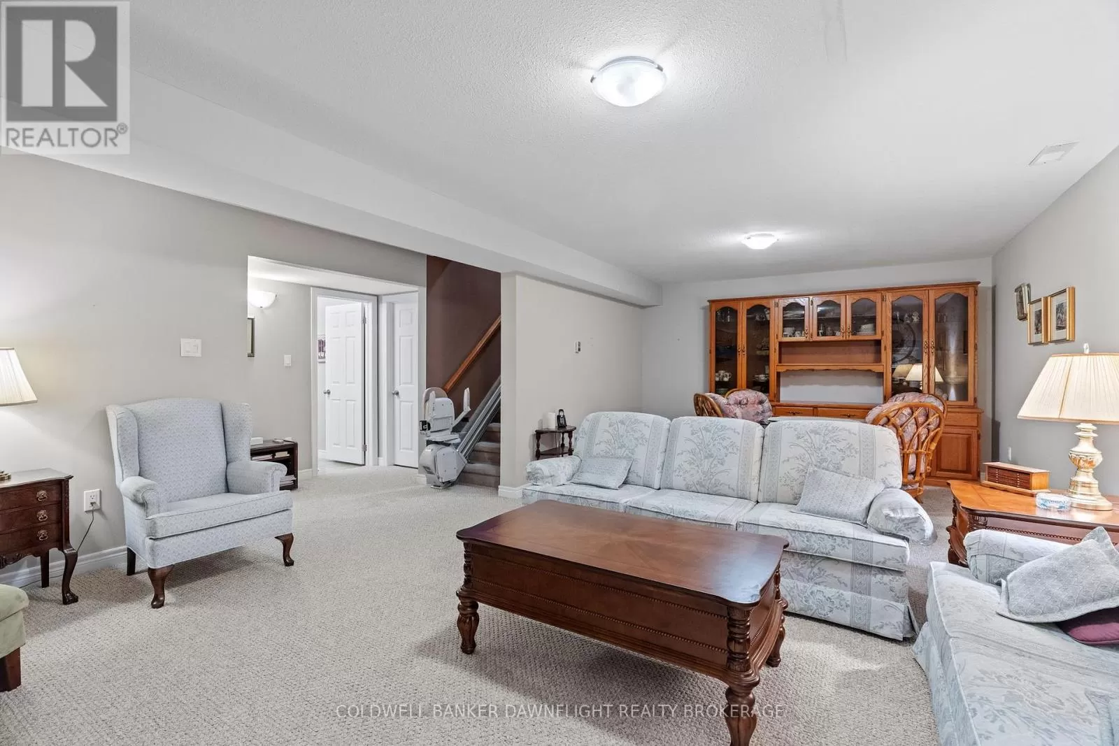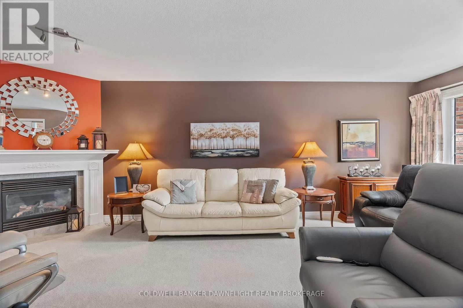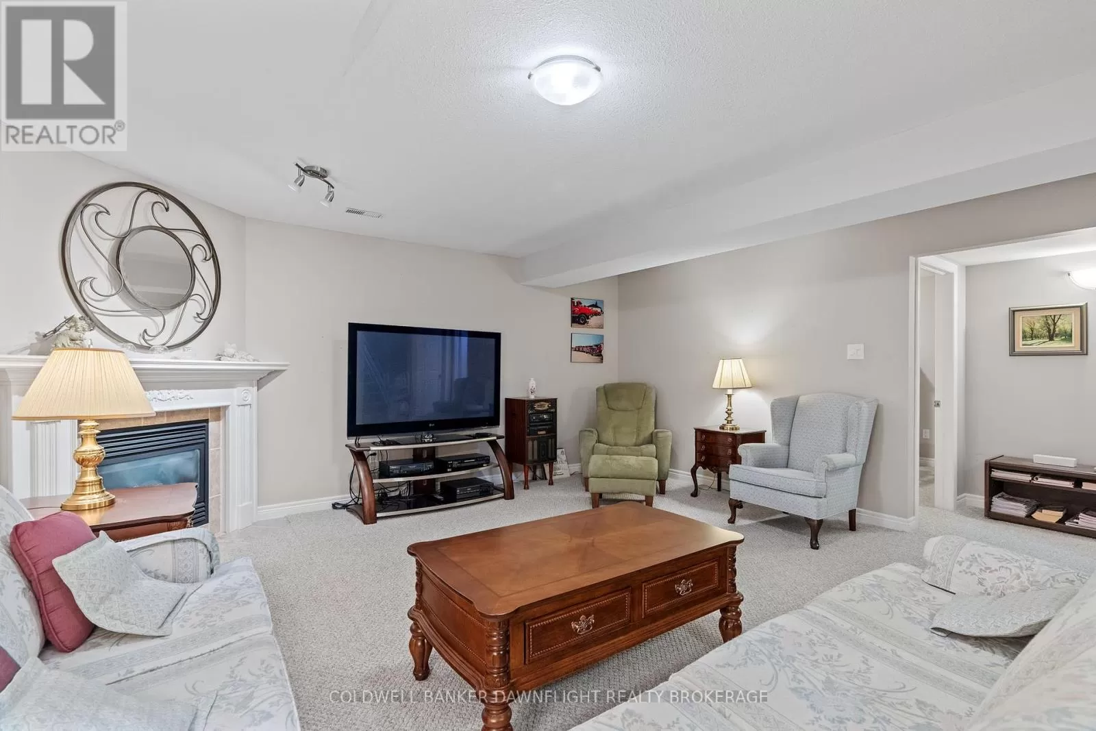 Cross Streets: Shadow Lane/Edward St. ** Directions: From Main St Exeter, turn east onto Huron St. then north onto Edward St. turn east onto Shadow Lane. Property is on your left hand side. Located in the desirable Shadow Lane subdivision, one of Exeter's most sought after townhouse communities, this well maintained bungalow offers comfortable and convenient single level living. The open concept layout creates a spacious environment ideal for both everyday living and entertaining, featuring a welcoming living room with a cozy gas fireplace.The primary bedroom includes a private four piece ensuite with a soaker tub and separate shower. A second bedroom or den, additional three piece bathroom, and main floor laundry add to the home's functionality and ease of living.A large rear deck, surrounded by mature landscaping, provides a private setting for outdoor relaxation or entertaining. The finished lower level offers a generous recreation room with a second gas fireplace, along with an additional bedroom and bathroomideal for guests or extended family.An oversized single car garage allows ample space for parking and extra storage. Enjoy the comfort of efficient gas heat and central air, with low monthly maintenance fees that cover lawn care and snow removal. A perfect choice for those seeking the benefits of a mature lifestyle in a quiet, well kept community. (id:27476)