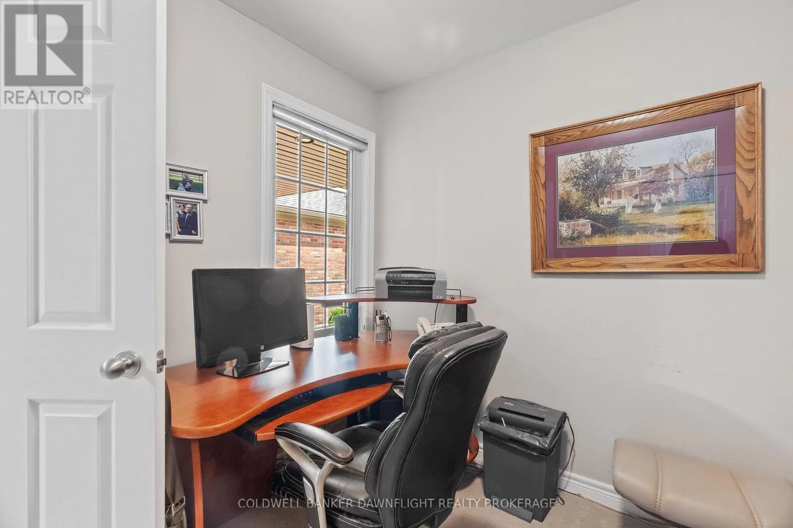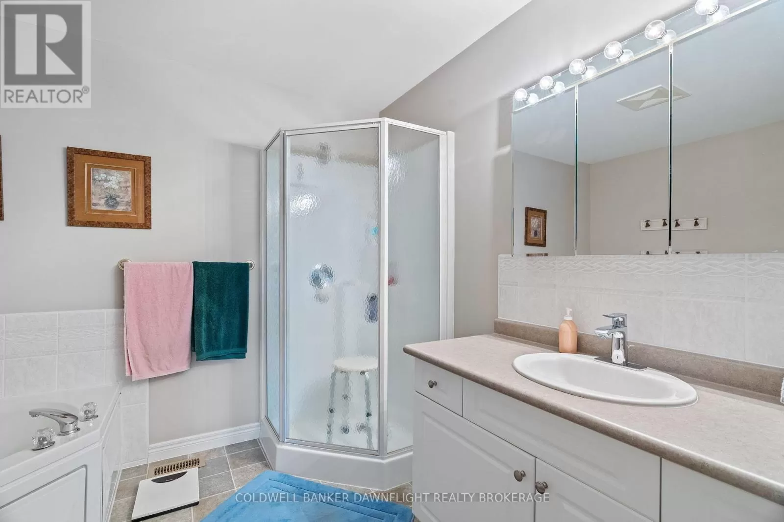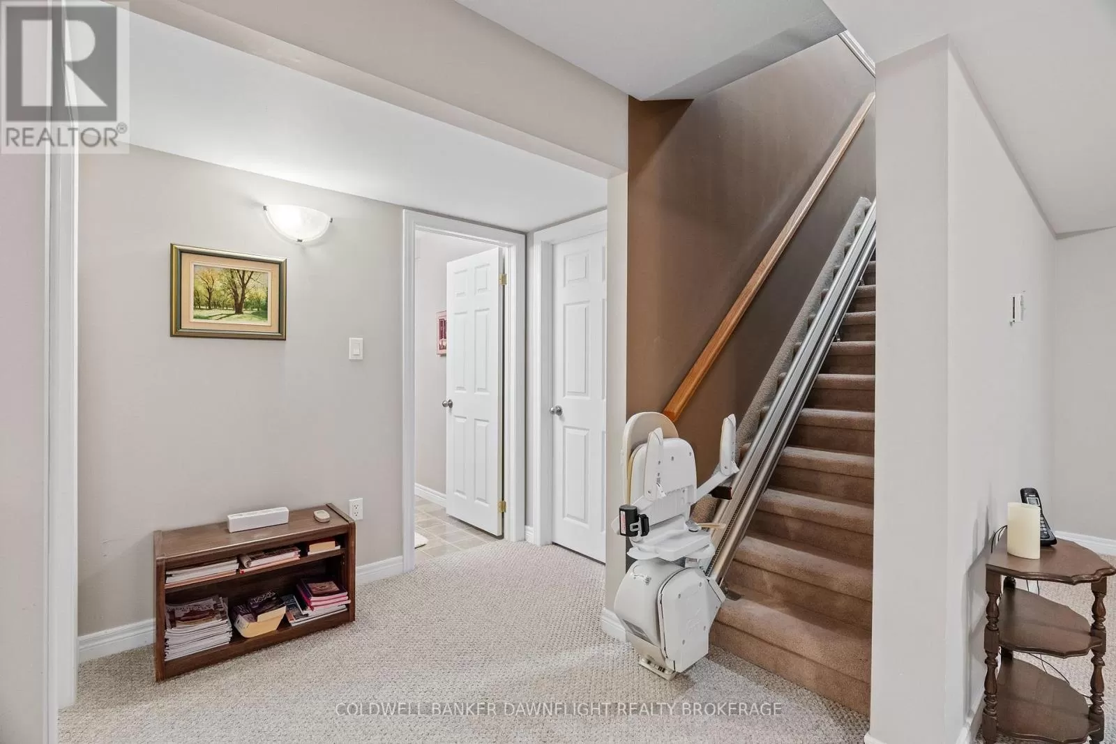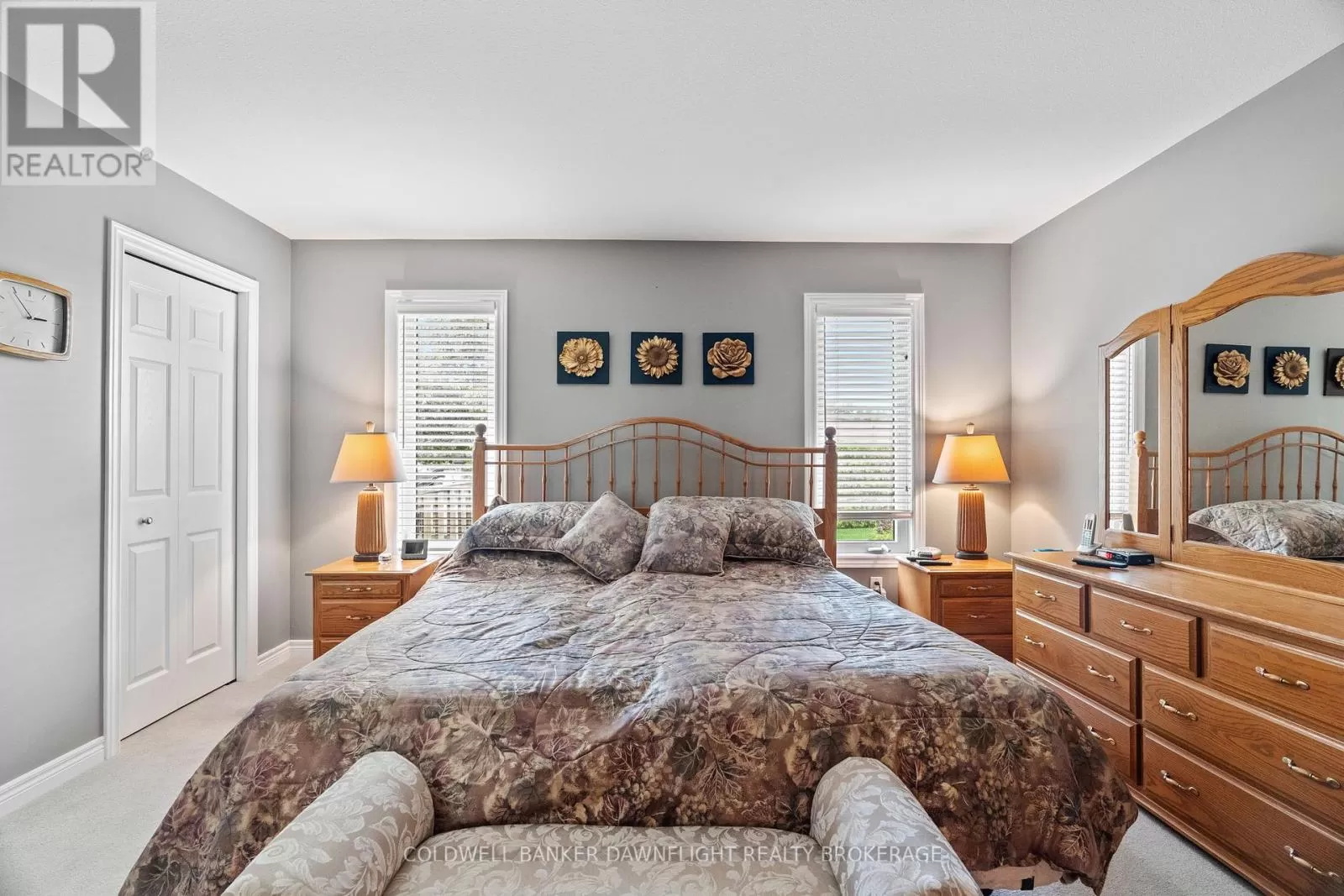 Cross Streets: Shadow Lane/Edward St. ** Directions: From Main St Exeter, turn east onto Huron St. then north onto Edward St. turn east onto Shadow Lane. Property is on your left hand side. Located in the desirable Shadow Lane subdivision, one of Exeter's most sought after townhouse communities, this well maintained bungalow offers comfortable and convenient single level living. The open concept layout creates a spacious environment ideal for both everyday living and entertaining, featuring a welcoming living room with a cozy gas fireplace.The primary bedroom includes a private four piece ensuite with a soaker tub and separate shower. A second bedroom or den, additional three piece bathroom, and main floor laundry add to the home's functionality and ease of living.A large rear deck, surrounded by mature landscaping, provides a private setting for outdoor relaxation or entertaining. The finished lower level offers a generous recreation room with a second gas fireplace, along with an additional bedroom and bathroomideal for guests or extended family.An oversized single car garage allows ample space for parking and extra storage. Enjoy the comfort of efficient gas heat and central air, with low monthly maintenance fees that cover lawn care and snow removal. A perfect choice for those seeking the benefits of a mature lifestyle in a quiet, well kept community. (id:27476)