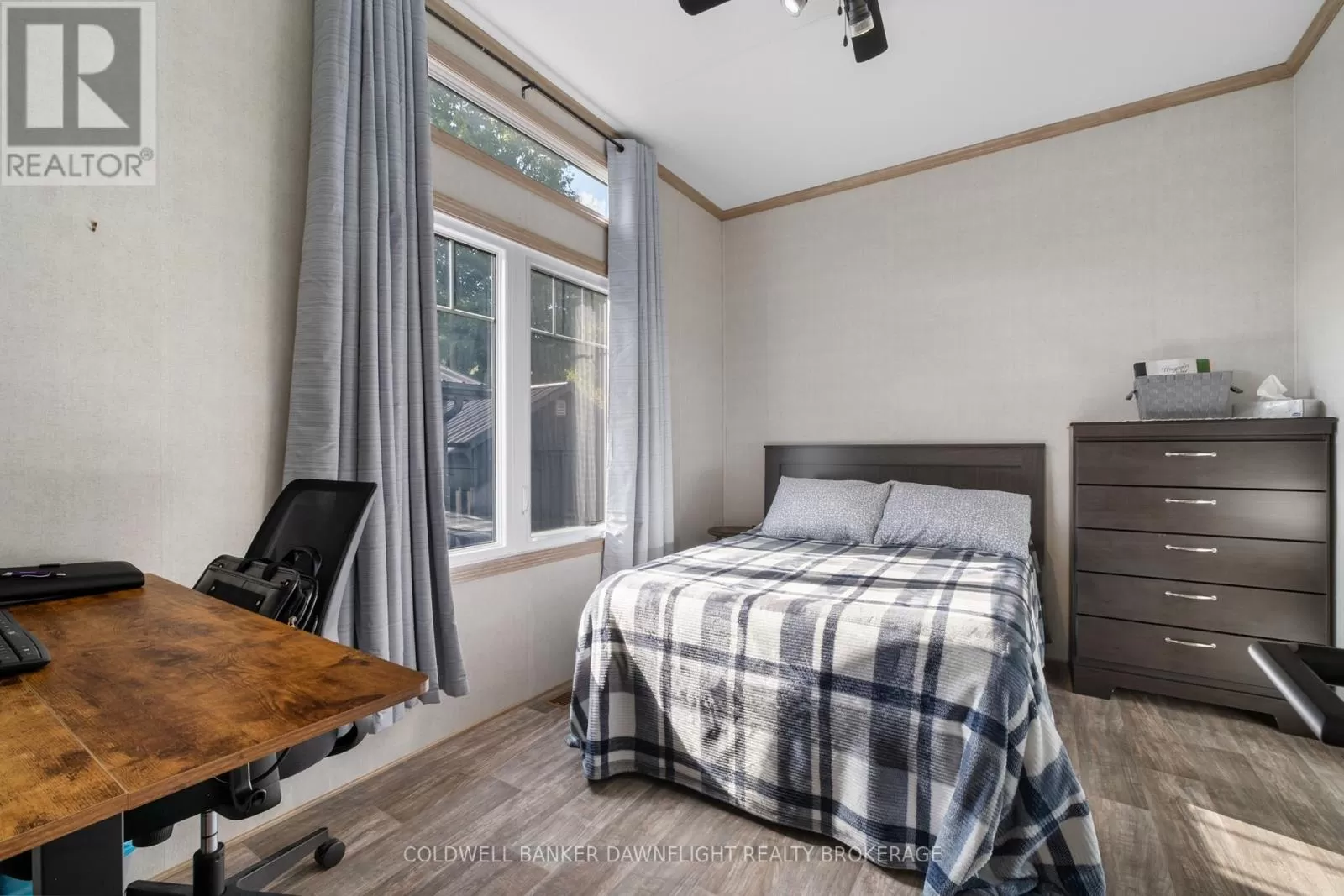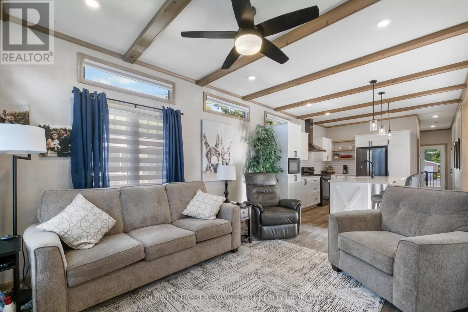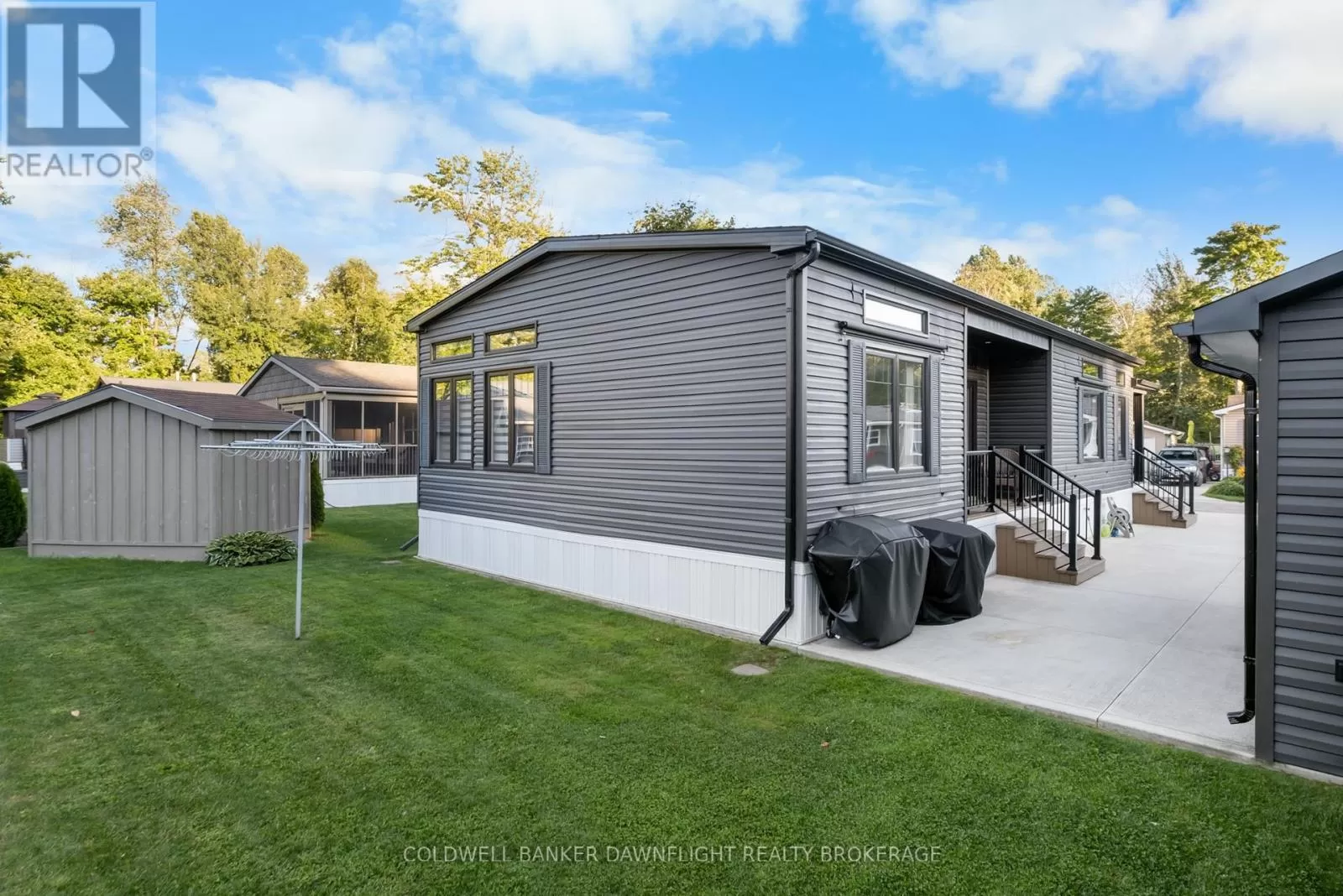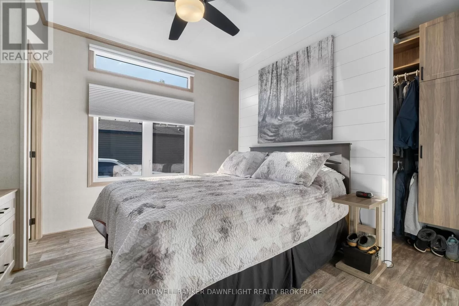 Cross Streets: Hwy 83 - Dashwood Road. ** Directions: Take Dashwood Road (Hwy 83) west from Dashwood to 36501 Dashwood Road. Welcome to Birchbark Estates, where this beautifully maintained Northlander home, built in 2019, offers 1,012 sq. ft. of comfortable living just minutes from Grand Bend and the shores of Lake Huron. The open-concept main floor features a bright white kitchen with quartz countertops, a spacious island with seating for four, and a welcoming living room complete with an electric fireplace and shiplap surround. The home includes two bedrooms, highlighted by a primary suite with a walk-in closet with built-ins, a second electric fireplace with matching shiplap detail, and a private 4-piece ensuite with a walk-in shower and double vanity. A second full bath and a well-appointed laundry room with built-ins add convenience. Outdoor living is enhanced by a large covered front porch, perfect for entertaining, along with a 10x10 garden shed and an insulated 12x18 garage. Residents enjoy a monthly fee of $445, which covers road maintenance, snow removal, garbage, water, and sewer. An additional parking area is available for trailers, campers, and boats. The community also offers optional access to an indoor pool and fitness facility. Additional features include a forced-air gas furnace, central air, and even the option to drive battery-powered golf carts throughout the neighbourhood. (id:27476)