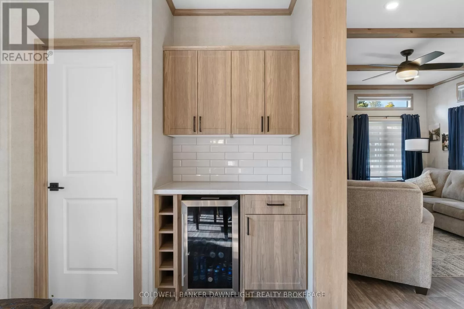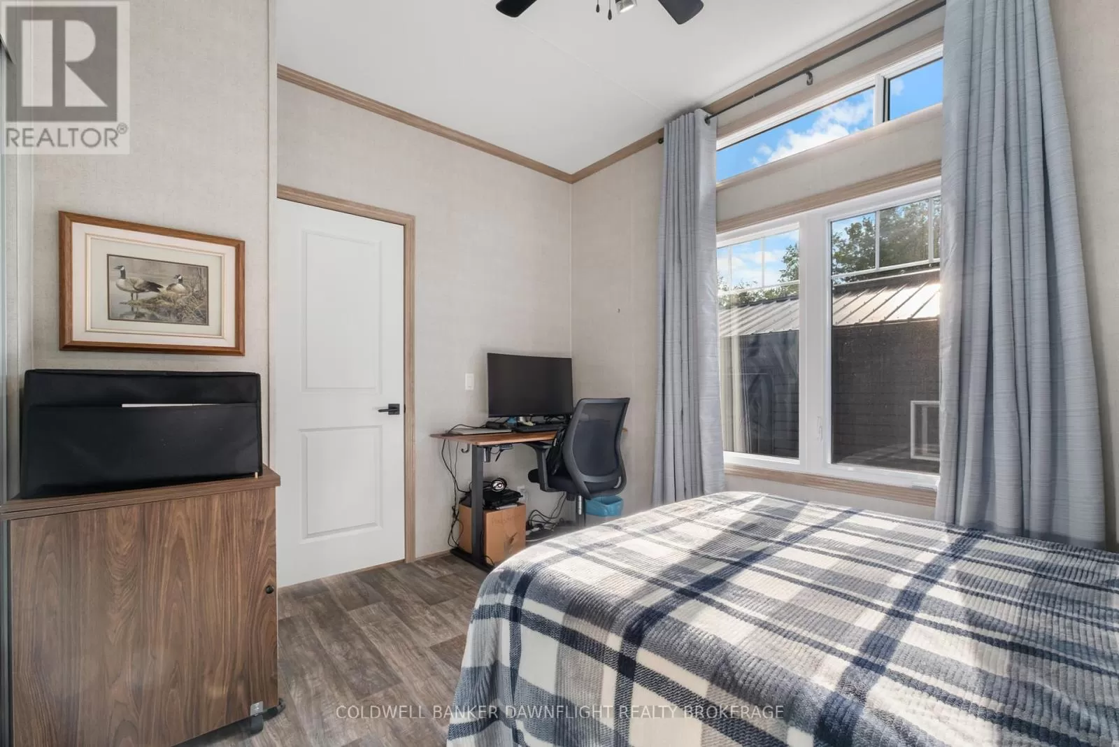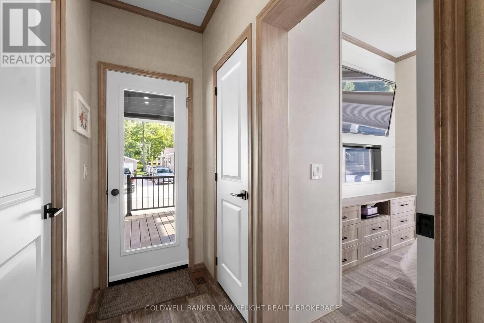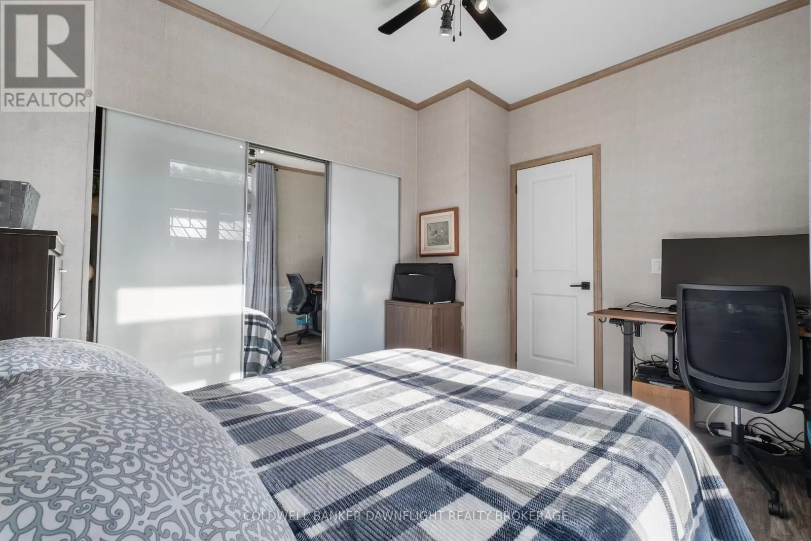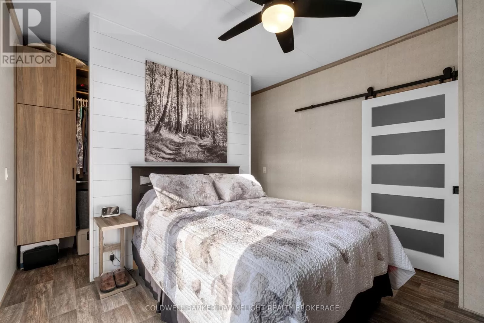Cross Streets: Hwy 83 - Dashwood Road. ** Directions: Take Dashwood Road (Hwy 83) west from Dashwood to 36501 Dashwood Road. Welcome to Birchbark Estates, where this beautifully maintained Northlander home, built in 2019, offers 1,012 sq. ft. of comfortable living just minutes from Grand Bend and the shores of Lake Huron. The open-concept main floor features a bright white kitchen with quartz countertops, a spacious island with seating for four, and a welcoming living room complete with an electric fireplace and shiplap surround. The home includes two bedrooms, highlighted by a primary suite with a walk-in closet with built-ins, a second electric fireplace with matching shiplap detail, and a private 4-piece ensuite with a walk-in shower and double vanity. A second full bath and a well-appointed laundry room with built-ins add convenience. Outdoor living is enhanced by a large covered front porch, perfect for entertaining, along with a 10x10 garden shed and an insulated 12x18 garage. Residents enjoy a monthly fee of $445, which covers road maintenance, snow removal, garbage, water, and sewer. An additional parking area is available for trailers, campers, and boats. The community also offers optional access to an indoor pool and fitness facility. Additional features include a forced-air gas furnace, central air, and even the option to drive battery-powered golf carts throughout the neighbourhood. (id:27476)
