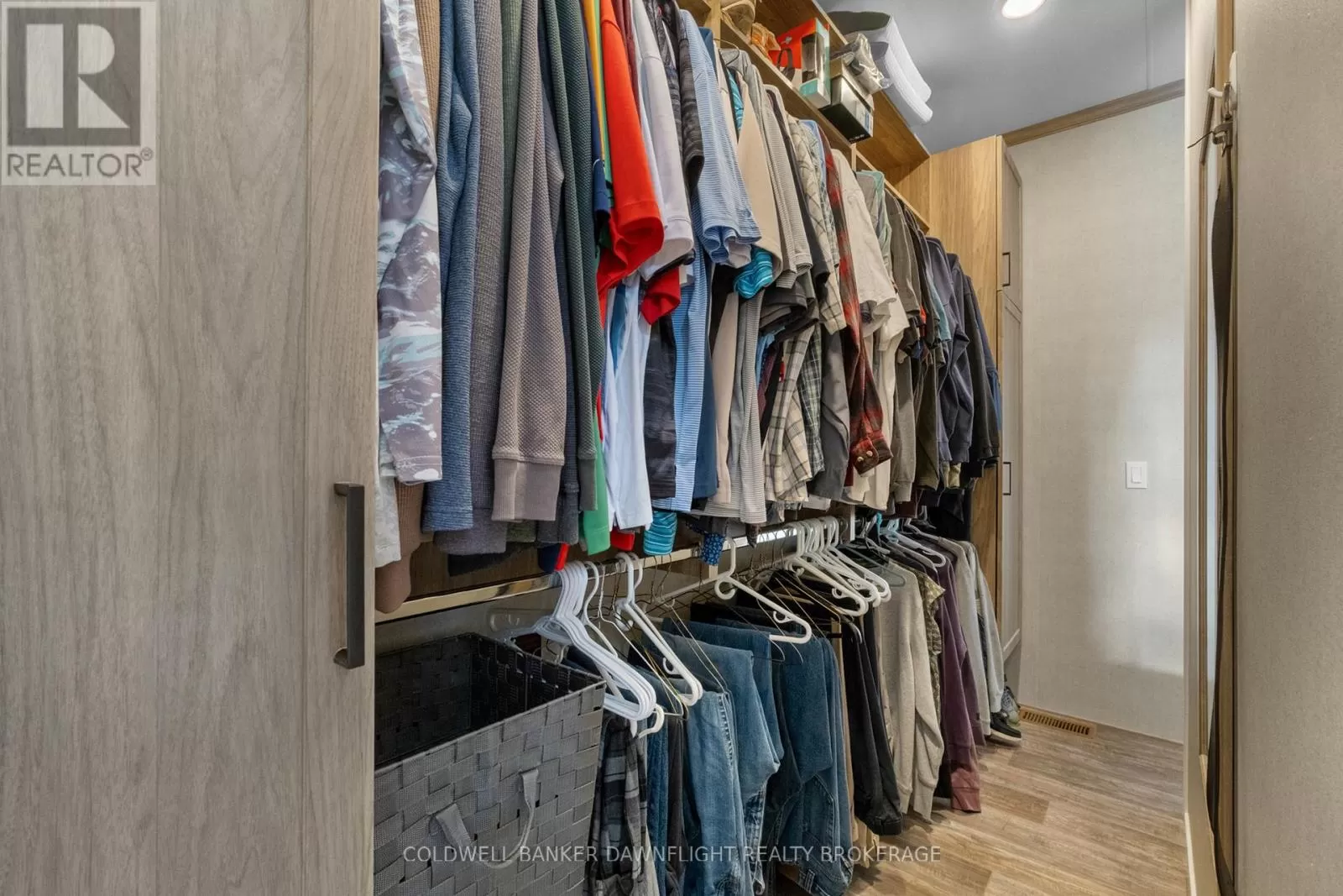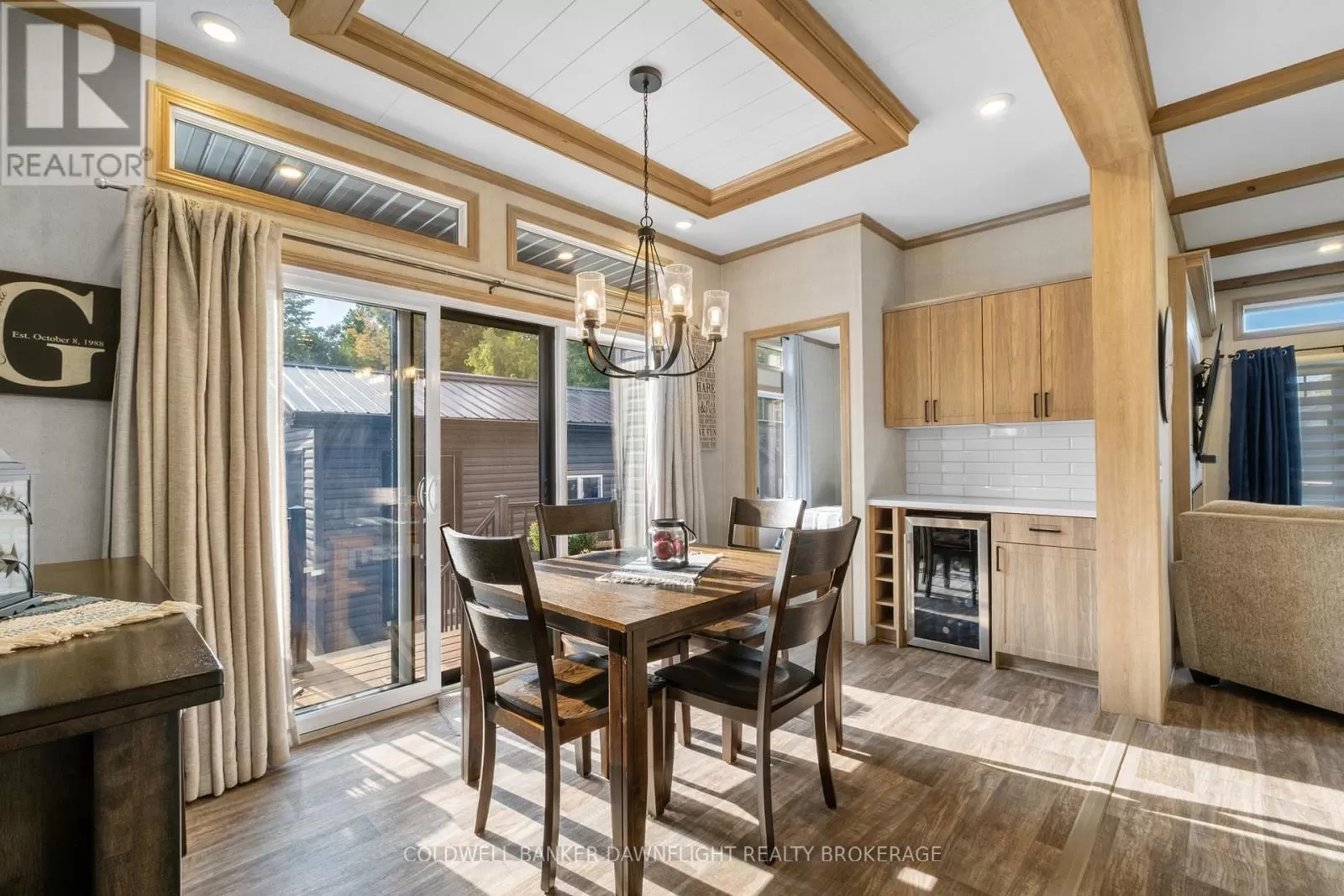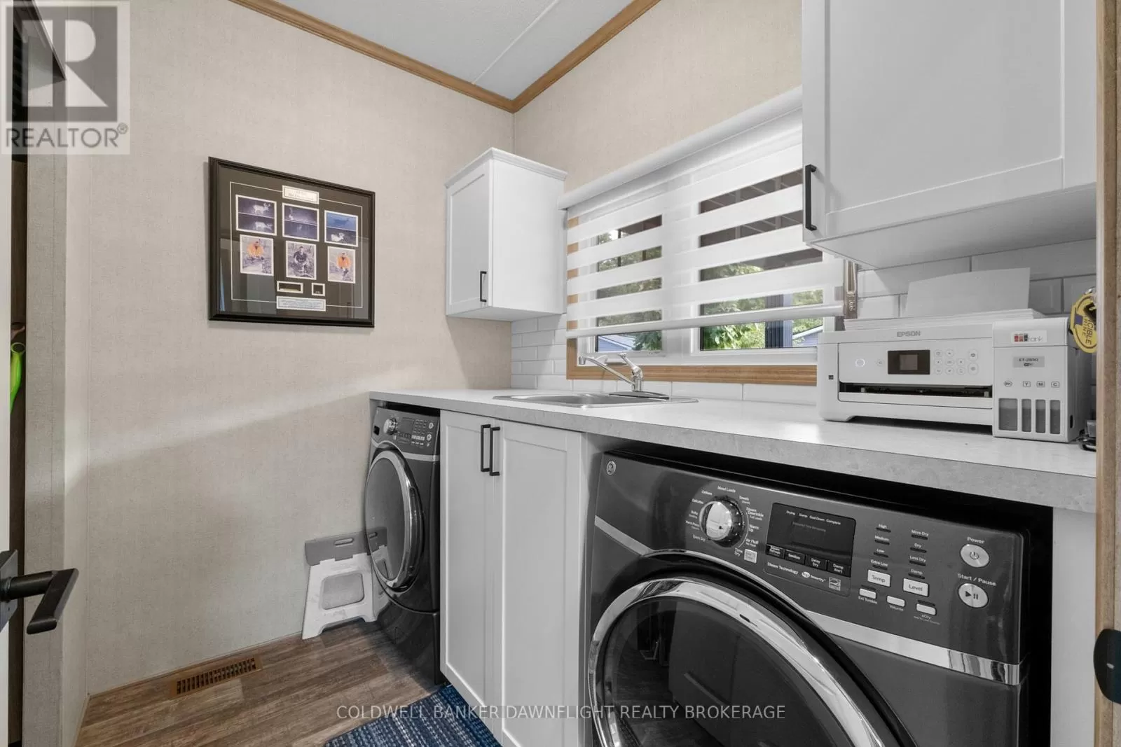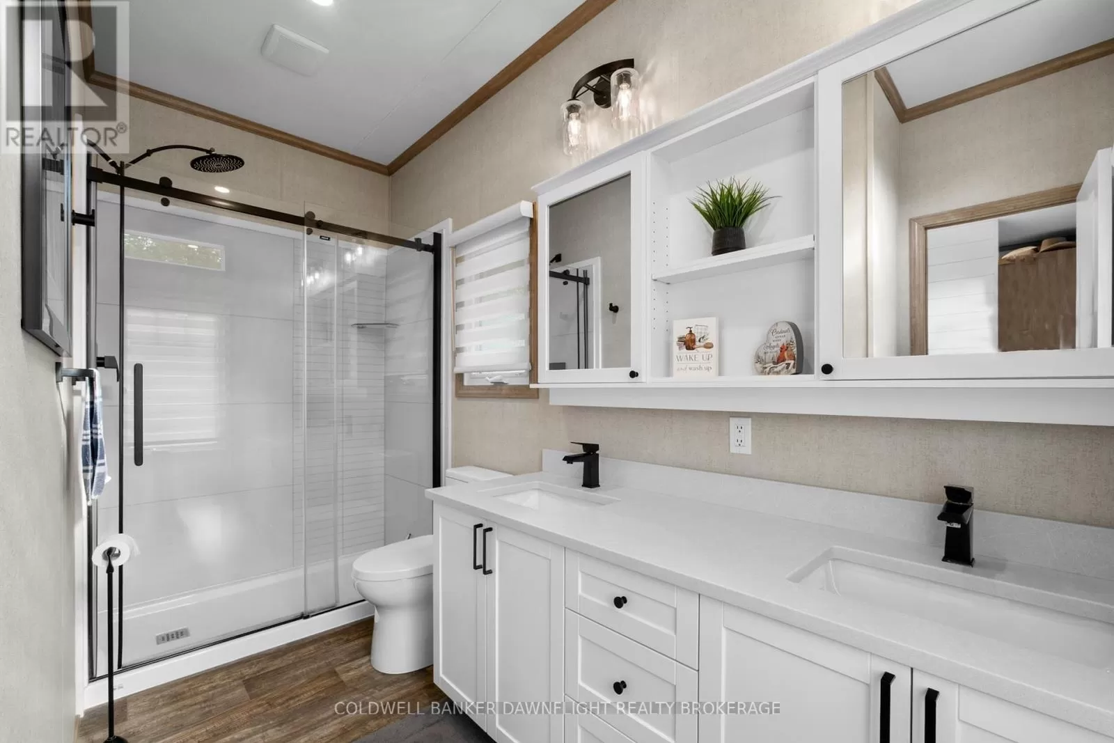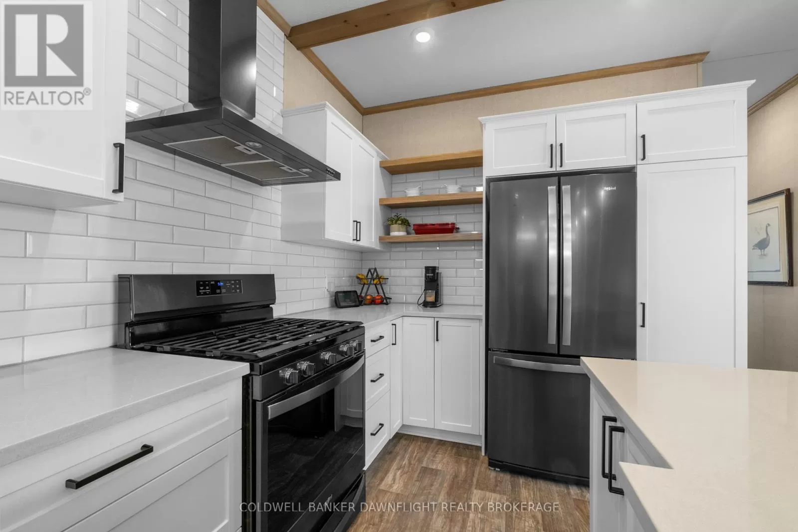Cross Streets: Hwy 83 - Dashwood Road. ** Directions: Take Dashwood Road (Hwy 83) west from Dashwood to 36501 Dashwood Road. Welcome to Birchbark Estates, where this beautifully maintained Northlander home, built in 2019, offers 1,012 sq. ft. of comfortable living just minutes from Grand Bend and the shores of Lake Huron. The open-concept main floor features a bright white kitchen with quartz countertops, a spacious island with seating for four, and a welcoming living room complete with an electric fireplace and shiplap surround. The home includes two bedrooms, highlighted by a primary suite with a walk-in closet with built-ins, a second electric fireplace with matching shiplap detail, and a private 4-piece ensuite with a walk-in shower and double vanity. A second full bath and a well-appointed laundry room with built-ins add convenience. Outdoor living is enhanced by a large covered front porch, perfect for entertaining, along with a 10x10 garden shed and an insulated 12x18 garage. Residents enjoy a monthly fee of $445, which covers road maintenance, snow removal, garbage, water, and sewer. An additional parking area is available for trailers, campers, and boats. The community also offers optional access to an indoor pool and fitness facility. Additional features include a forced-air gas furnace, central air, and even the option to drive battery-powered golf carts throughout the neighbourhood. (id:27476)