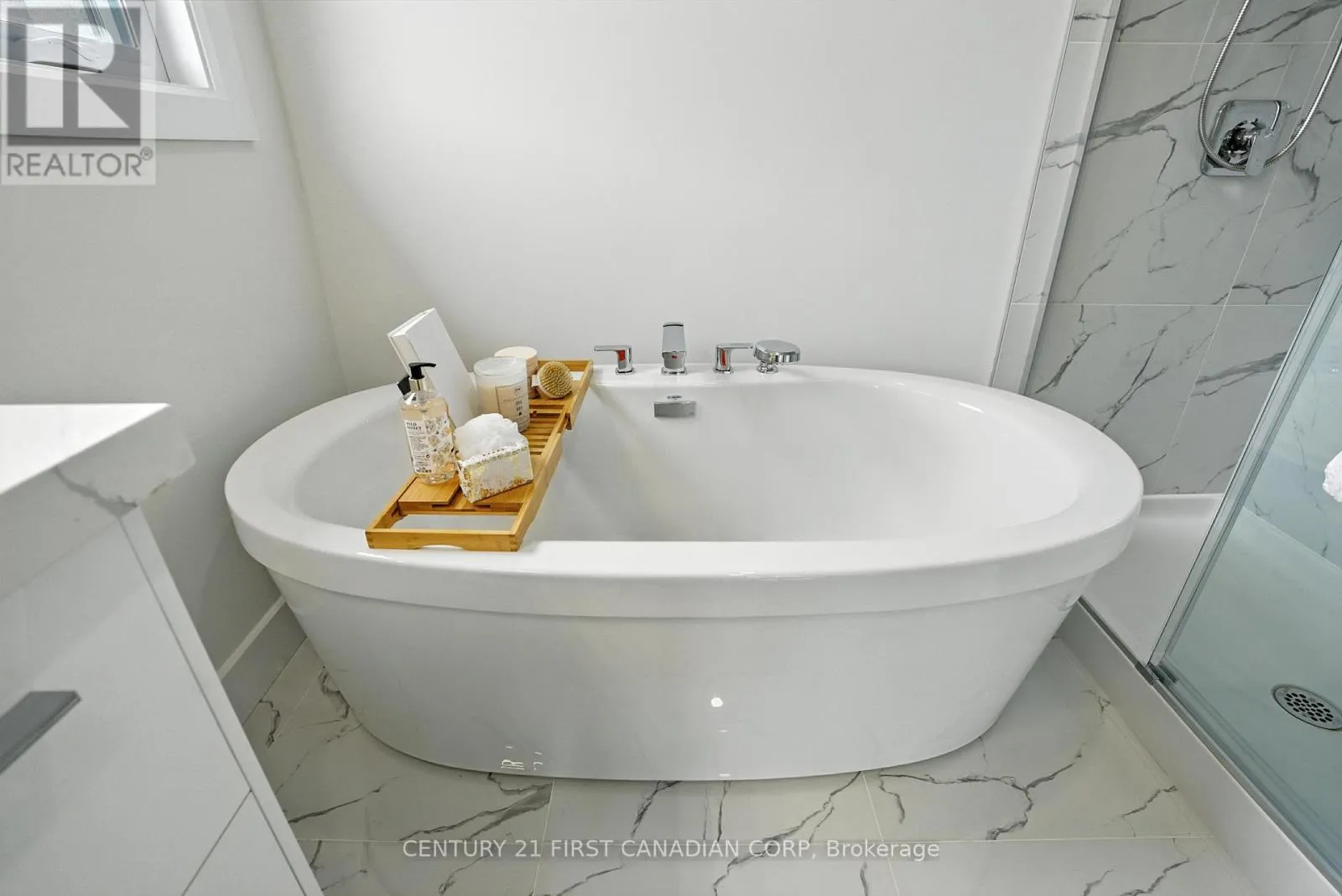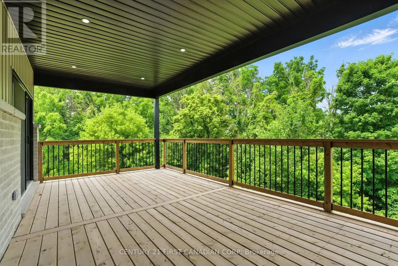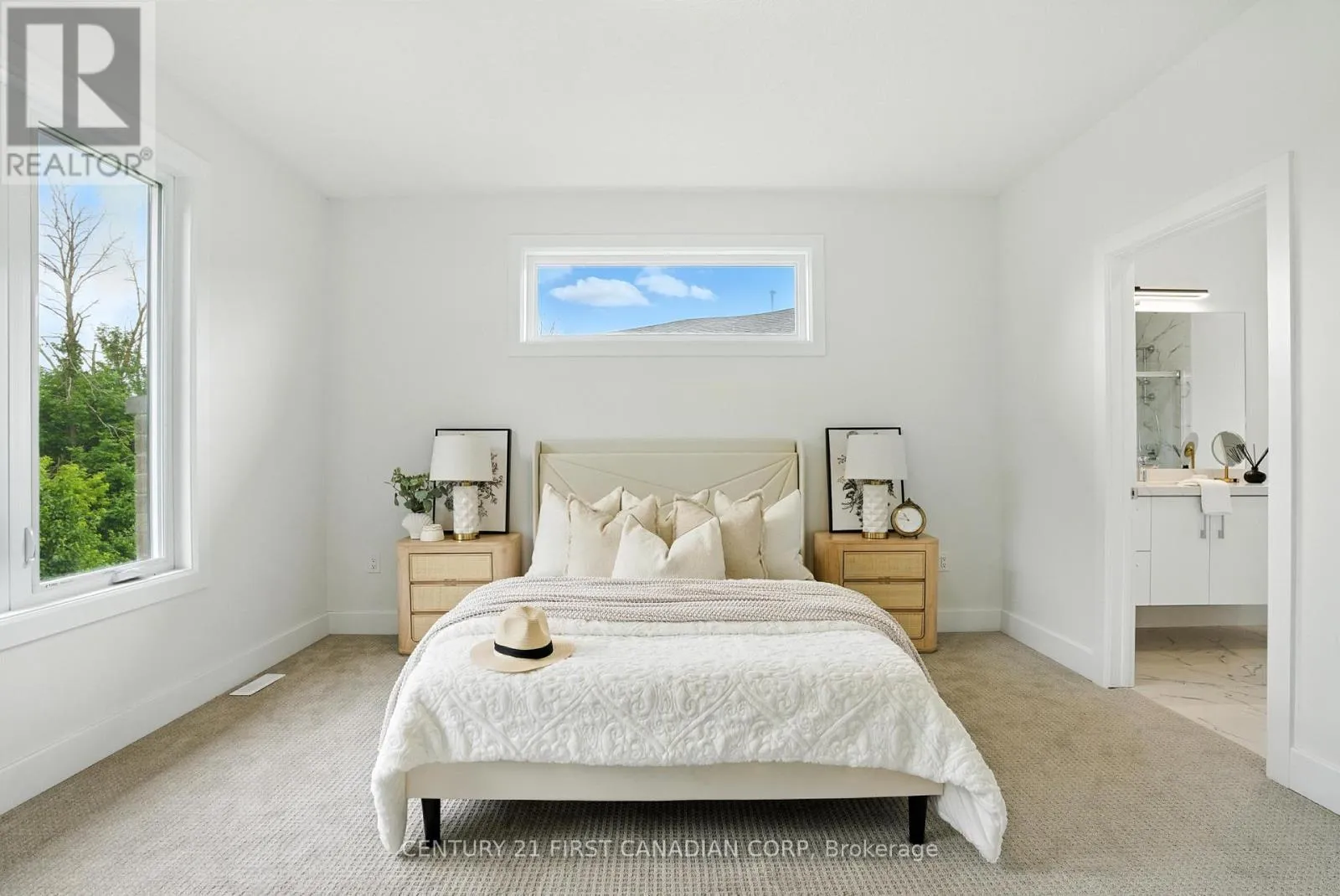 Cross Streets: Church Street. ** Directions: Travelling north on Main St S/ON-4 N, turn left onto Church St. Follow Church St, past William St, Turn right onto Greene, Property is on the right. Welcome to this beautifully designed 1921 sq ft bungalow, expertly built and covered by full Tarion warranty, offering quality and peace of mind. This home combines elegant style with practical living, ideal for families or anyone looking for one-floor living with room to grow. From the moment you step inside, you'll appreciate the open concept layout, highlighted by 9 ft ceilings throughout and a stunning 10 ft tray ceiling in the living room. The space is warm and inviting with a modern electric fireplace and direct access to a private, pressure-treated deck perfect for outdoor enjoyment. The kitchen is a true showstopper, featuring quartz countertops, matching quartz backsplash slabs, and sleek modern finishes that will impress any home chef. The primary bedroom offers a private retreat with a spacious walk-in closet and a 4-piece ensuite that includes a luxurious soaker tub. Two additional generously sized bedrooms and a well-appointed 4-piece main bathroom complete the main floor. Enjoy the convenience of main floor laundry, a double car garage, and the durability of a concrete driveway. The walk-out basement provides fantastic potential to expand your living space with room to add two more bedrooms, a full bath, and an oversized rec room to suit your families needs. With hardwood flooring throughout the main level and premium finishes in every room, this home is the perfect blend of style and function This is your chance to own a brand-new, thoughtfully built home thats ready to welcome you. Contact us today to learn more! (id:27476)
