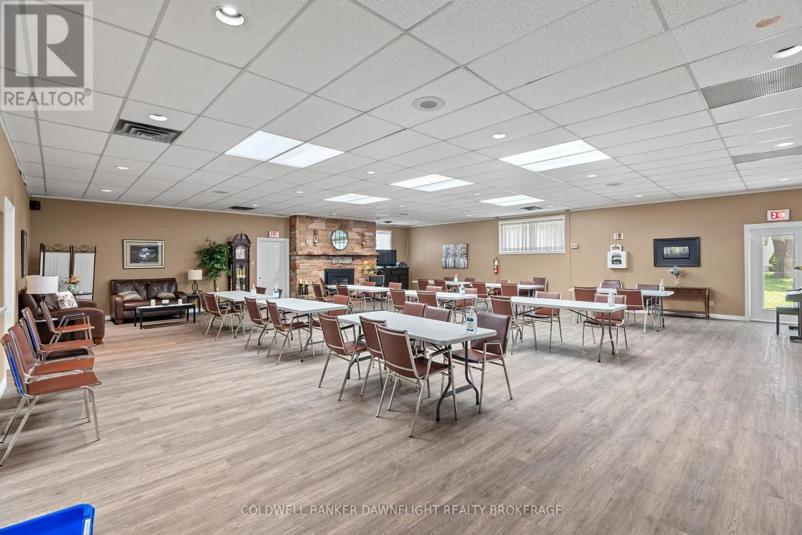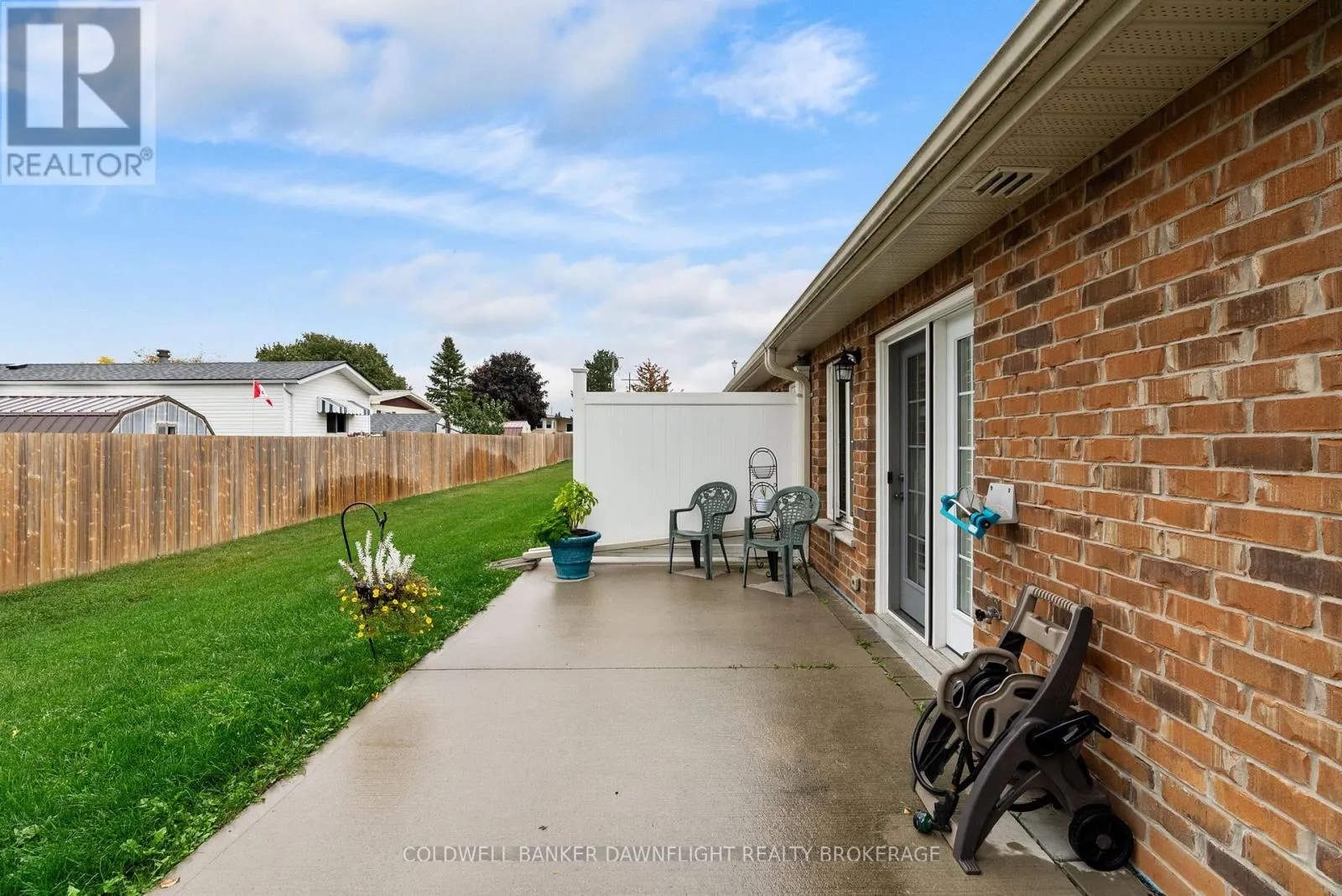 Cross Streets: Redford Drive and Devon Drive. ** Directions: From Main Street, turn east onto George St. Turn right onto Devon Drive. Unit is located on the left hand side of Devon Drive. Nestled in the heart of Exeter, Riverview Meadows offers the perfect blend of small-town charm, modern convenience, and peaceful rural surroundings. Ideally located just 30 minutes from London and only 15 minutes from the serene shores of Lake Huron, this adult-oriented community provides a relaxed and friendly atmosphere with easy access to healthcare, shopping, dining, golf courses, and scenic walking trails. This 1160 sq ft home offers easy, step-free access with no stairs at the entry which is ideal for convenience and accessibility. This beautifully maintained home features an open-concept layout that is both spacious and inviting. The kitchen boasts ample cabinetry, an updated backsplash, and a sit-up island perfect for casual dining or entertaining. The adjoining living and dining areas flow seamlessly together and includes a cozy gas fireplace which is ideal for relaxing evenings at home. The primary bedroom is generously sized and includes a walk-in closet and a private 3-piece ensuite. A second bedroom is conveniently located near the 4-piece main bath, making it perfect for guests. Step out onto the private patio area, perfect for enjoying a relaxing morning coffee or hosting a BBQ made easy with a convenient gas hookup. The attached garage provides convenient access to a generous amount of storage space located beneath the main floor. Additional upgrades include premium vinyl flooring and fresh paint, adding to the homes modern appeal. Residents of Riverview Meadows enjoy access to a wide array of community amenities, including a recreation hall with a kitchen, pool table, shuffleboard, library, a fitness room, outdoor shuffleboard courts, horseshoe pits, and a tranquil community pond perfect for socializing with neighbors and visiting family. This is more than a home - it's a lifestyle. Dont miss out on this incredible opportunity to be part of this vibrant and welcoming community! (id:27476)