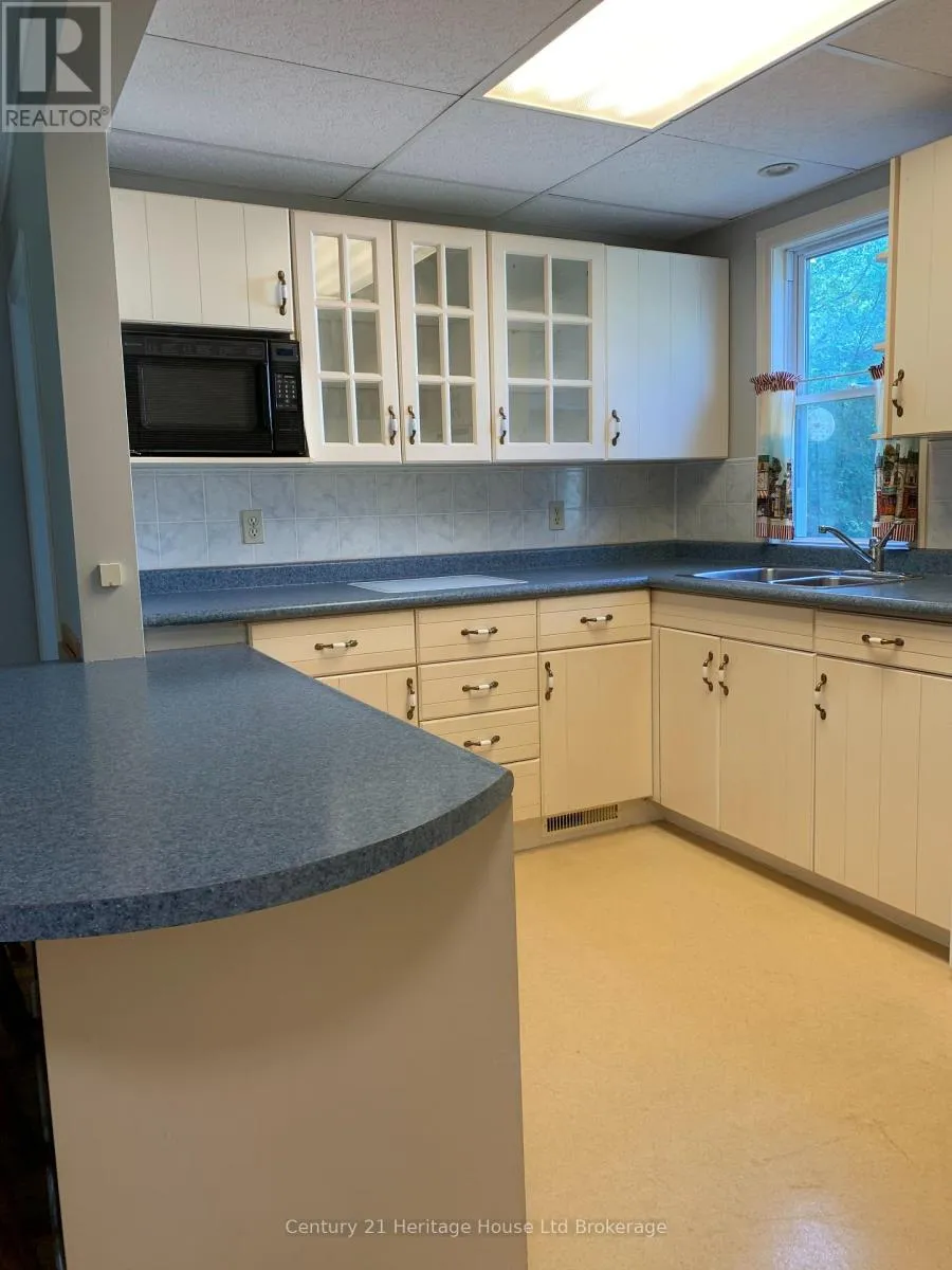 Cross Streets: Empress Ave and Algonquin Dr. ** Directions: Huron Park Road to Access Road to Empress Ave, Turn Right onto Algonguin. Charming & Affordable Home in a Park-Like Setting! This inviting 1.5-storey home offers the perfect blend of comfort and value. Featuring 3 bedrooms, including a main-floor primary, this property is ideal for families or downsizers alike. The bright living room opens to a deck overlooking a peaceful park, creating a relaxing space to unwind or entertain. The kitchen boasts ample cabinetry, a convenient breakfast bar, and comes fully equipped with appliances. A 4-piece bath completes the main floor. Upstairs, you'll find two additional bedrooms, extra storage, and a handy 2-piece bath. The finished basement adds even more living space with a large family room featuring a cozy gas fireplace, laundry area, and plenty of storage. Buyer Bonus! The seller is offering 1 year of paid land lease fees, to be paid upon closing - a fantastic incentive for your new home! (id:27476)