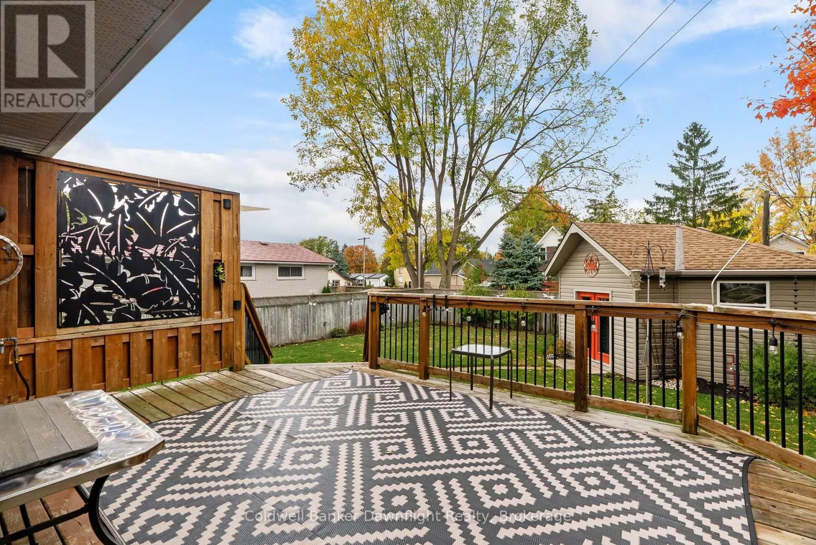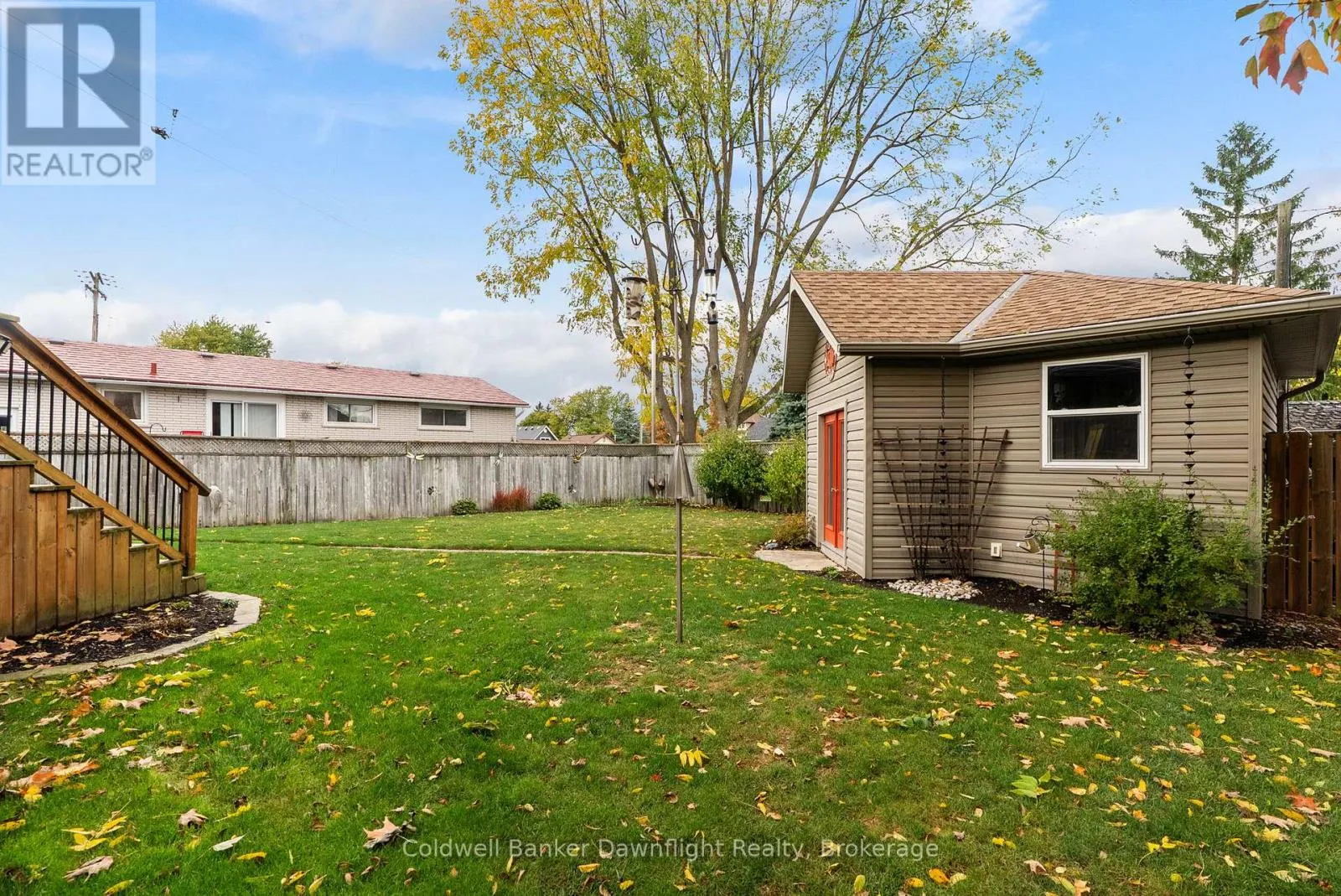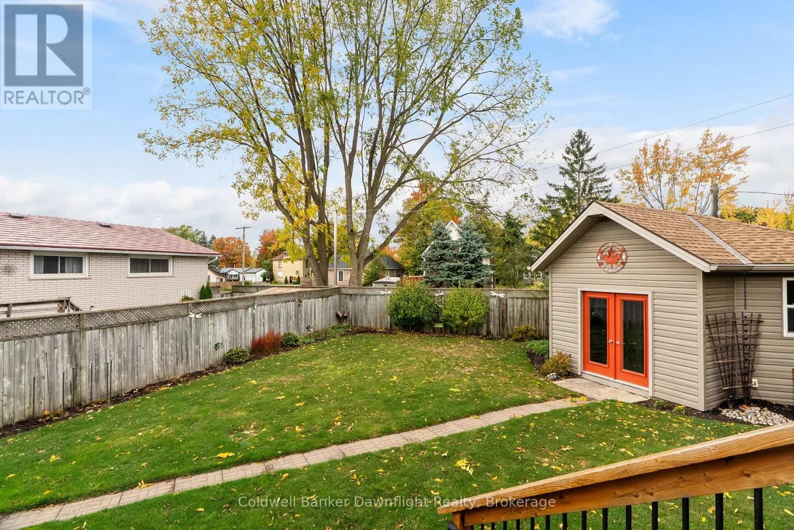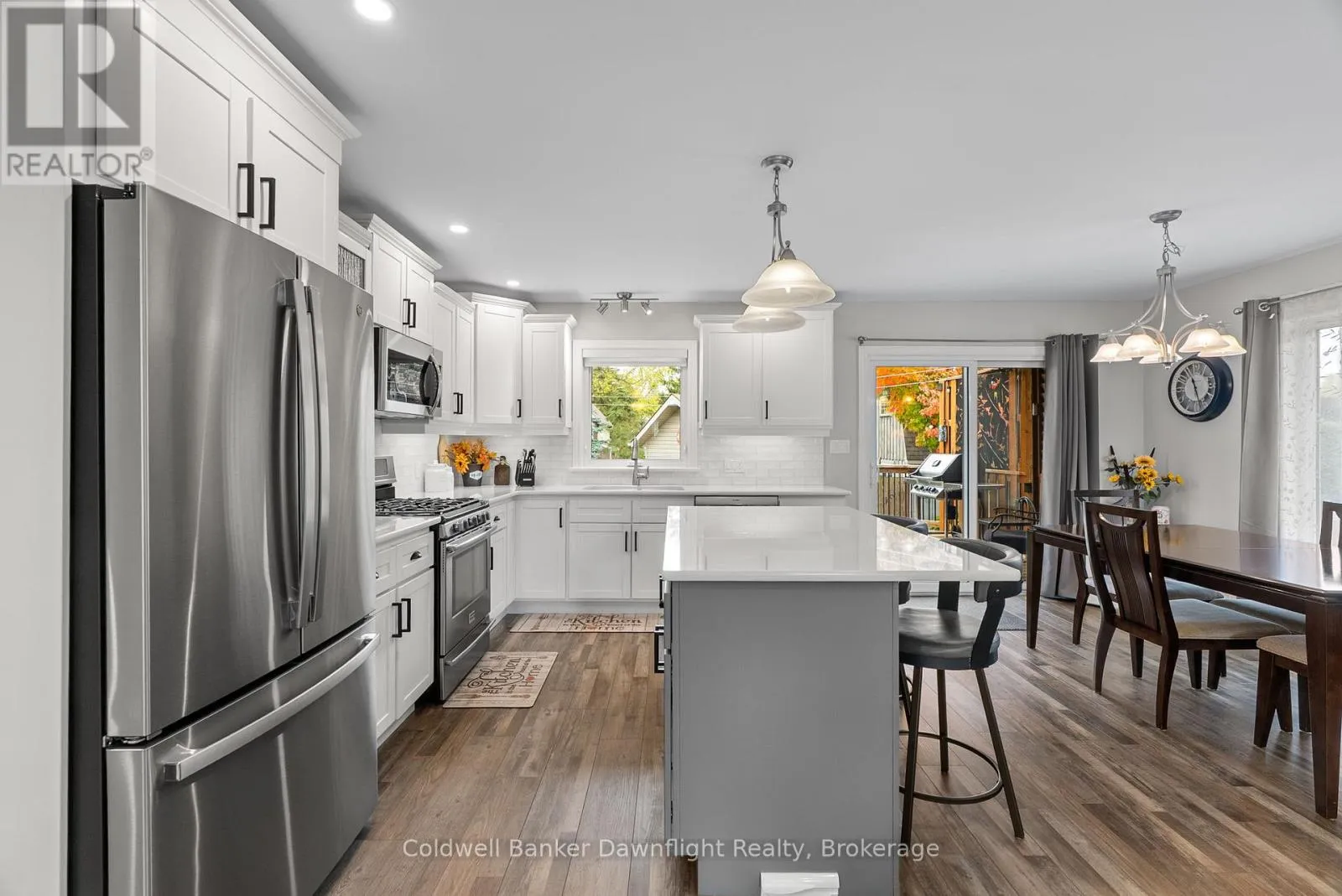 Cross Streets: Huron Street & Carling Street. ** Directions: Take Huron Street West, pass William Street & Property will be on your right hand side. Welcome home to this beautifully updated 5-bedroom, 2-bath bungalow that perfectly blends modern style with family comfort. The open-concept main level offers seamless flow between the living, dining, and kitchen areas-featuring stunning bright cabinets, quartz countertops, and updated stainless steel appliances. Durable vinyl plank flooring runs throughout, combining beauty and practicality.The main-floor primary suite includes a large walk-in closet and convenient 4pc bathroom next door, while the main-floor laundry room provides ample storage and everyday convenience. Step through the patio doors to a partially covered back deck, perfect for entertaining or extending your living space into the summer months. The fenced backyard is private and inviting, ideal for kids, pets, and gatherings.A true standout feature is the 18x18 detached workshop-complete with 100-amp service, heating, and cooling-making it the perfect year-round space for any craftsman, hobbyist, or small business owner. The fully finished basement offers tall ceilings, lots of natural light, and a cozy gas fireplace for winter evenings. It includes two additional bedrooms, a modern 4-piece bath, and plenty of storage. Outside, you'll find a 1.5-car garage and a 6-car concrete driveway. Conveniently located near Victoria Park, Precious Blood School, South Huron Hospital, and local amenities, this home has everything your growing family needs-space, comfort, and an unbeatable location. Don't miss your chance to make this beautiful property your new home. (id:27476)