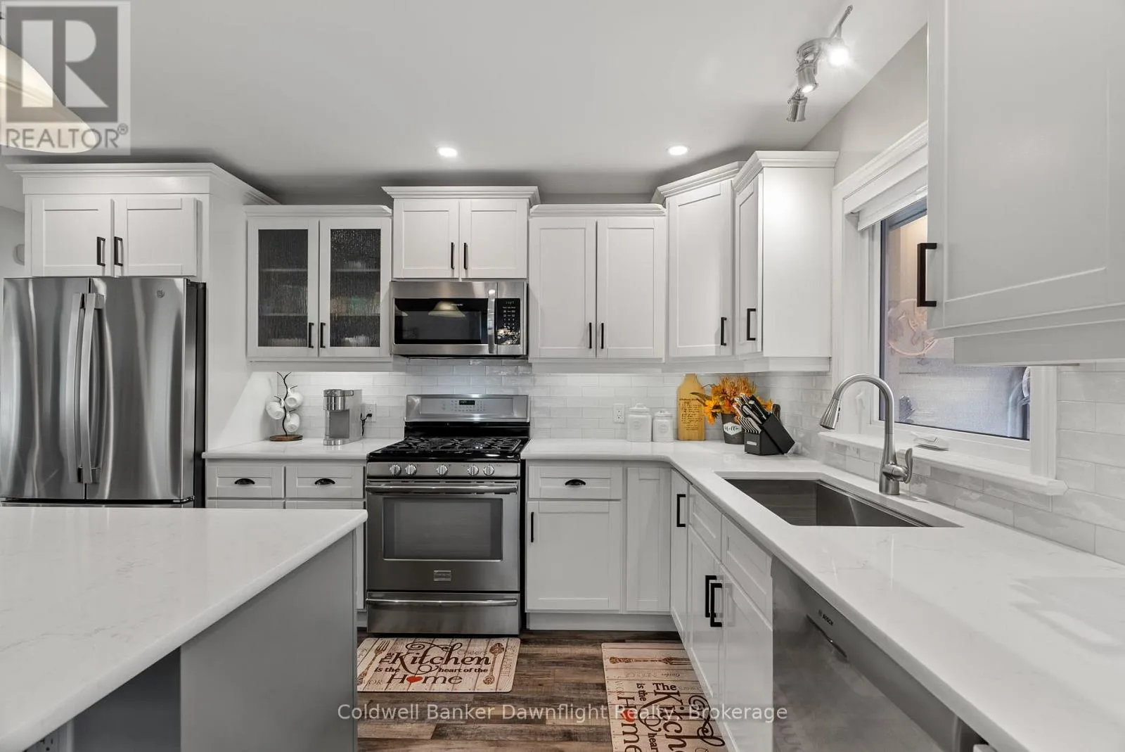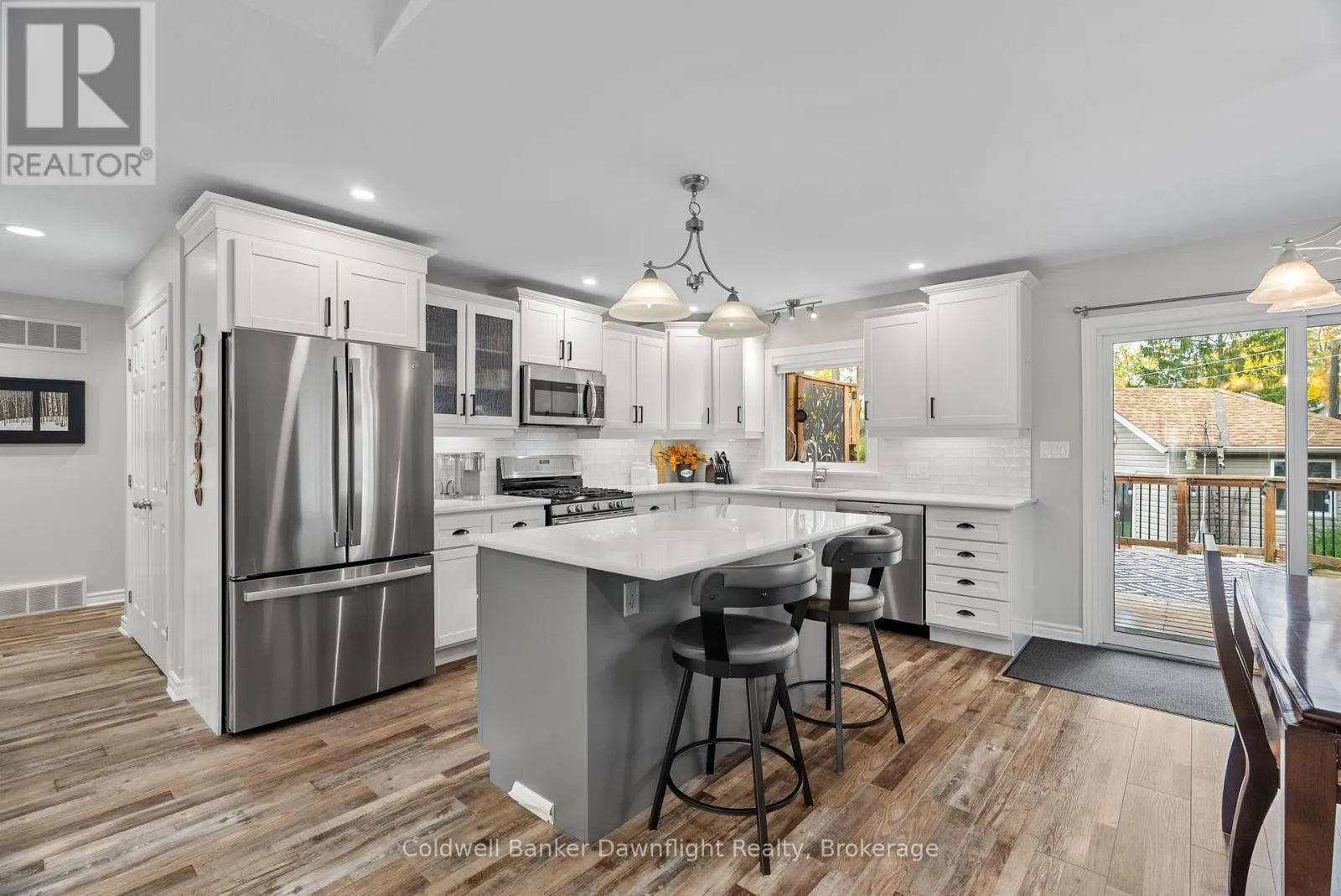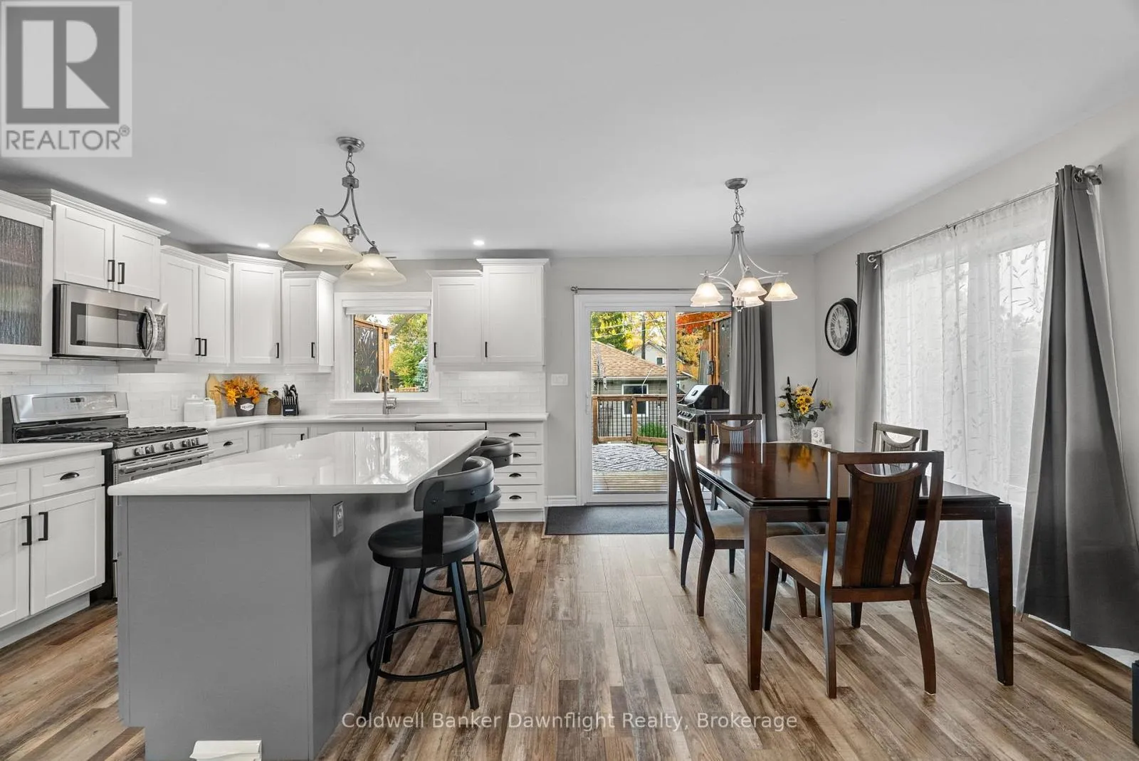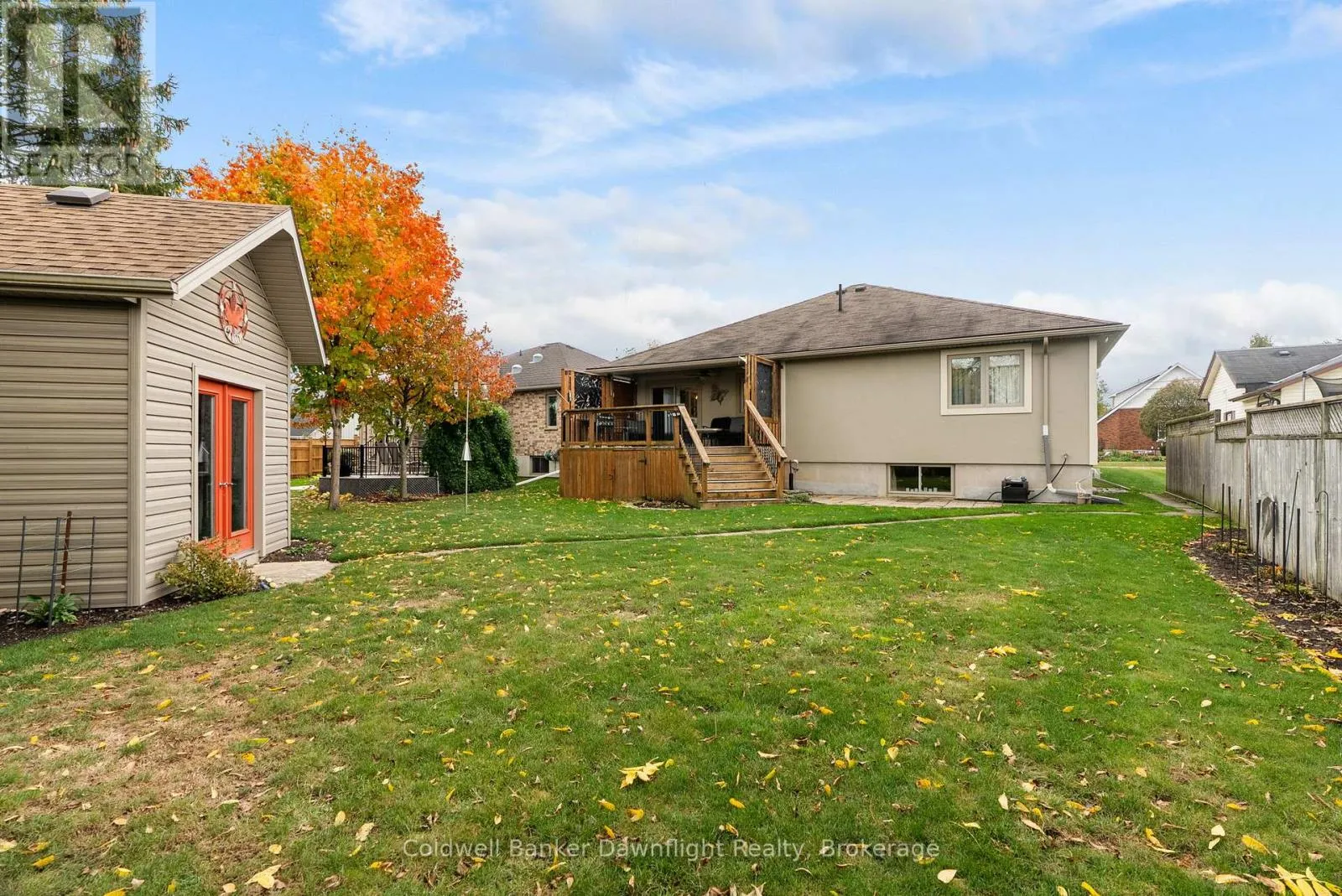 Cross Streets: Huron Street & Carling Street. ** Directions: Take Huron Street West, pass William Street & Property will be on your right hand side. Welcome home to this beautifully updated 5-bedroom, 2-bath bungalow that perfectly blends modern style with family comfort. The open-concept main level offers seamless flow between the living, dining, and kitchen areas-featuring stunning bright cabinets, quartz countertops, and updated stainless steel appliances. Durable vinyl plank flooring runs throughout, combining beauty and practicality.The main-floor primary suite includes a large walk-in closet and convenient 4pc bathroom next door, while the main-floor laundry room provides ample storage and everyday convenience. Step through the patio doors to a partially covered back deck, perfect for entertaining or extending your living space into the summer months. The fenced backyard is private and inviting, ideal for kids, pets, and gatherings.A true standout feature is the 18x18 detached workshop-complete with 100-amp service, heating, and cooling-making it the perfect year-round space for any craftsman, hobbyist, or small business owner. The fully finished basement offers tall ceilings, lots of natural light, and a cozy gas fireplace for winter evenings. It includes two additional bedrooms, a modern 4-piece bath, and plenty of storage. Outside, you'll find a 1.5-car garage and a 6-car concrete driveway. Conveniently located near Victoria Park, Precious Blood School, South Huron Hospital, and local amenities, this home has everything your growing family needs-space, comfort, and an unbeatable location. Don't miss your chance to make this beautiful property your new home. (id:27476)