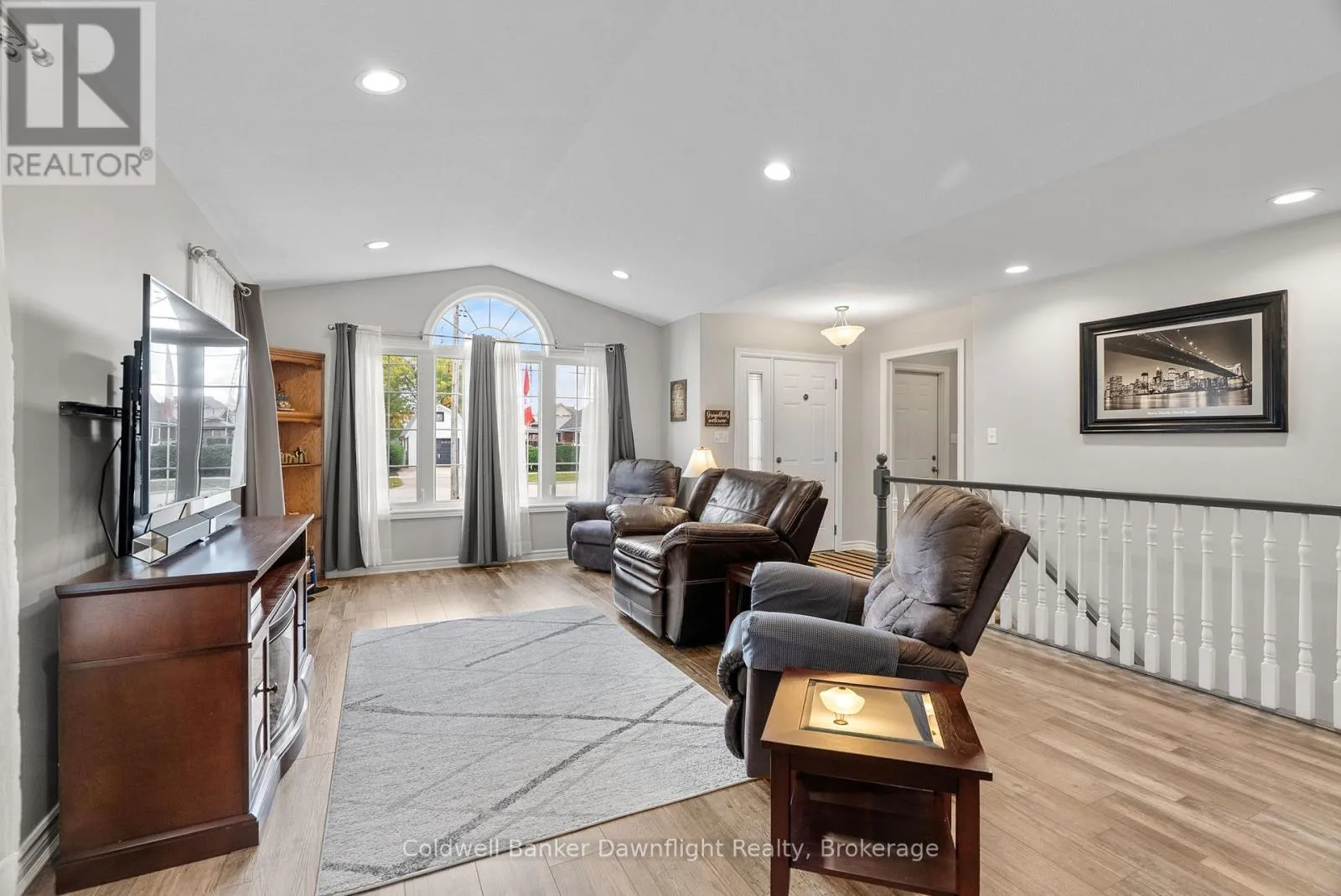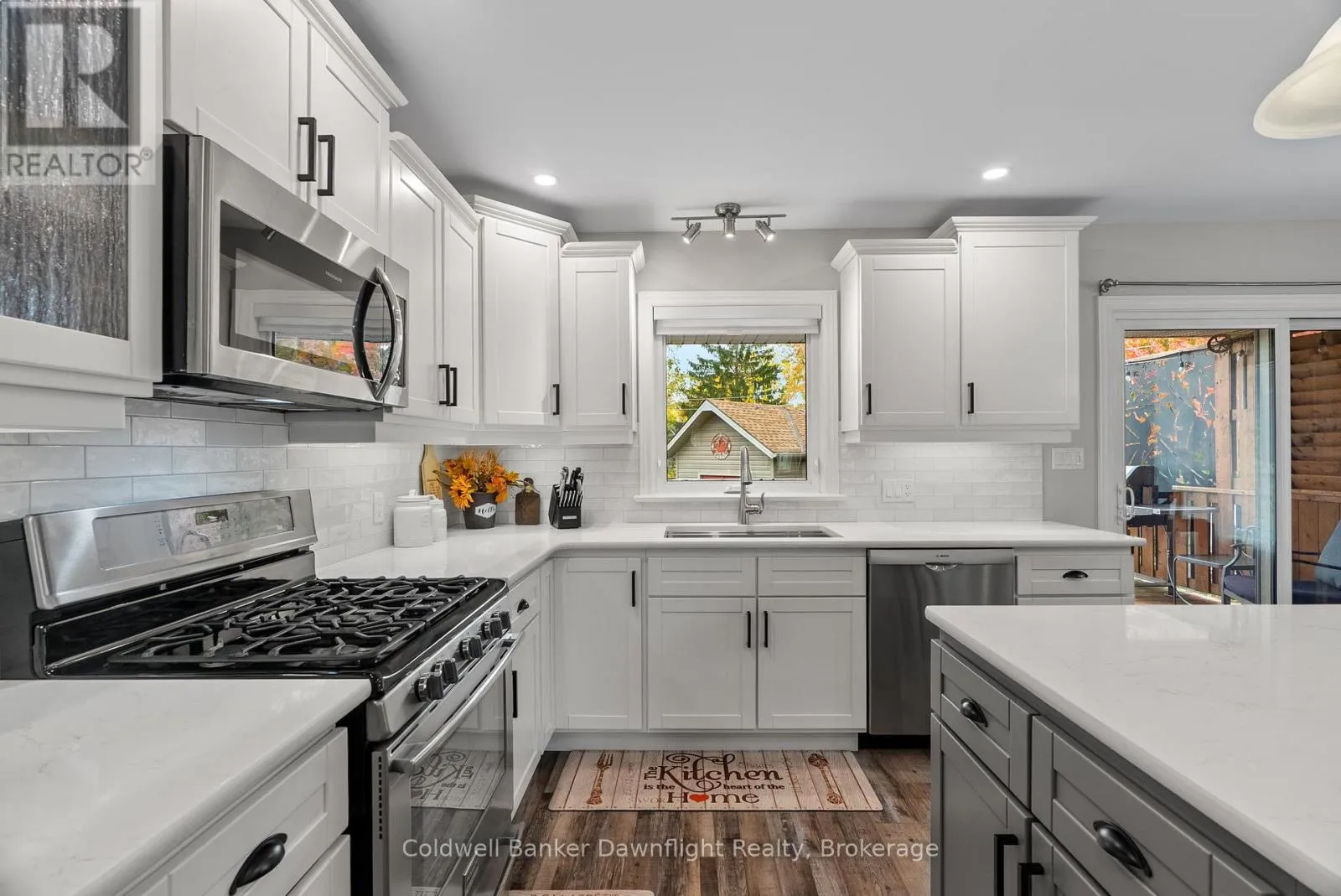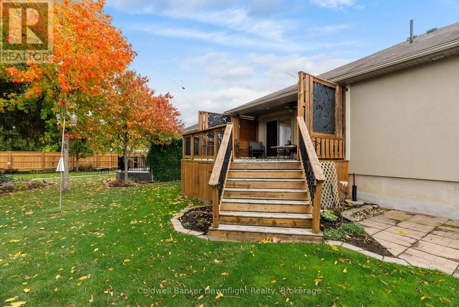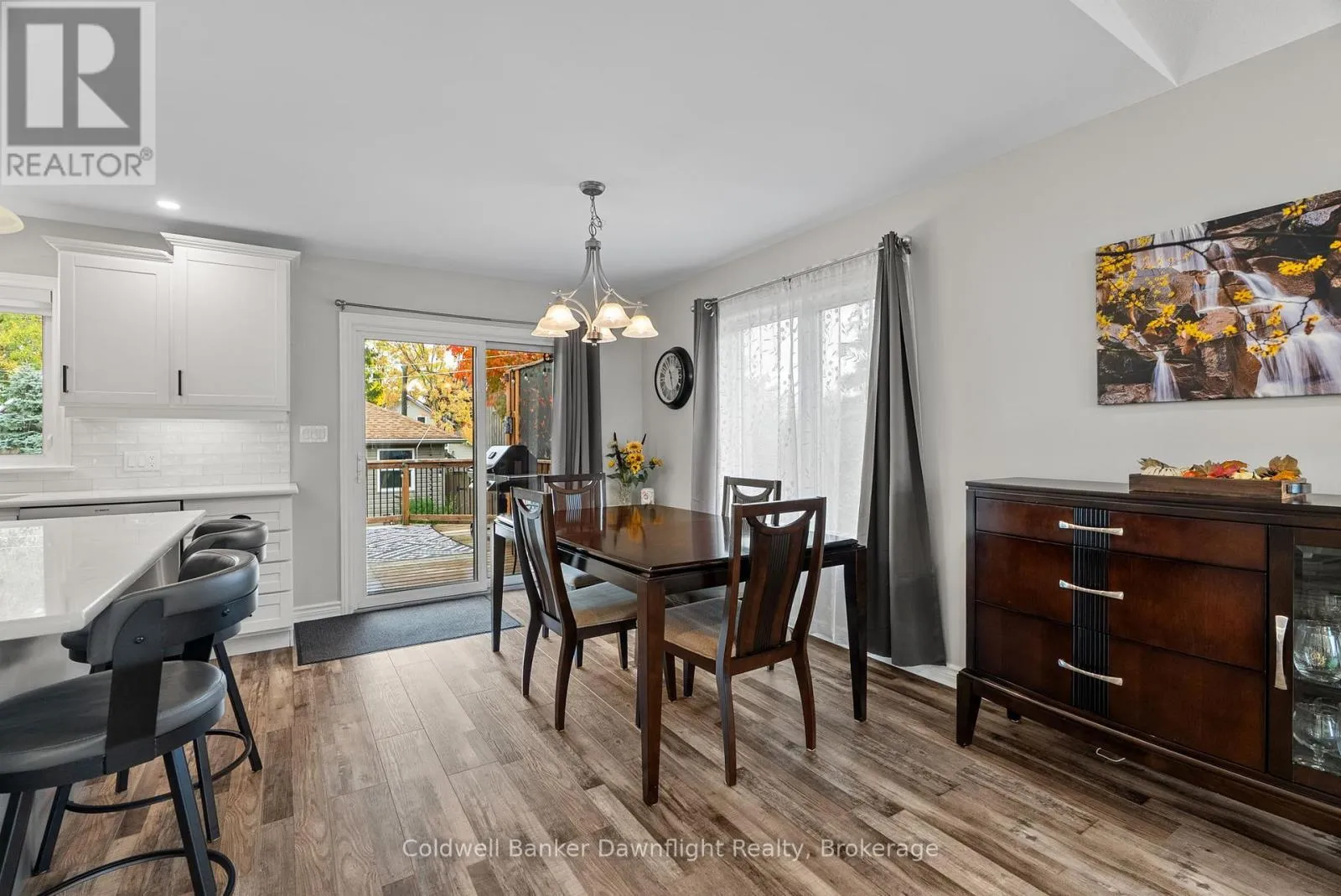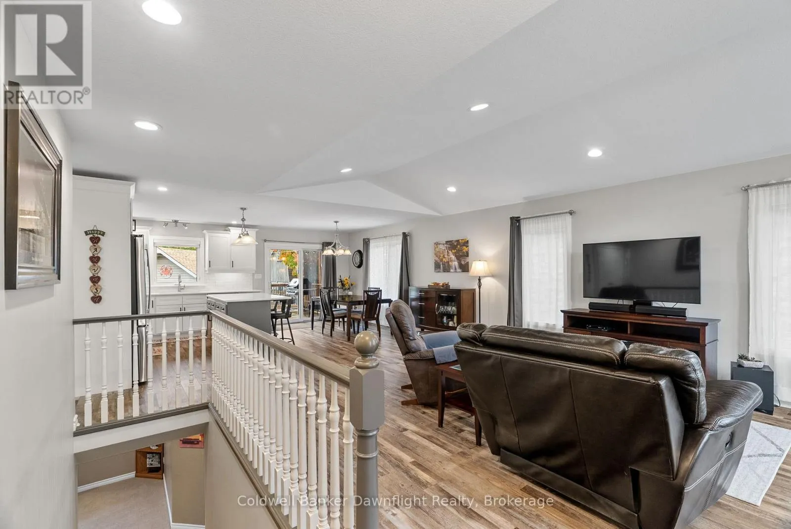 Cross Streets: Huron Street & Carling Street. ** Directions: Take Huron Street West, pass William Street & Property will be on your right hand side. Welcome home to this beautifully updated 5-bedroom, 2-bath bungalow that perfectly blends modern style with family comfort. The open-concept main level offers seamless flow between the living, dining, and kitchen areas-featuring stunning bright cabinets, quartz countertops, and updated stainless steel appliances. Durable vinyl plank flooring runs throughout, combining beauty and practicality.The main-floor primary suite includes a large walk-in closet and convenient 4pc bathroom next door, while the main-floor laundry room provides ample storage and everyday convenience. Step through the patio doors to a partially covered back deck, perfect for entertaining or extending your living space into the summer months. The fenced backyard is private and inviting, ideal for kids, pets, and gatherings.A true standout feature is the 18x18 detached workshop-complete with 100-amp service, heating, and cooling-making it the perfect year-round space for any craftsman, hobbyist, or small business owner. The fully finished basement offers tall ceilings, lots of natural light, and a cozy gas fireplace for winter evenings. It includes two additional bedrooms, a modern 4-piece bath, and plenty of storage. Outside, you'll find a 1.5-car garage and a 6-car concrete driveway. Conveniently located near Victoria Park, Precious Blood School, South Huron Hospital, and local amenities, this home has everything your growing family needs-space, comfort, and an unbeatable location. Don't miss your chance to make this beautiful property your new home. (id:27476)