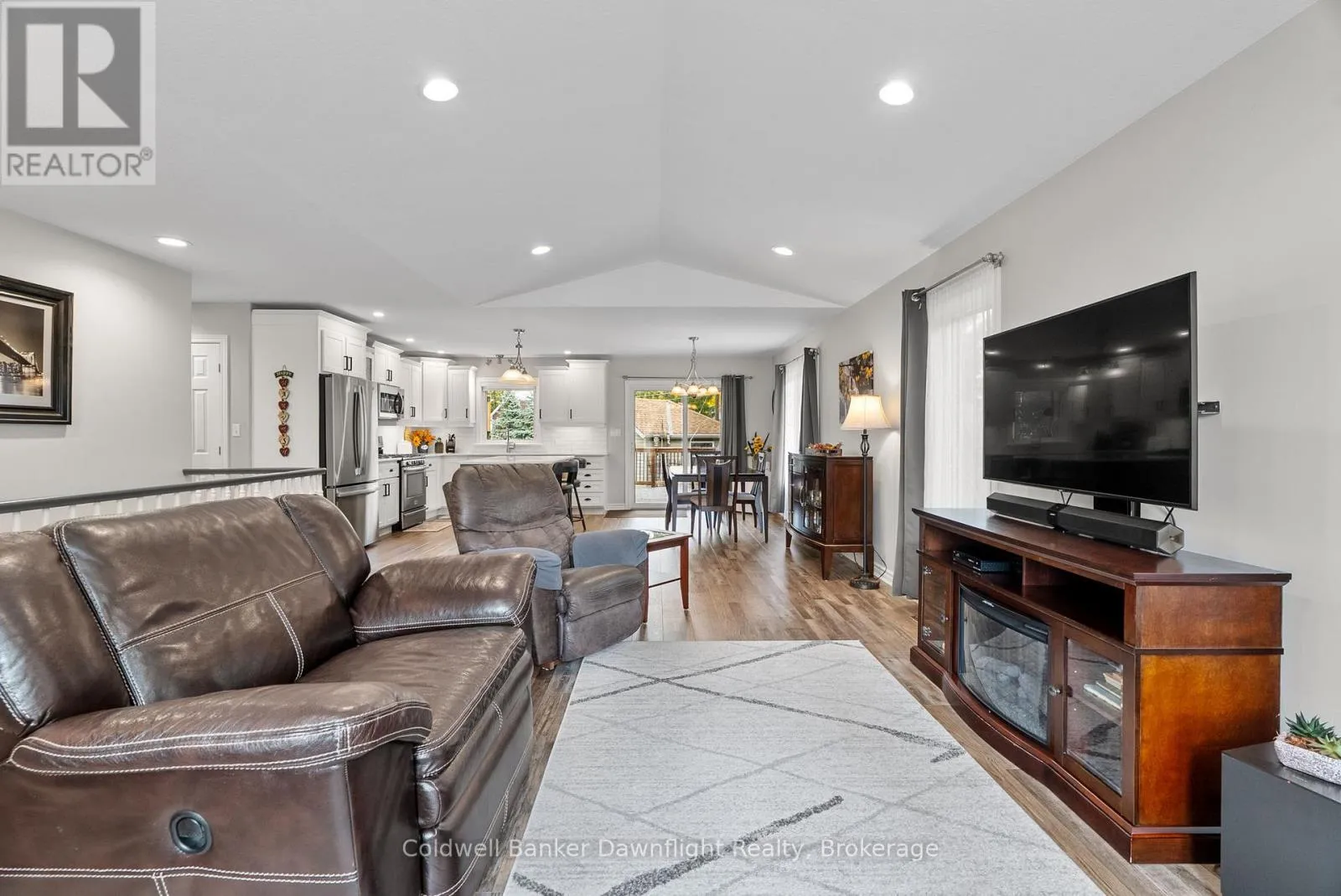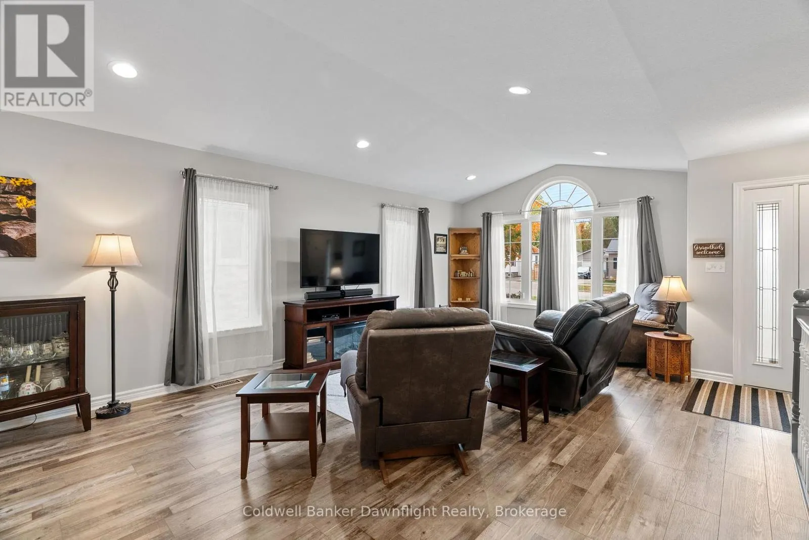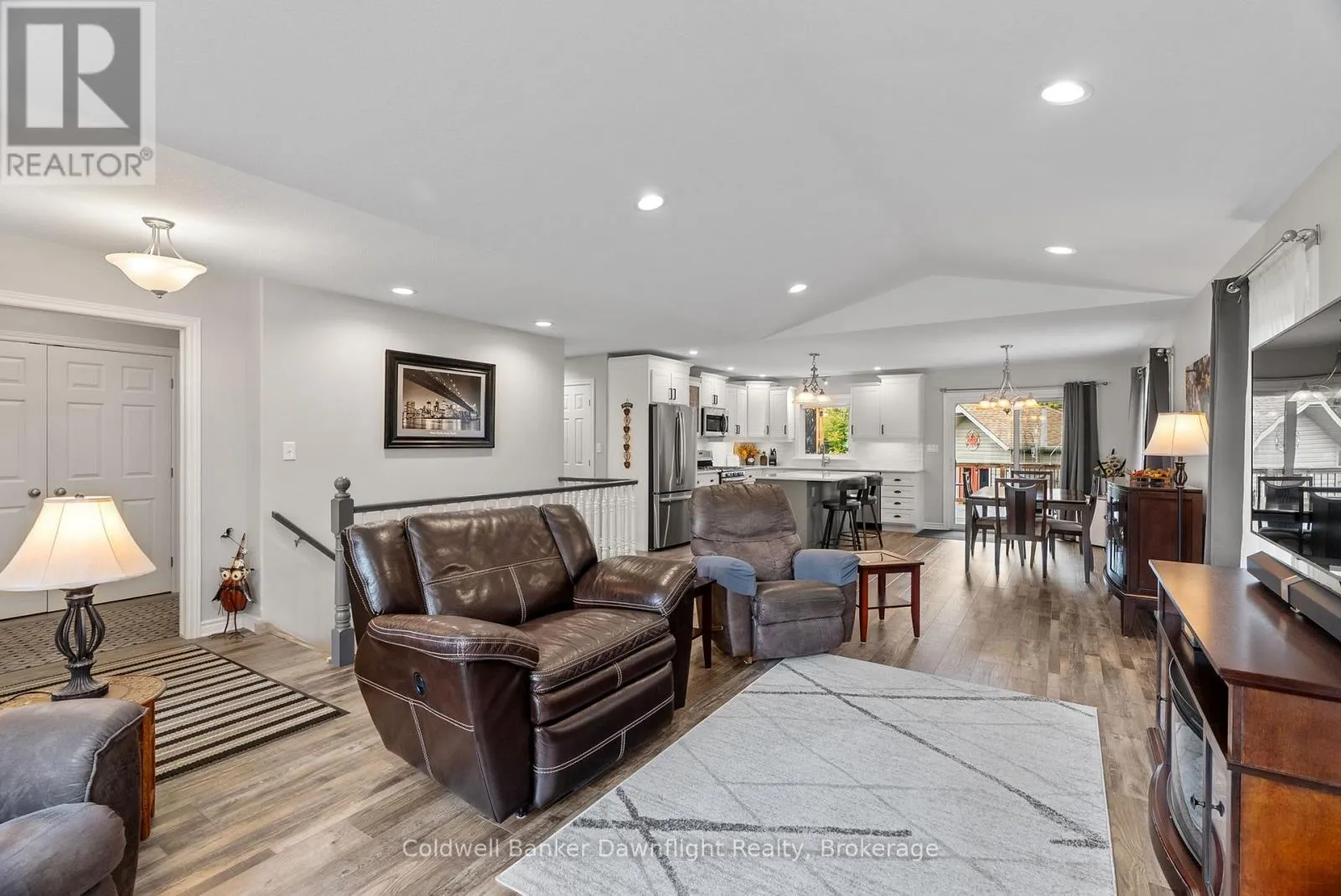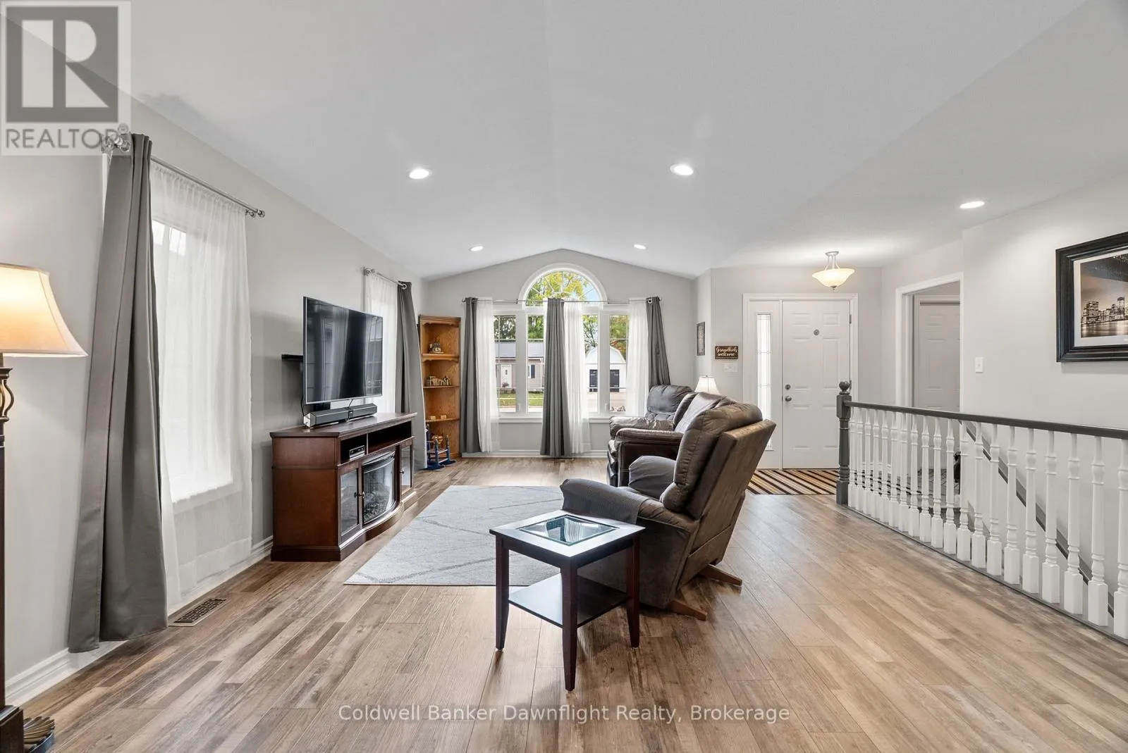 Cross Streets: Huron Street & Carling Street. ** Directions: Take Huron Street West, pass William Street & Property will be on your right hand side. Welcome home to this beautifully updated 5-bedroom, 2-bath bungalow that perfectly blends modern style with family comfort. The open-concept main level offers seamless flow between the living, dining, and kitchen areas-featuring stunning bright cabinets, quartz countertops, and updated stainless steel appliances. Durable vinyl plank flooring runs throughout, combining beauty and practicality.The main-floor primary suite includes a large walk-in closet and convenient 4pc bathroom next door, while the main-floor laundry room provides ample storage and everyday convenience. Step through the patio doors to a partially covered back deck, perfect for entertaining or extending your living space into the summer months. The fenced backyard is private and inviting, ideal for kids, pets, and gatherings.A true standout feature is the 18x18 detached workshop-complete with 100-amp service, heating, and cooling-making it the perfect year-round space for any craftsman, hobbyist, or small business owner. The fully finished basement offers tall ceilings, lots of natural light, and a cozy gas fireplace for winter evenings. It includes two additional bedrooms, a modern 4-piece bath, and plenty of storage. Outside, you'll find a 1.5-car garage and a 6-car concrete driveway. Conveniently located near Victoria Park, Precious Blood School, South Huron Hospital, and local amenities, this home has everything your growing family needs-space, comfort, and an unbeatable location. Don't miss your chance to make this beautiful property your new home. (id:27476)